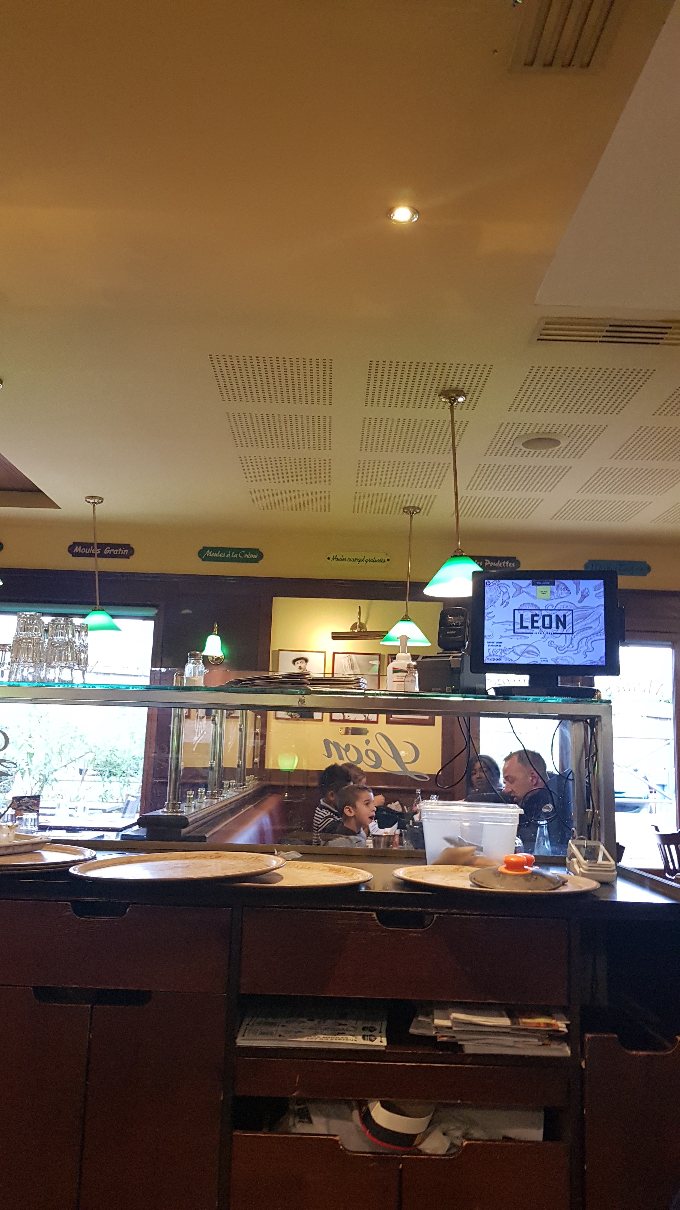 Déception... il y a longtemps que je n'étais pas allée chez Léon et je me souviens désormais pourquoi.. Le restaurant est quasi vide pourtant le choix à la carte est limité. L'attente est longue et le serveur un peu perdu à faire des aller-retour salle cuisine pour demander confirmation. Avec des enfants, on nous propose de les servir rapidement mais finalement tout arrive en même temps. On retrouve une frite pleine de fourmis sous la table. Rien à dire sur la quantité dans les assiettes même si c'est surgelé.