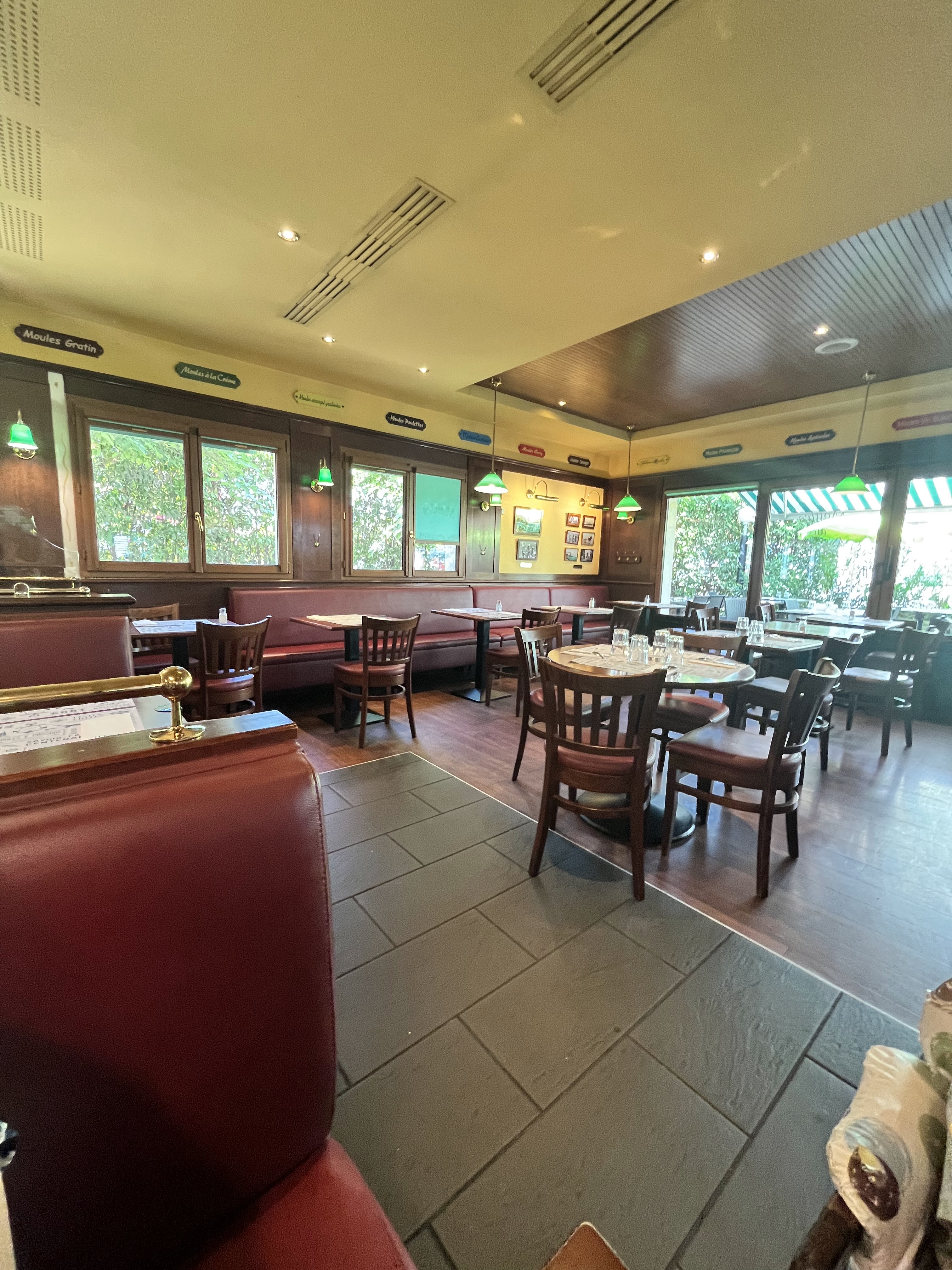 Je m’y suis rendue en semaine sur un coup de tête car envie de moules + frites. Nous avons été placés vite, au début près des toilettes et sous la clim. Nous avons demandé à être déplacés ce qui a pu être fait rapidement, super. En revanche attente interminable entre l’arrivée des boissons, des tapas, et des moules. Moules qui d’ailleurs étaient si petites dans leur énorme coque, bien que le mois de Mars ne soit pas la saison des moules, j’ai trouvé ça limite pour Léon. Nous n’avons pas pris de dessert car plus serveurs disponibles, tous en pause clope au même moment, pourtant nous en avions envie. En finissant sur une petite réflexion/blague de mauvais goût (limite) misogyne de la part d’un serveur (ou manager) au moment de régler. Nous n’irons plus!