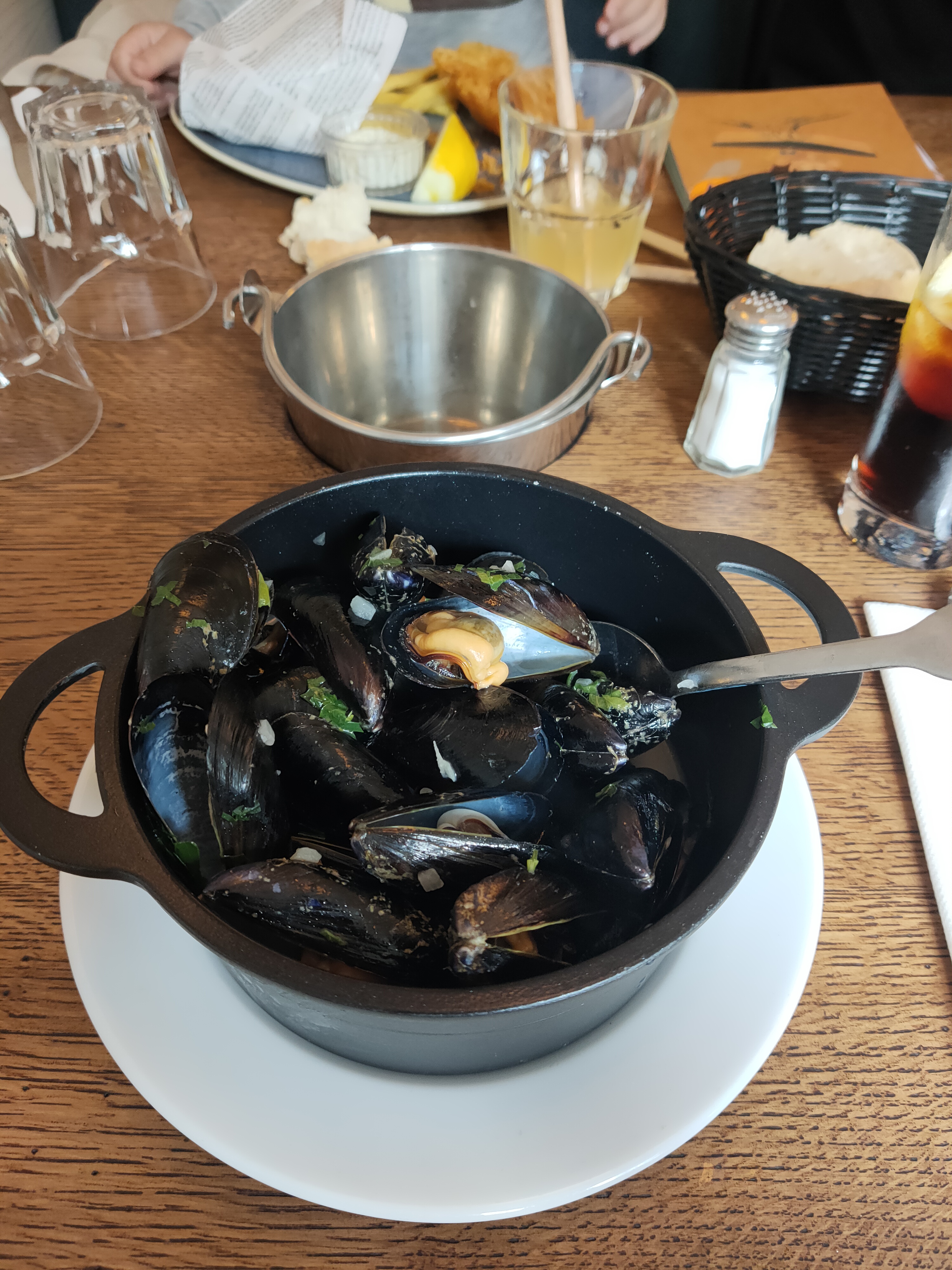 Tres bon accueil, plat pris : les cocottes de moules (souvenirs pour mes parents !) c'était super bon. Service assez rapide mais nous étions hors du coup de feu (14h).