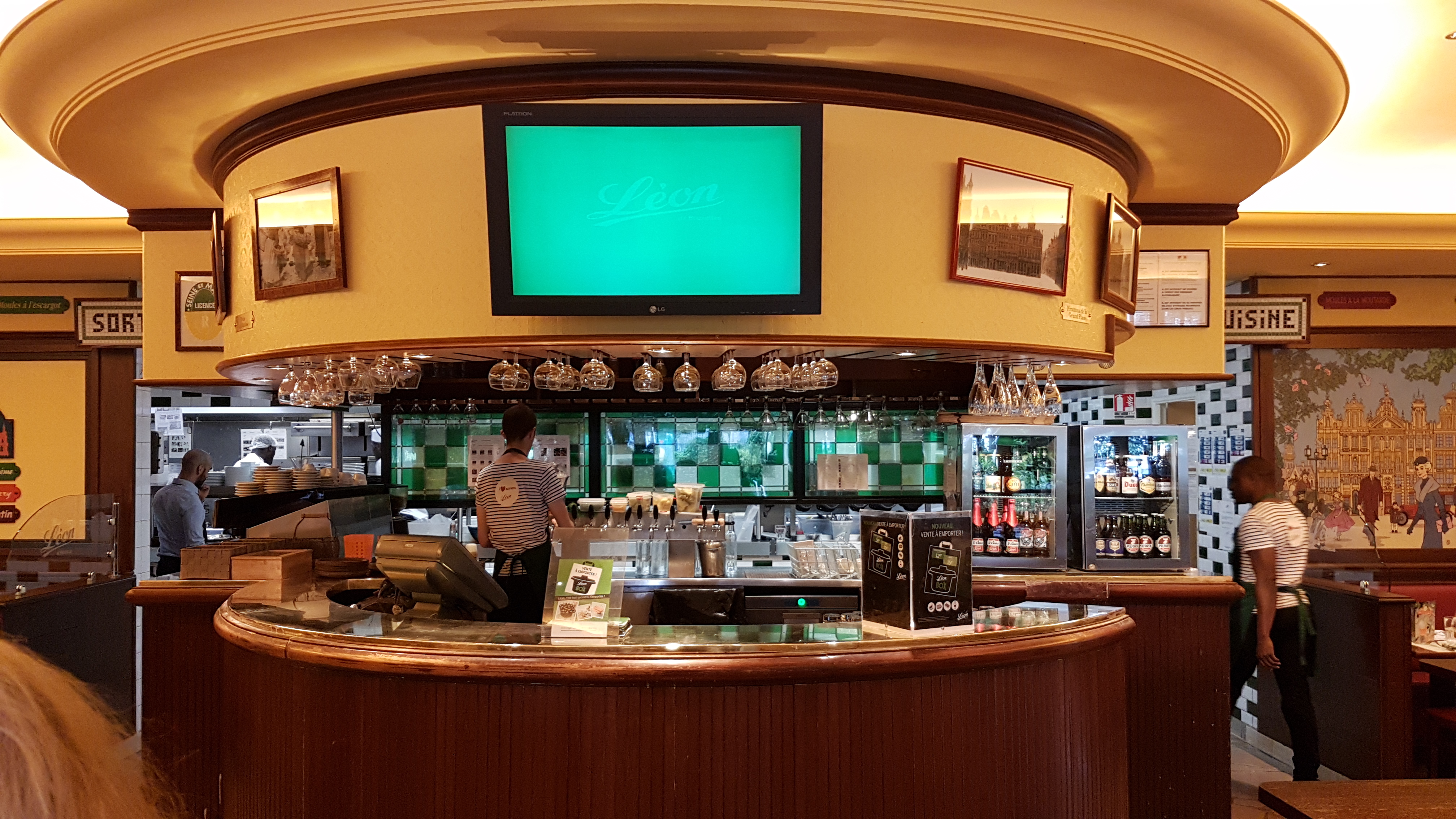 Je trouve que la marque Léon a descendu sa qualité. Les moules marinières sans sauce alors que les autres trop, mon beau-père ne pouvait pas finir puisque la cocotte était un peu cramée dans le fond. Avant les frites étaient à volonté, maintenant le prix est de 1,50€ la frites en sus... En payant, j'ai vu un cuisinier qui a fait tomber des frites dans sa main, ils les a mangé mais avec cette même main il a plongé de nouveaux cornets sans essayer ses mains.
