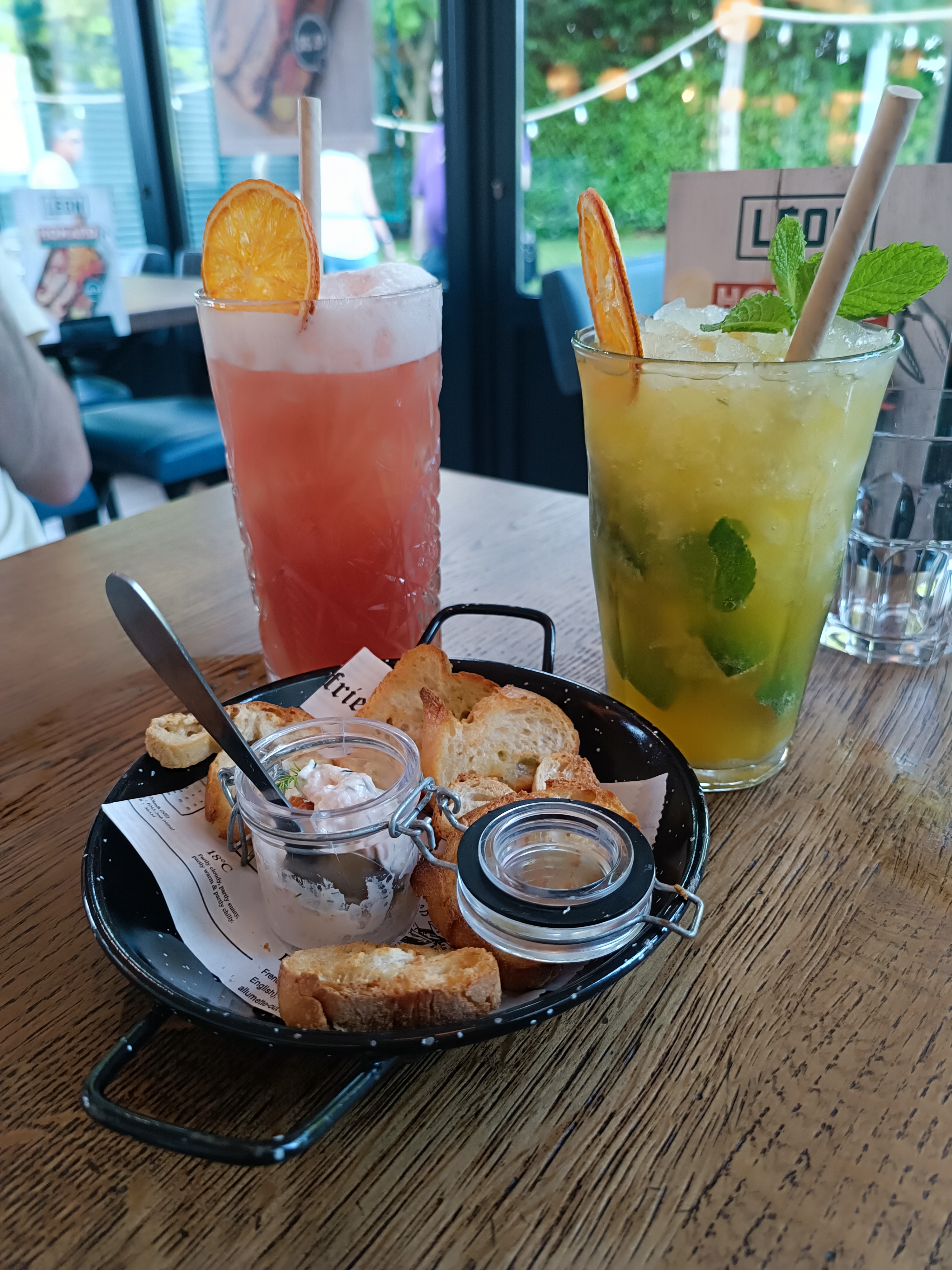 MAJ : décevant, service trop long. Restaurant pas bonder mais attente de 30 min pour être servie. Plat a partager qui arrive en meme temps que le plat principal. J'ai demandé le plat casollette de poulet avec riz on amene des frites. J'ai du demander 3 fois pour avoir le riz. L'interieur est sympa. Le prix est raissonable. Cependant 4 choses nous ont ennuyés. Les cocktails manquaient de certains ingrédient comme de l'orange ou même l'alcool car mon mari n'as pas aimé son verre, présence d'aretes (5) dans le burger, les moules marinière étaient trop salées et la gauffre gallette qui est loin d'être une bonne idée, en effet, la frangipane est liquide et granuleuse alors que celle ci est sensé être consistante et avoir du goût.