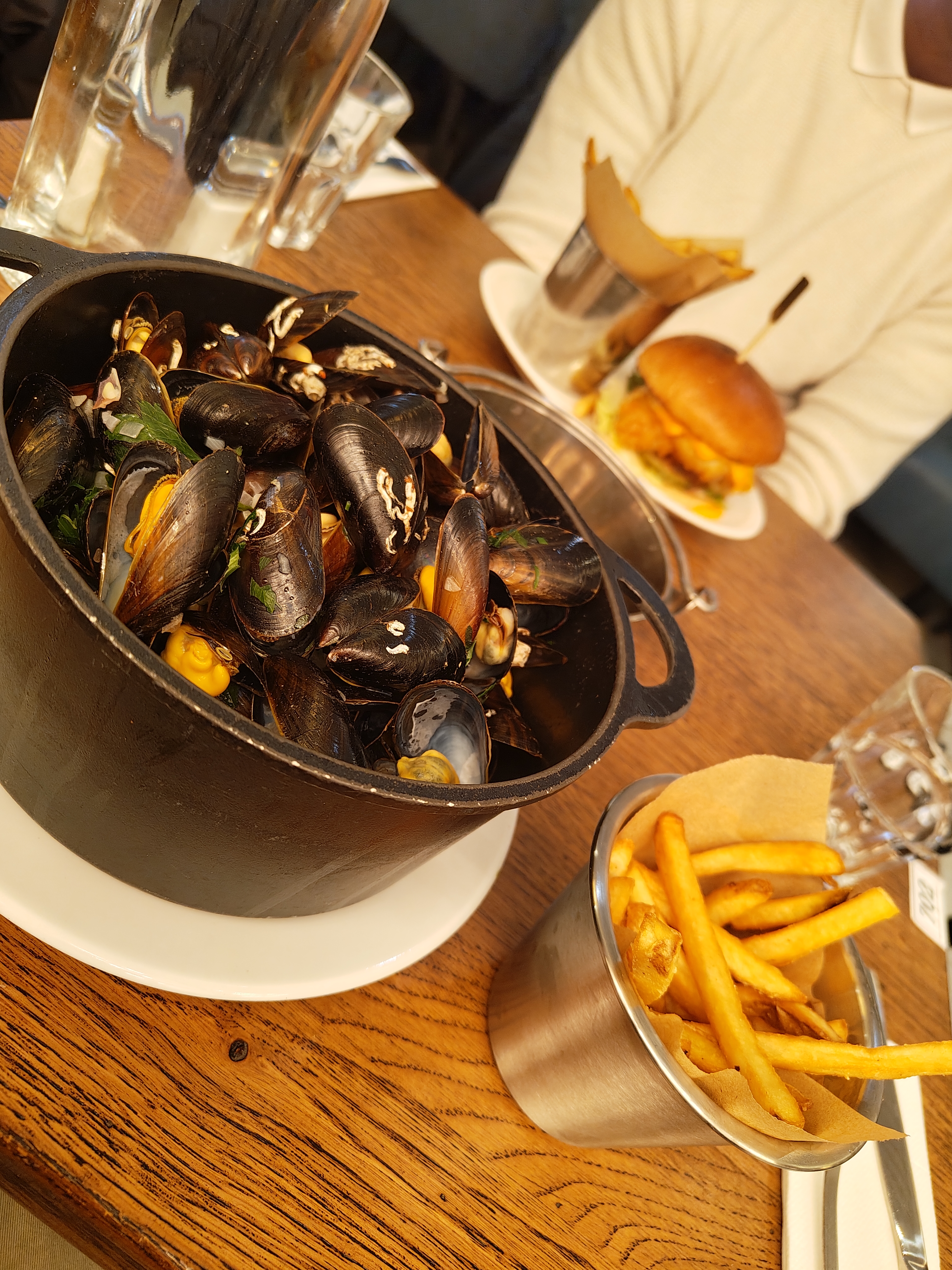 On adore le nouveau concept 😍 le restaurant est flambant neuf, la déco est dans le thème ! On à vraiment l'impression de s'évader dans le thème de la mer (forcément) les tables sont adaptés pour les récipients pour les moules ça c'est vraiment un plus car avant on avait plus de place sur la table et là on a vraiment de la place pour manger bravo pour ce concept ! L'accueil est top , les serveurs disponible , les jeux pour les enfants sont géniaux ! Bien-sûr toujours un régal ces moules et nos 2 enfants (3 ans et 1 ans & demi) on manger un fish and chips un 10/10 puisque leurs assiettes était vide 😅 vivement les beau jours pour un prochain repas en terrasse car elle en jette de l'extérieur !