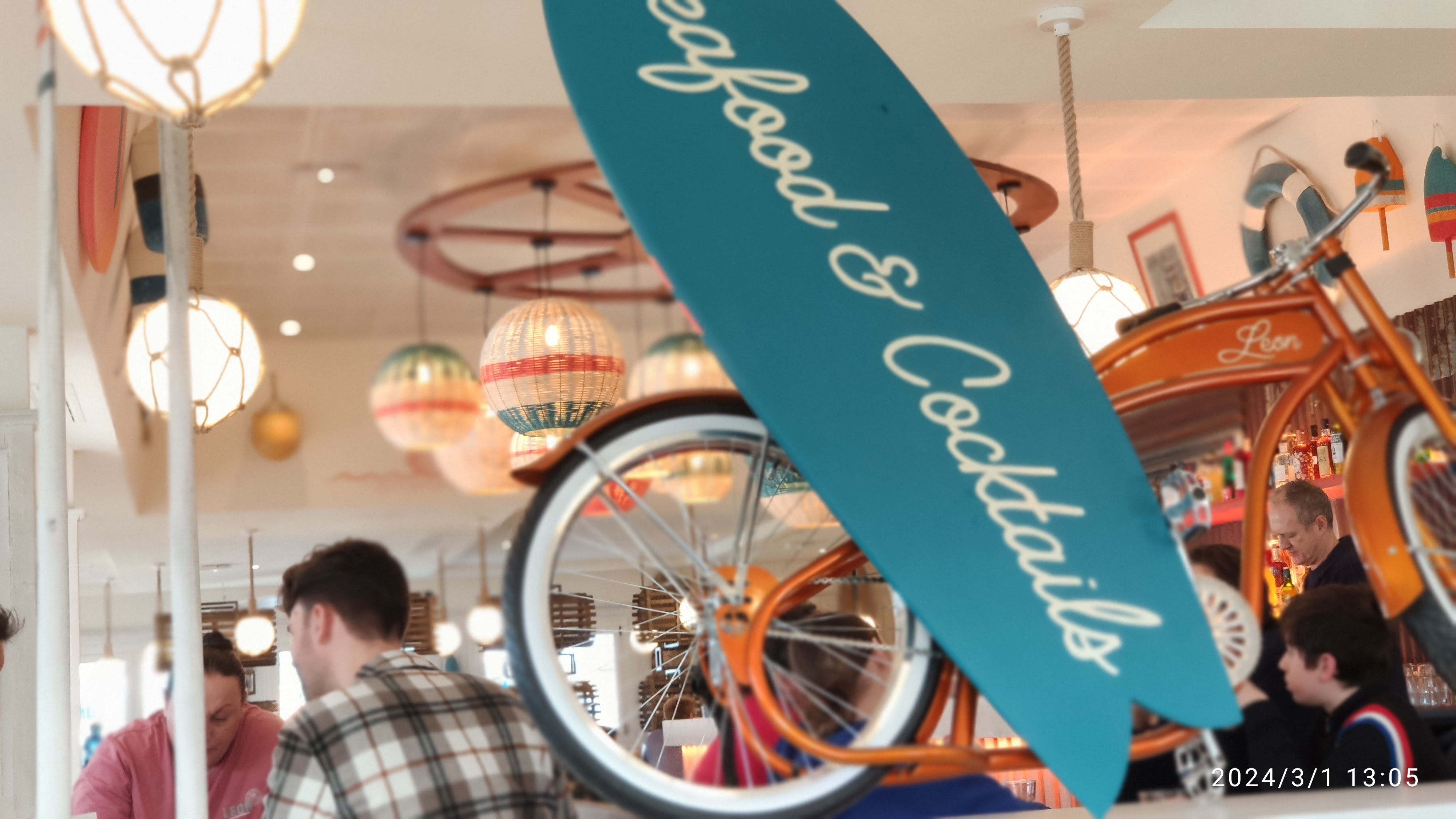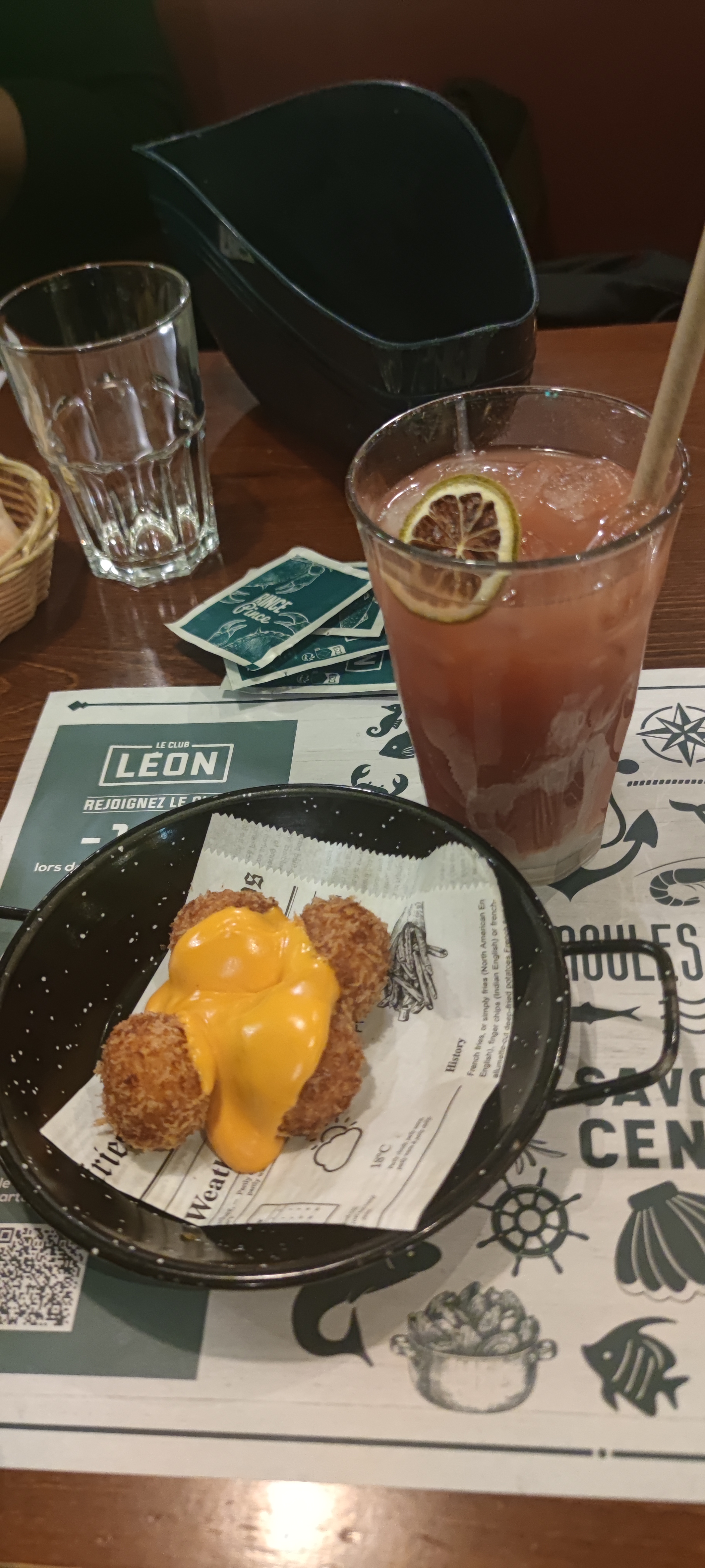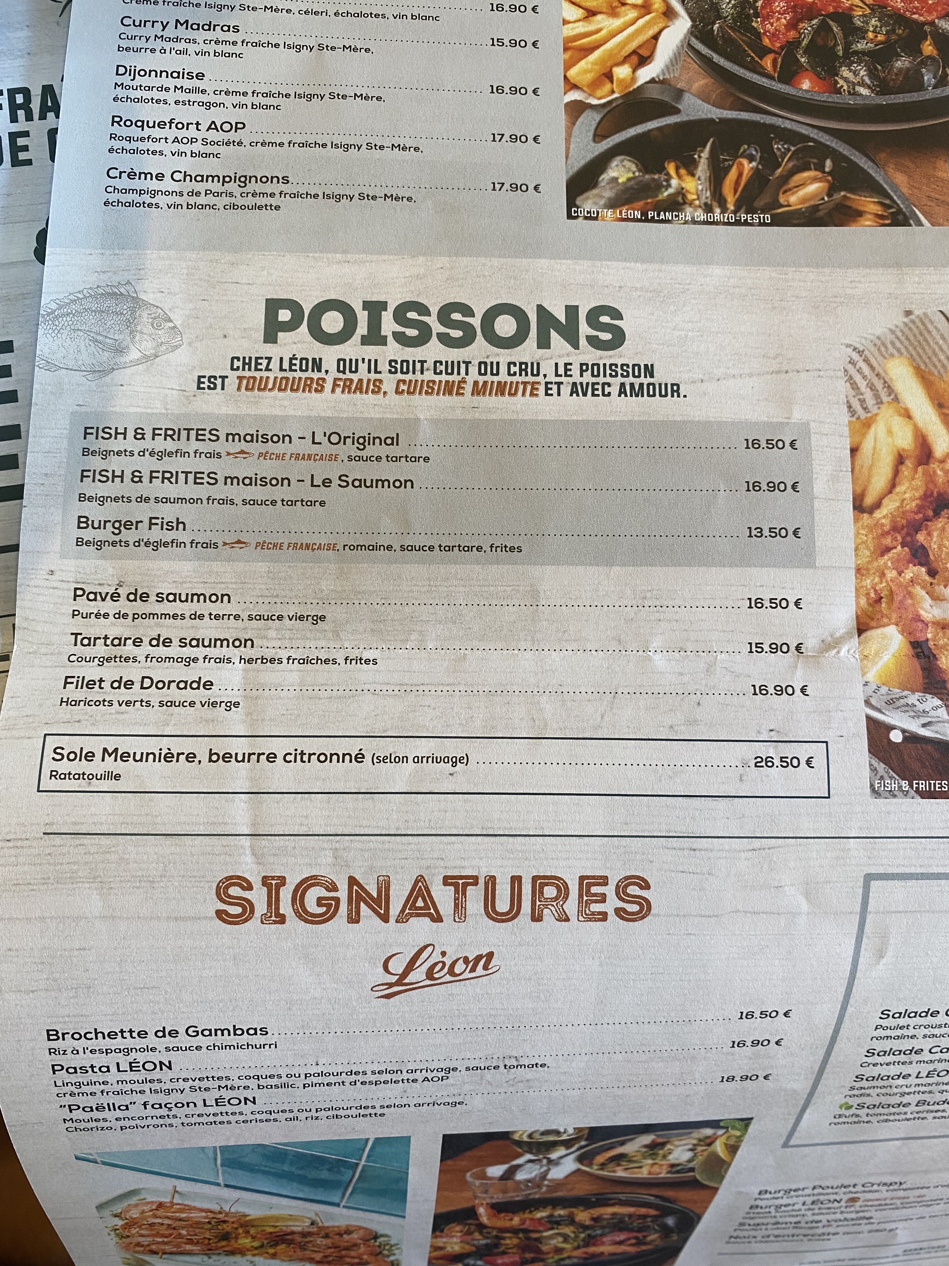 Bon ! Ça va être un peu long, Nous avons réservé pour 20h. Bien accueilli dans un cadre sympa. 😁 Commandons apéro avec assiette de petits poissons pour aller avec puis : - des moules pour la fille, - un bowl Léon (thon pour ma femme et saumon pour moi) c'est à dire un tartare avec carotte, avocat, grenade, etc . 😋 Tous les plats arrive en même temps avec un serveur expéditif. 😬 C'est là que ça se complique.... Le tartare n'en est pas un ! Mon saumon est un pavé ultra cuit et le thon de ma femme idem....😕 Et pas traces de carottes ni d'avocat ! Équipe très réactive qui reprend les plats et vient nous expliquer qu'il n'y a pas tous les ingrédients en cuisine et qu'il faut reprendre un autre plat ! On s'exécute et on prend un crumble Léon (ma femme et moi)... c'est à dire un dos de merlu avec un crumble à base de parmesan. Pendant ce temps..... ma fille a presque terminé son plat. Bim le plat arrive (ma fille a terminé de manger)..... Filet de je ne sais quoi (mais pas de merlu) à la place du dos de merlu... et pas cuit pour ma femme.... et moi, un crumble plus que cuit. Et la ratatouille qui va avec est hyper salée ! Côté quantité... on ne va pas s'étouffer. Un des serveur est désolé (en vrai) et le gérant arrive pour s'excuser et nous offre les desserts et les café / thé..... Sympa ! Je prends une coupe crousty je ne sais plus au chocolat....... Aucune saveur de chocolat ! Je n'ai même pas fini ! Bref, Léon oui mais uniquement pour les moules !!! Très déçu de cette soirée... et ma femme a mal au ventre ce soir...