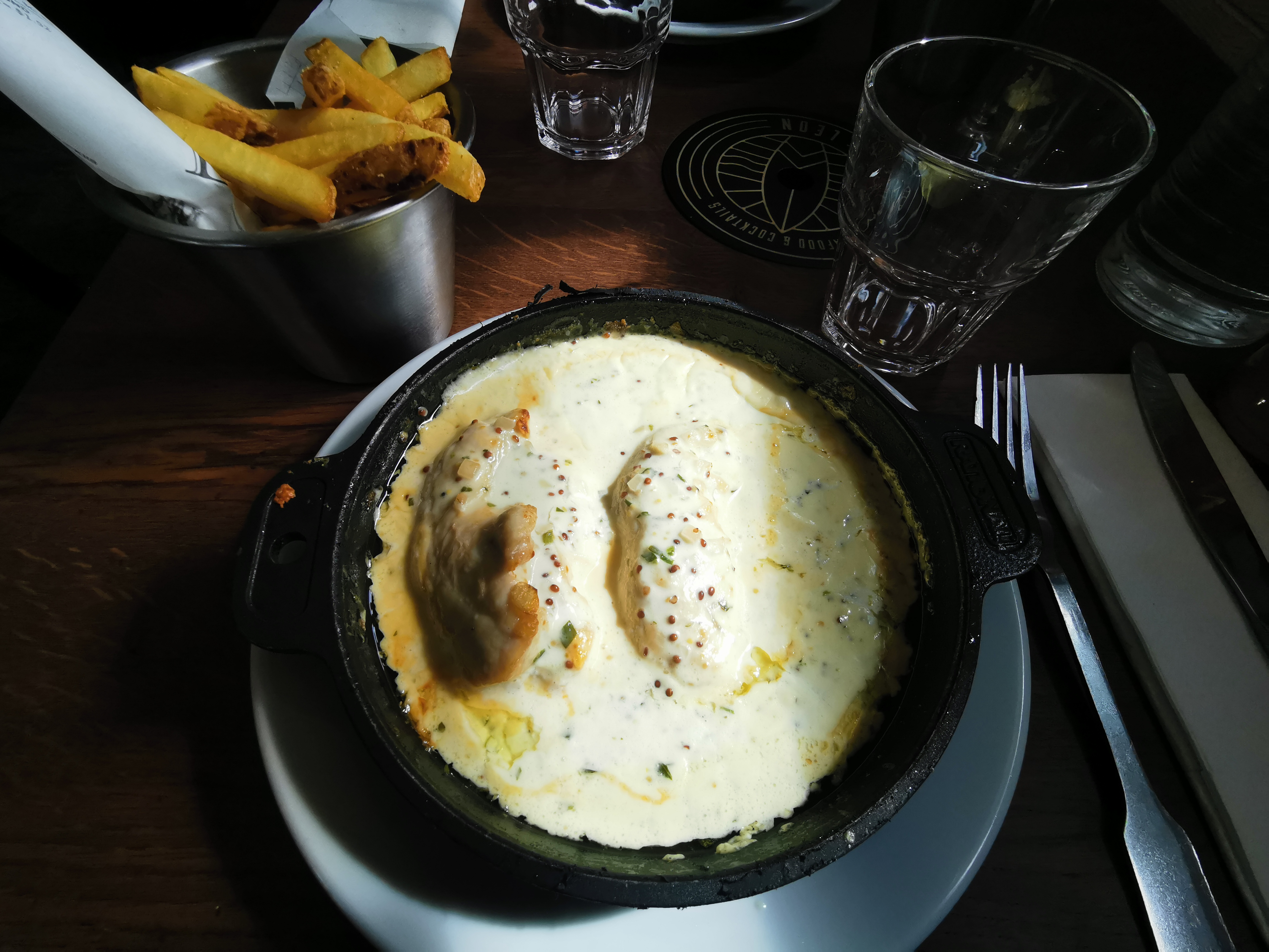 Table pour 3 couverts, la décoration est très sympathique! Le fish & frite (version saumon) est beaucoup onéreux pour le contenu de l'assiette, aucune tentative de présentation. Concernant les moules ont reste sur du classique. Énormément d'attente entre l'entrée et le plat.. Belle déception..