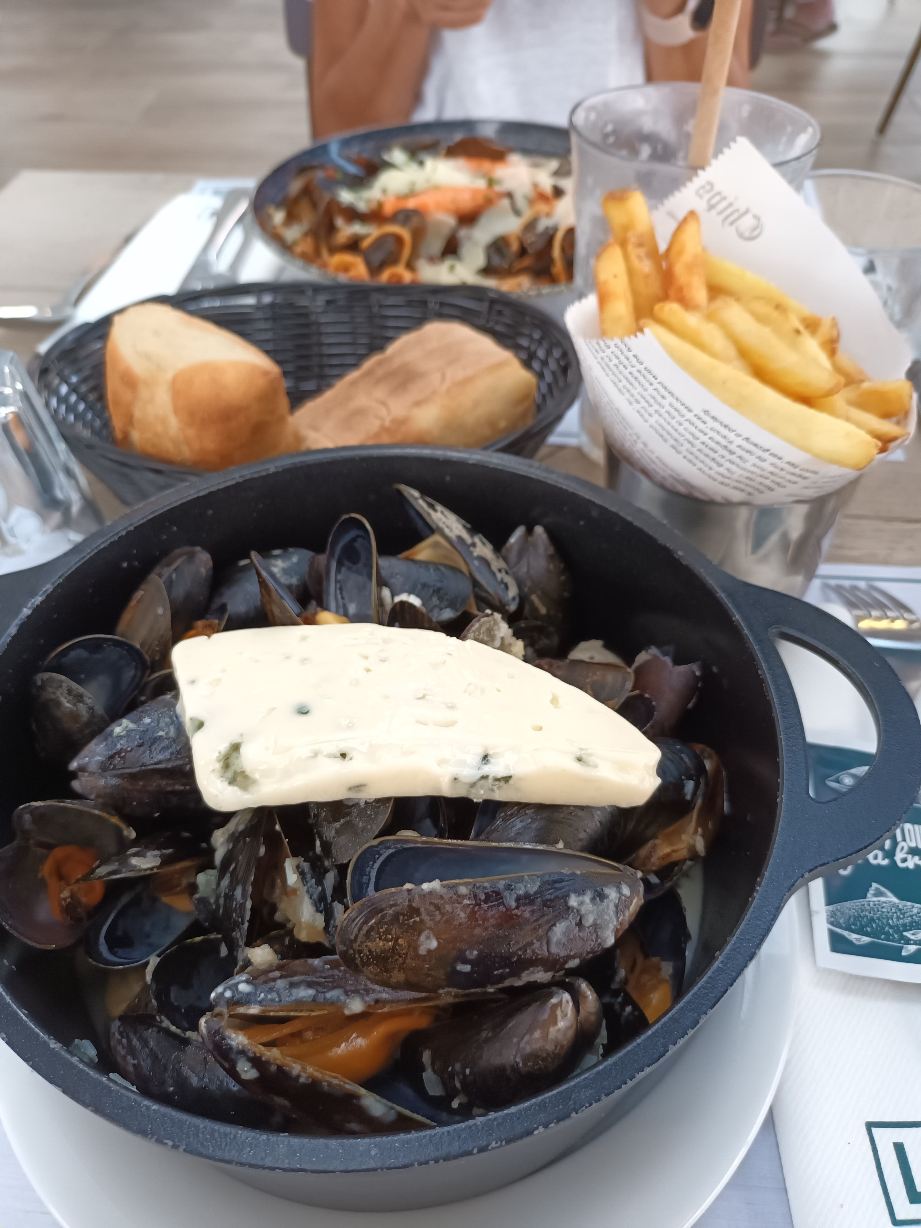 Le serveur, très gentil et serviable rien à redire. En fait juste un peu trop, pour sauver l’honneur du restaurant peut-être… Moules sans saveur, mauvais goût. Frites bonnes même si imaginons c’est du surgelé. Je voulais me régaler de moules frites, ça n’a pas du tout été au rdv concernant les moules. Et 15 euros pour des moules, sur la côte il y en a des excellentes bien moins chères.