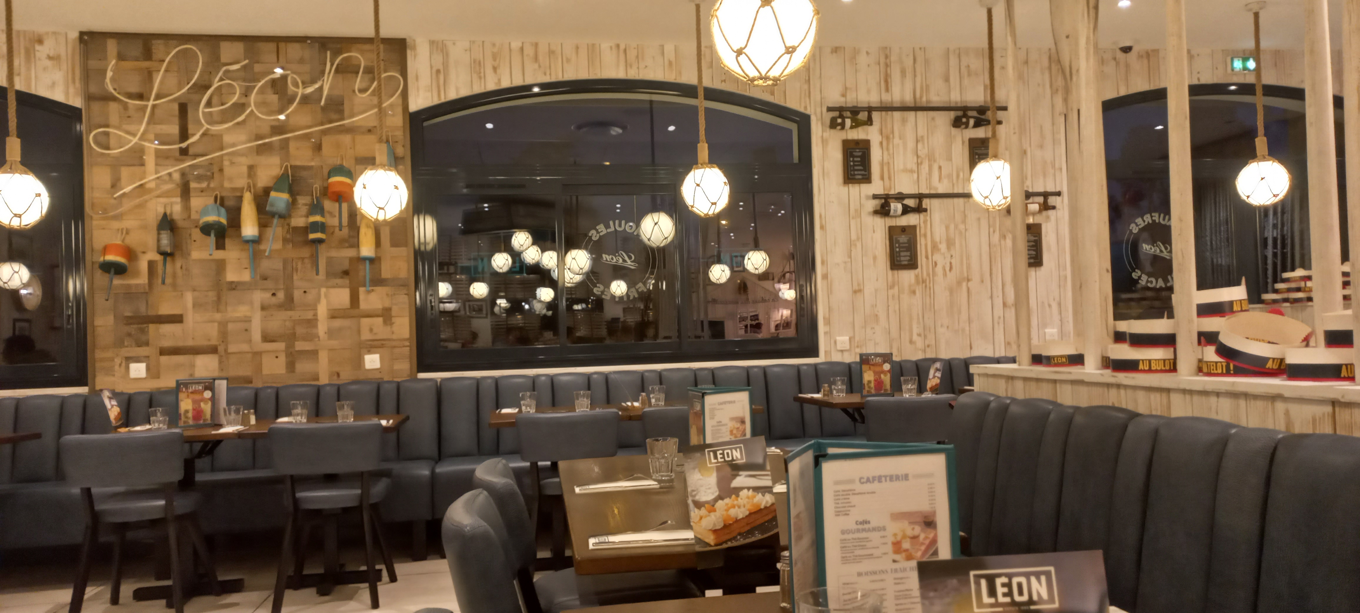 Accueil sympathique. Le personnel en cuisine ne doit pas savoir ouvrir les huîtres… pleines de coquilles et toutes cassées. Servie certaines dans la coquille principale et d’autres sur le couvercle… du jamais vu ! Malheureusement les 2 plats pour lesquels nous sommes venus n’étaient pas disponibles. Nous avons commandé un homard, on revient nous voir car non disponible. Nous commandons alors une sole meunière à la place. Et au bout de 10 min on revient nous voir en nous indiquant que ce n’était pas possible non plus. Nous nous sommes donc rabattu sur un simple fish and chips de faible qualité. Idem pour les beignets de calamars. Trop de chapelure pour de tout petits morceaux de calamars. Frites surgelées servies froides. Le franchisé doit se faire du souci pour la survie de son activité. Client de la chaîne, nous n’avons jamais aussi mal dîner que dans ce restaurant. Une reprise en main rapide est nécessaire sinon ce restaurant fermera aussi vite qu’il a ouvert. Nous reviendrons tester car nous ne sommes pas habitués à une qualité aussi faible chez Léon.