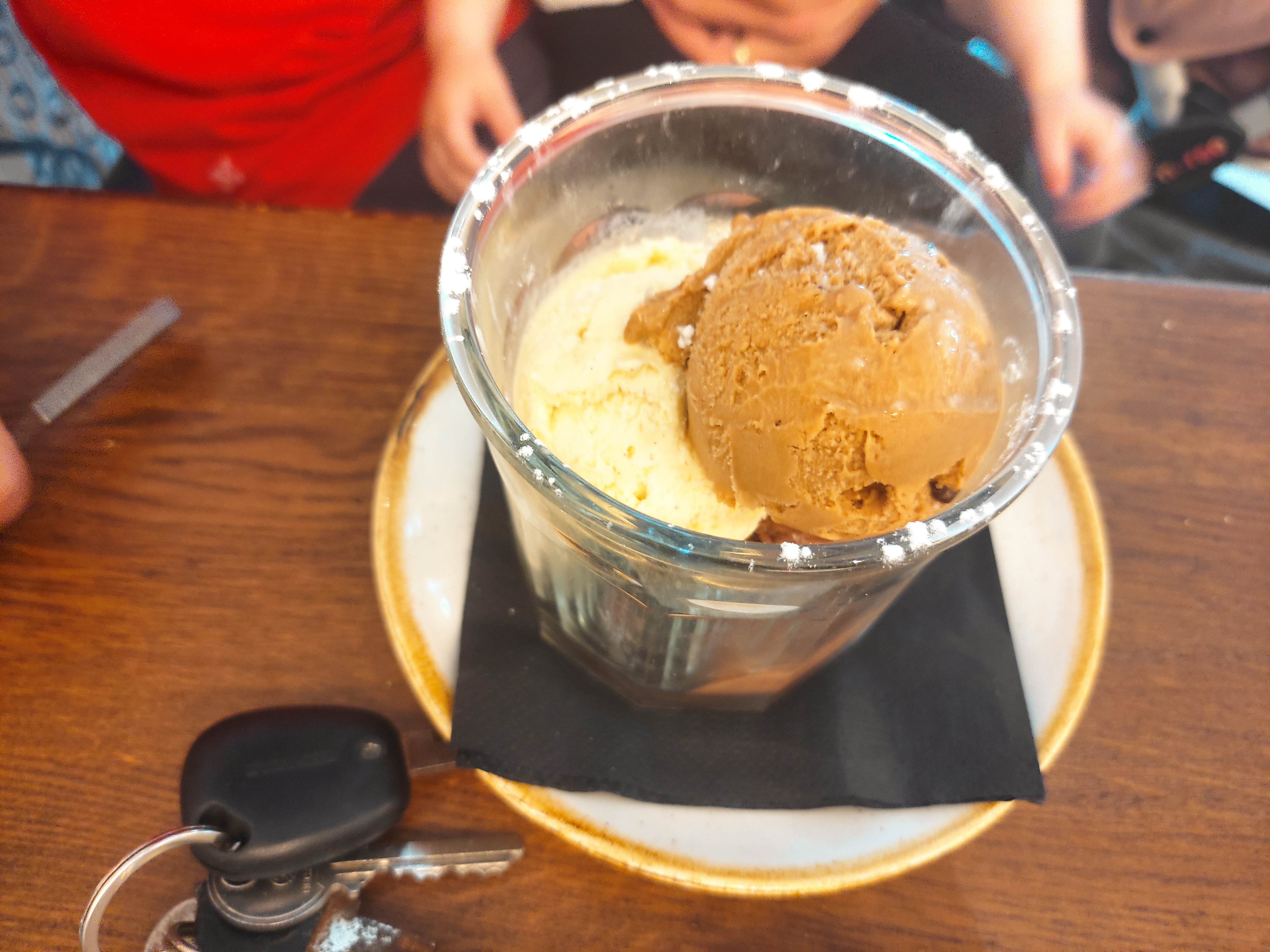Un bon repas partagé en famille avec un serveur prénommé Philippe qui nous à accueilli avec sa bonne humeur bonne humeur et qui a réussi à me faire boire la bouteille de chardonnay 🤭😊.... Très convivial et les moules gratinées au chorizo au top..... Petite dédicace à la boule de glace fraise à la place du profiterole... Au top du professionnalisme....