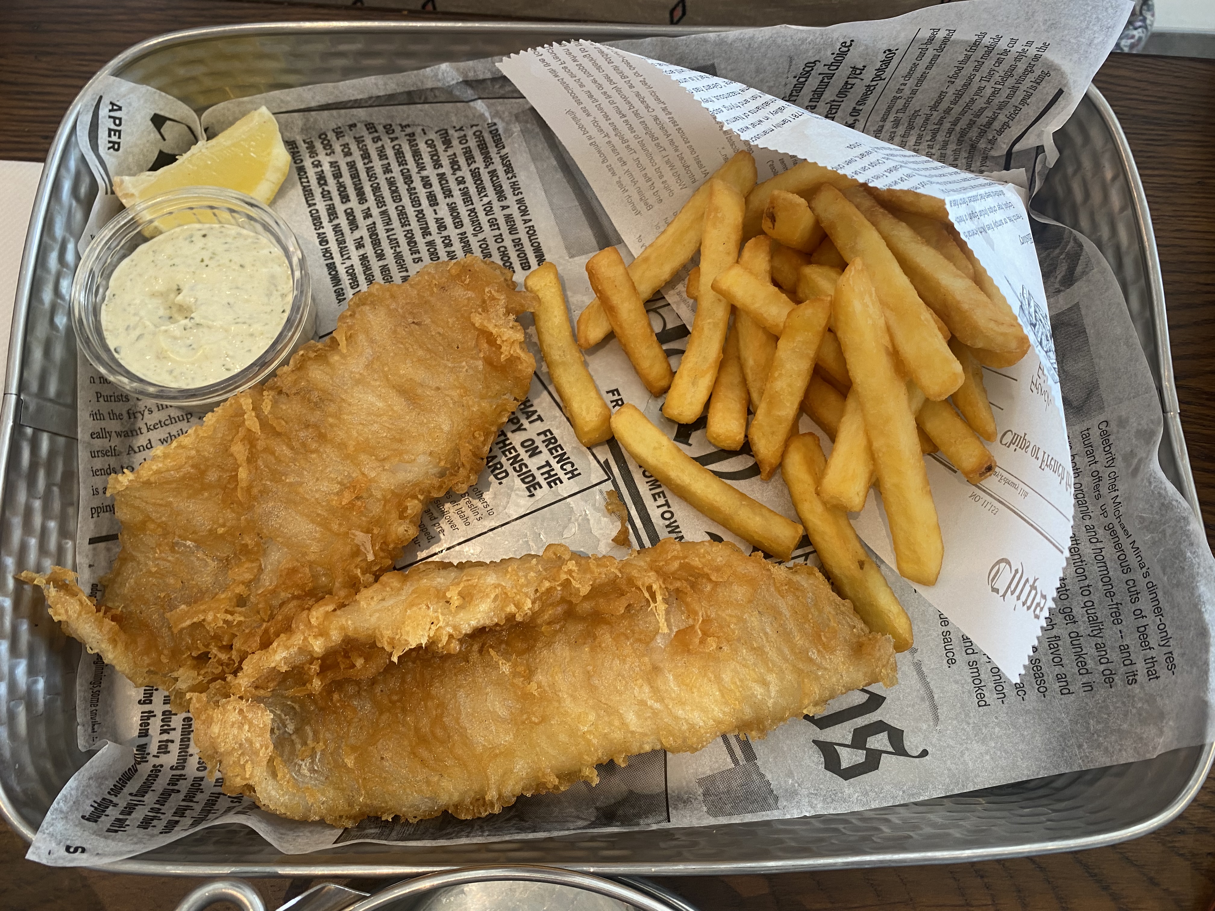 Service très rapide fish and frites saumon simple et efficace très bon desserts