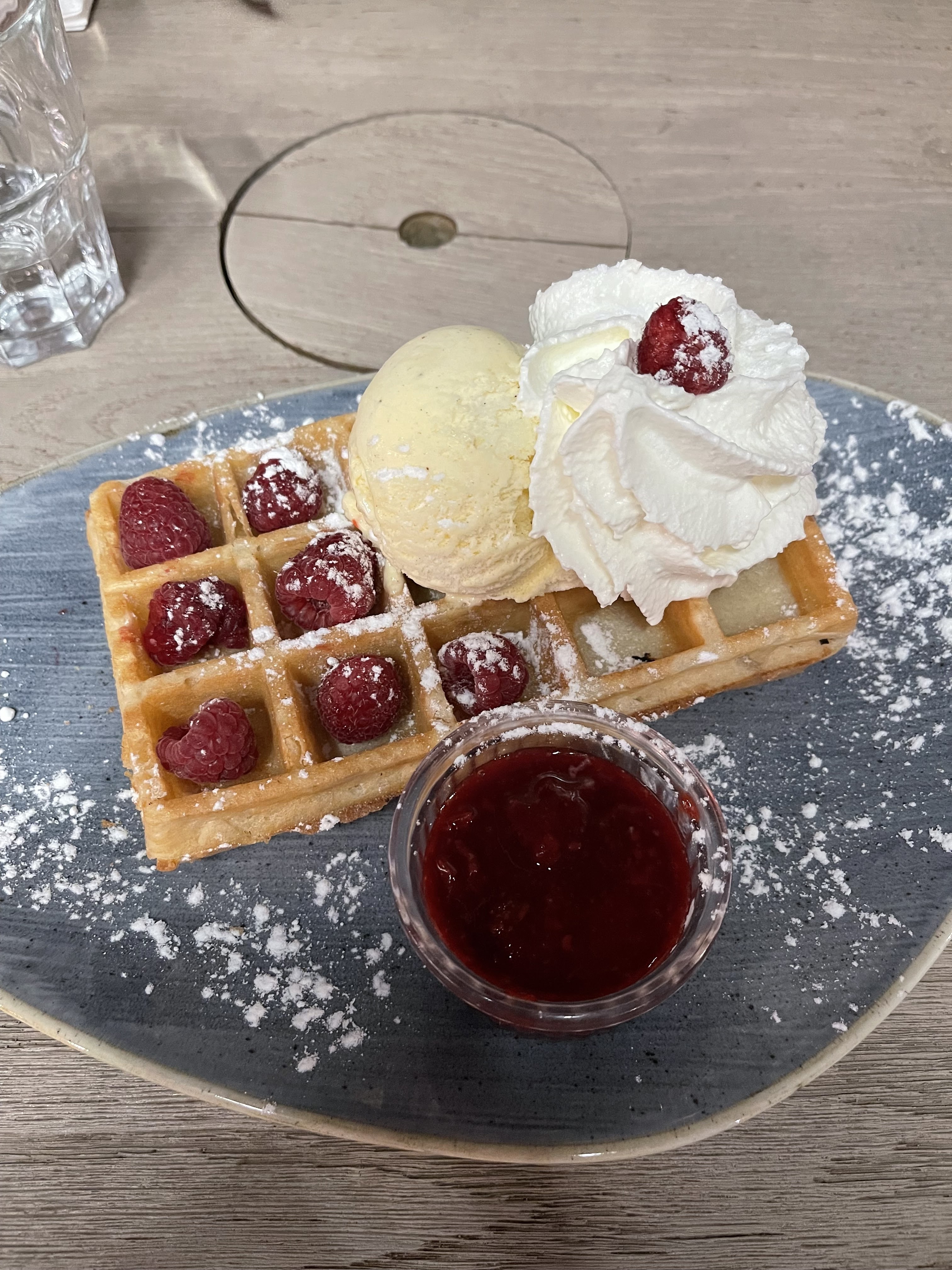 Lieu très sympa, la terrasse est très agréable, le personnel aussi! La cuisine est bonne. Si jamais vous hésitez à prendre un dessert, les gaufres sont très légères !