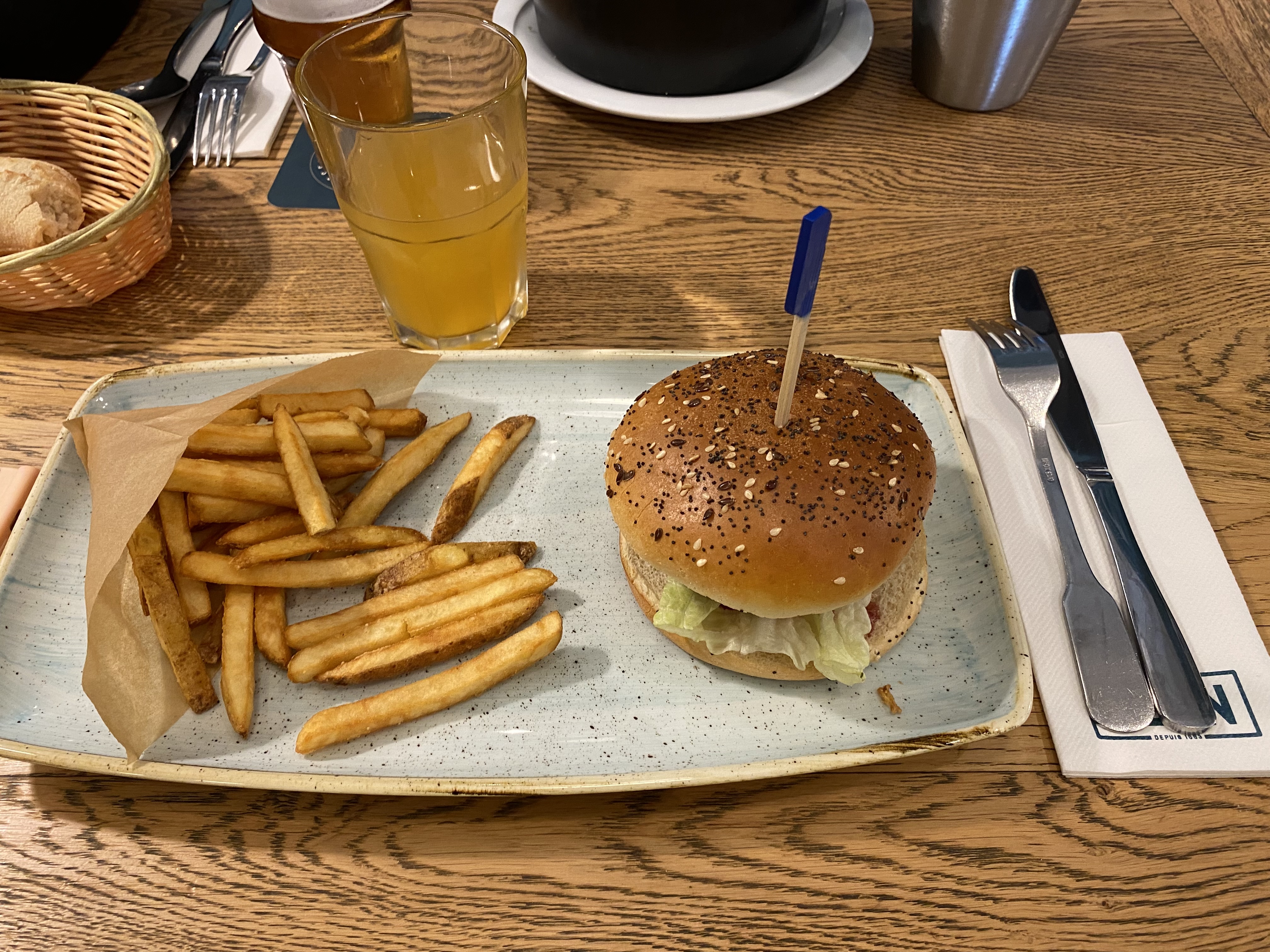 Restaurant et personnel agréable. Vu l’horaire de fermeture nous allions faire demi tour mais nous avons été accueillis chaleureusement. J’ai moins aimé le burger de saumon que j’ai trouvé fade.