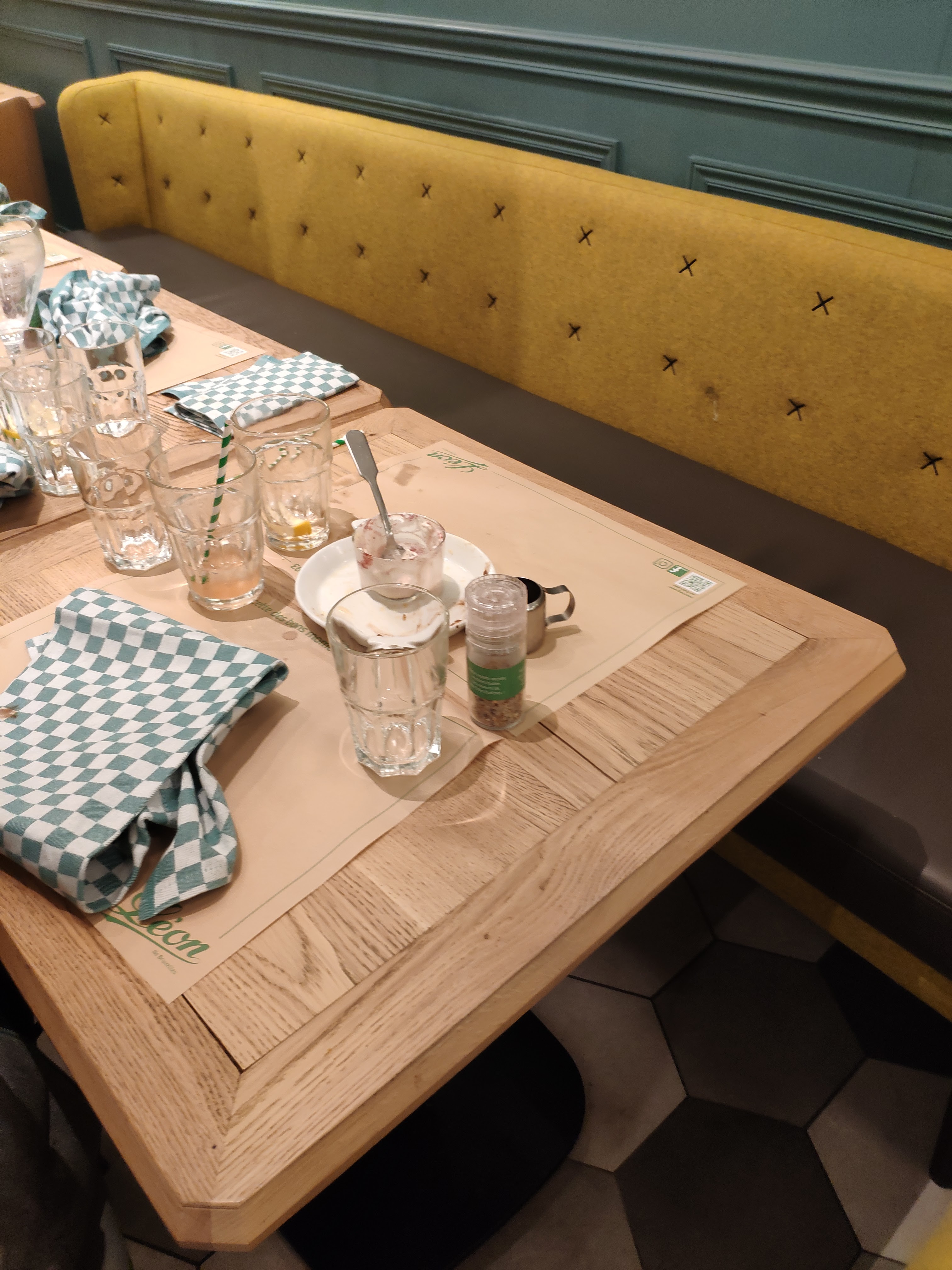 Le nouveau positionnement de Léon est bien loin de l'idée de départ, qui était de proposer des plats typiquement belges tels que des moules, des frites, des gaufres et des bières. La carte propose désormais davantage de poke bowls, de burgers et de sandwichs toastés. Cela aurait pu être intéressant si la qualité des plats avait suivi, mais malheureusement, ce n'est pas le cas. Les plats manquent de saveur, d'assaisonnement et de qualité. Seule la gaufre reste convenable. Malgré cela, à 63 euros pour 3 personnes, les prix restent raisonnables et le service est rapide.