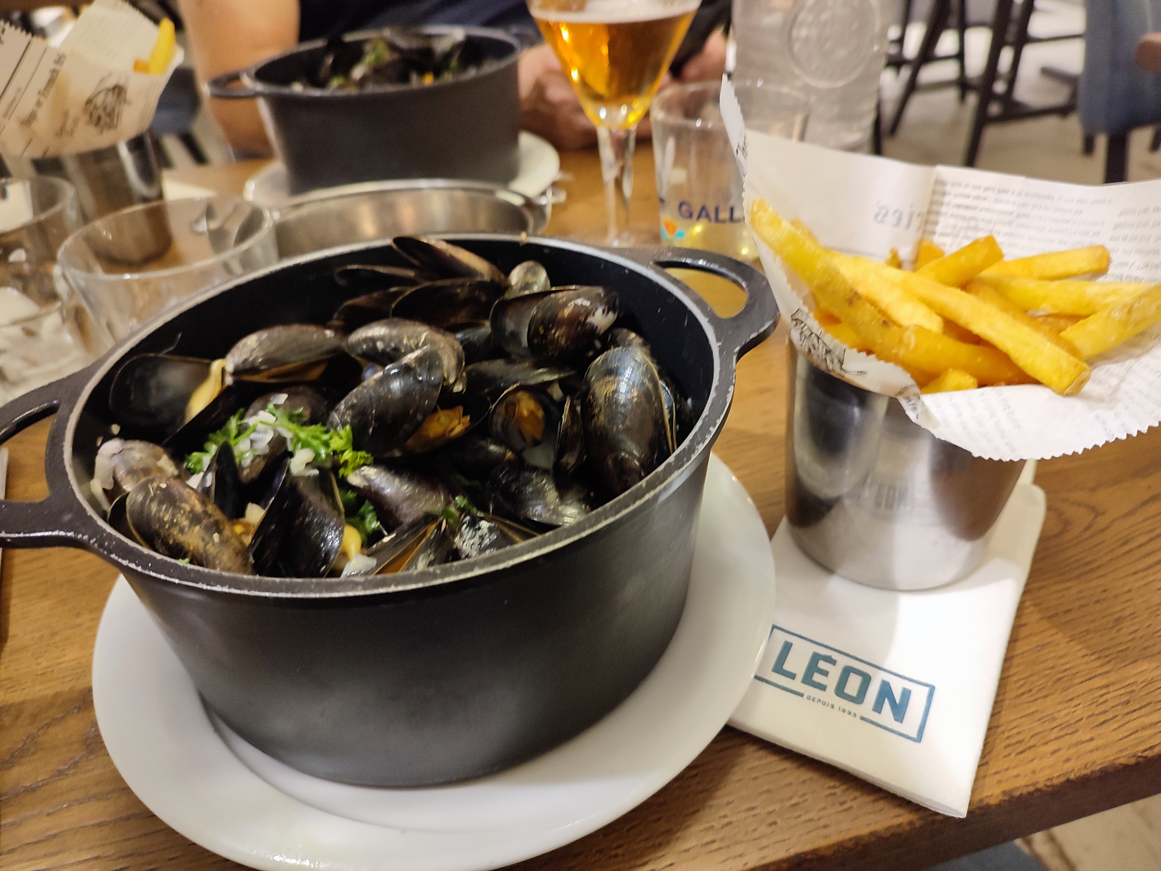 Première expérience dans un Léon et je ne suis pas déçue ! Les moules marinières sont aussi bonne voire plus que dans certains restos de bords de mer et la cocotte de 400g a été suffisante pour moi 🙂 L'île flottante est vraiment bonne et la présentation est réussie !! Le service est agréable mais si vous êtes pressés, ne choisissez pas Léon car mon repas m'a pris 1h alors qu'il y avait à peine 20 clients 😅