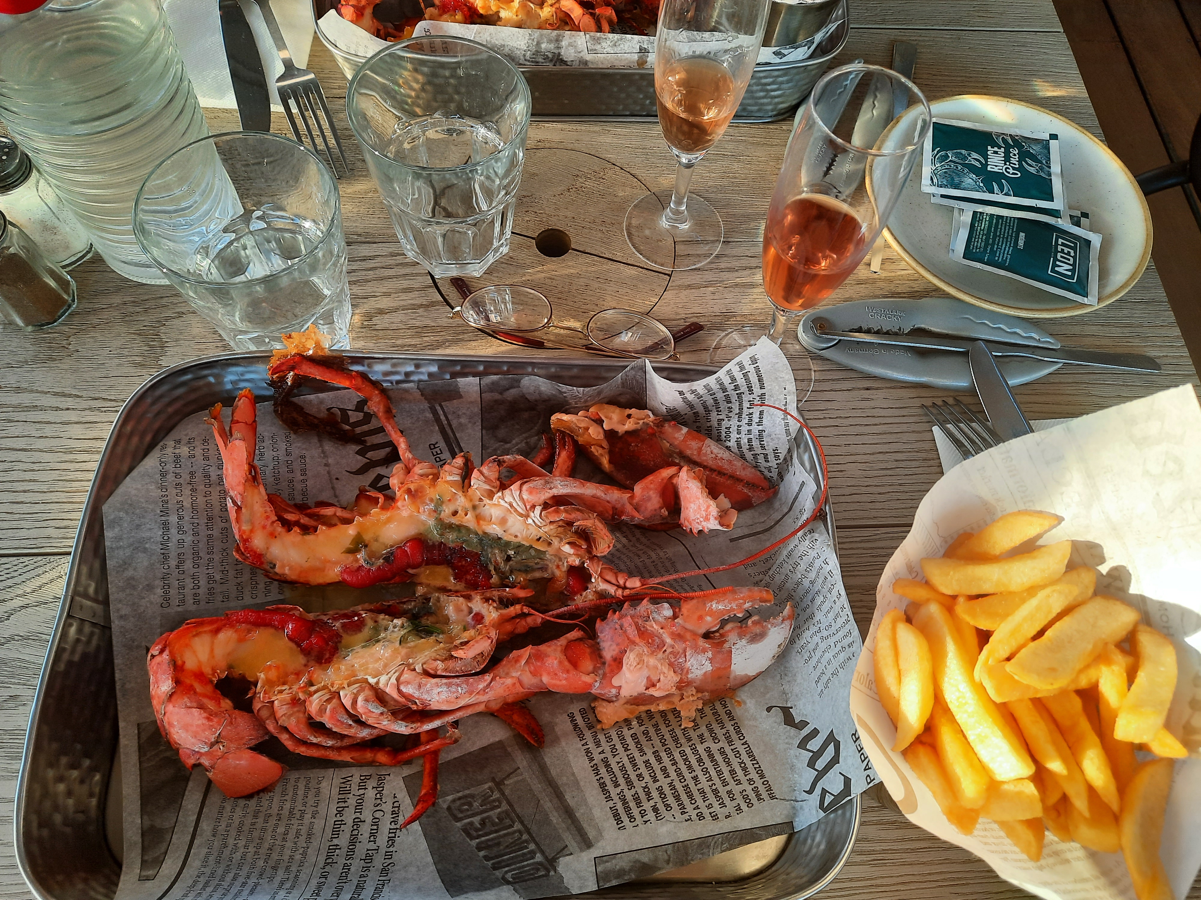 Un avis mitigé Repas de bonne facture avec homard réservé à l'avance L'accompagnement (frites surgelés) dénote quand même. La présentation dans un plat en aluminium avec un papier au fond sur un produit noble cela choque ! Venues pour fêter un anniversaire et spécifiée lors de la réservation... ils l'ont découvert au moment de passer à la caisse ( on allait quand même pas faire un patagoes devant l'invitée !) Cadre agréable mais sans cachet . Ou alors peut-être celles qui sont en bord de terrasse Service plutôt lent pour un samedi peu chargé Nous avons quand même passé un bon moment