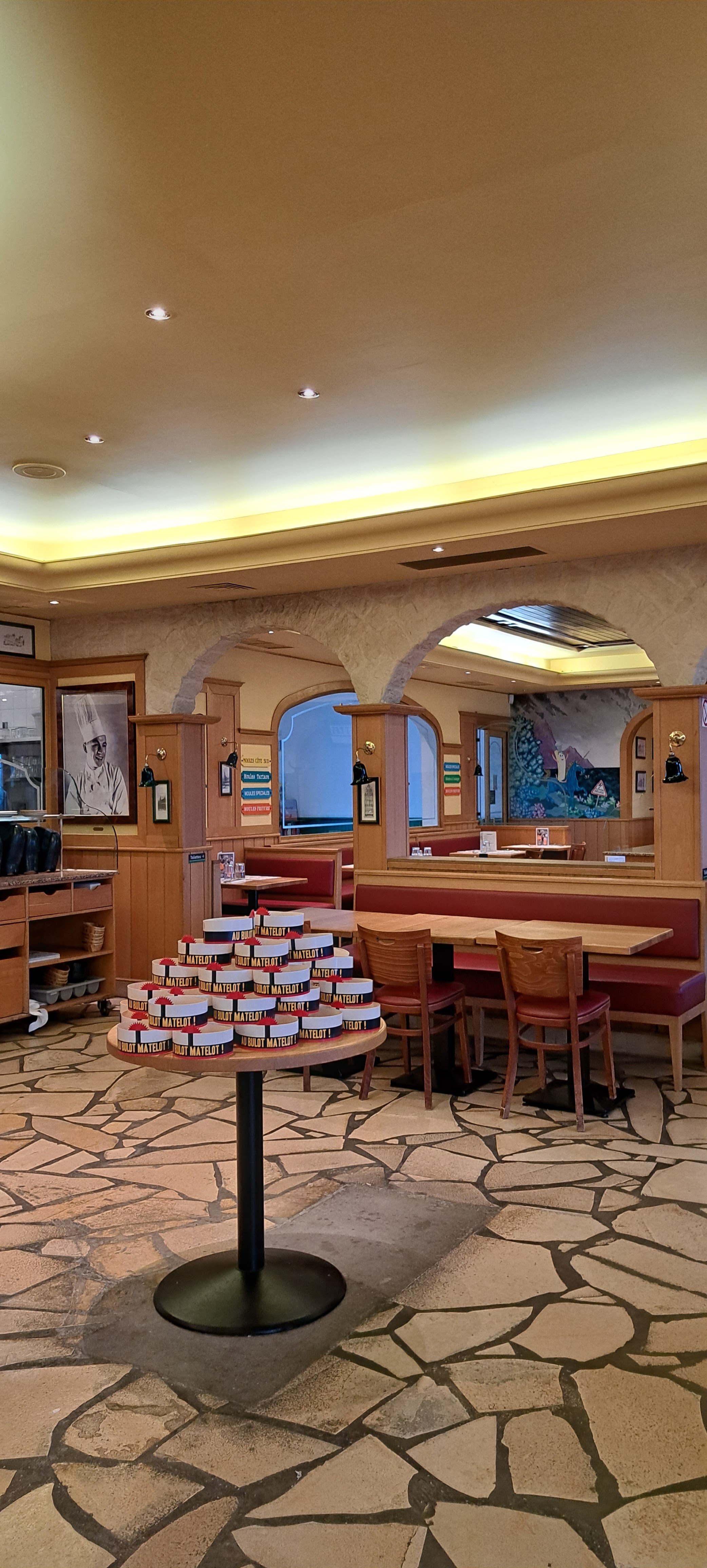 Plus de moule quand on y est allé 2 fois sur 2 jours. Donc reparti déçu il faudrait l'afficher au lieu de faire patienter pour l'annoncer ensuite. Une responsable pas agréable du tout au faux sourire qui vous dit on s'occupe de vous et après avoir attendu 30 mn debout on nous présente une table. Le personnel me fait penser à celui de certains hospice qui sont blasés et traitent la clientèle comme certains le fond avec les personnes âgées. Je ne suis pas âgée et personne ne devrait être traité comme un sac de linge sale