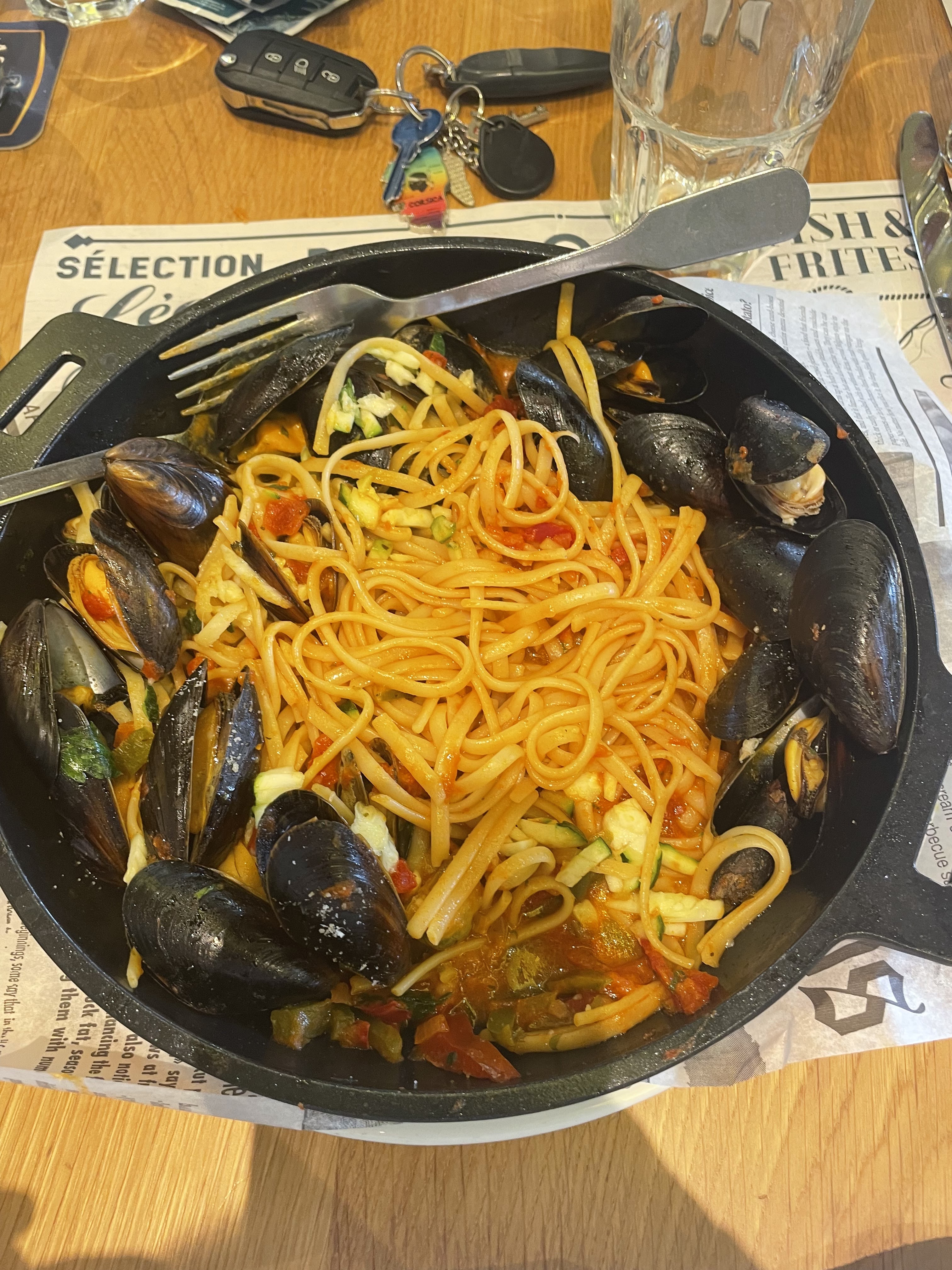 Serveur très bien.Service rzapide ,les moules sont bonnes et la sauce également. Un petit bémol sur les frites.