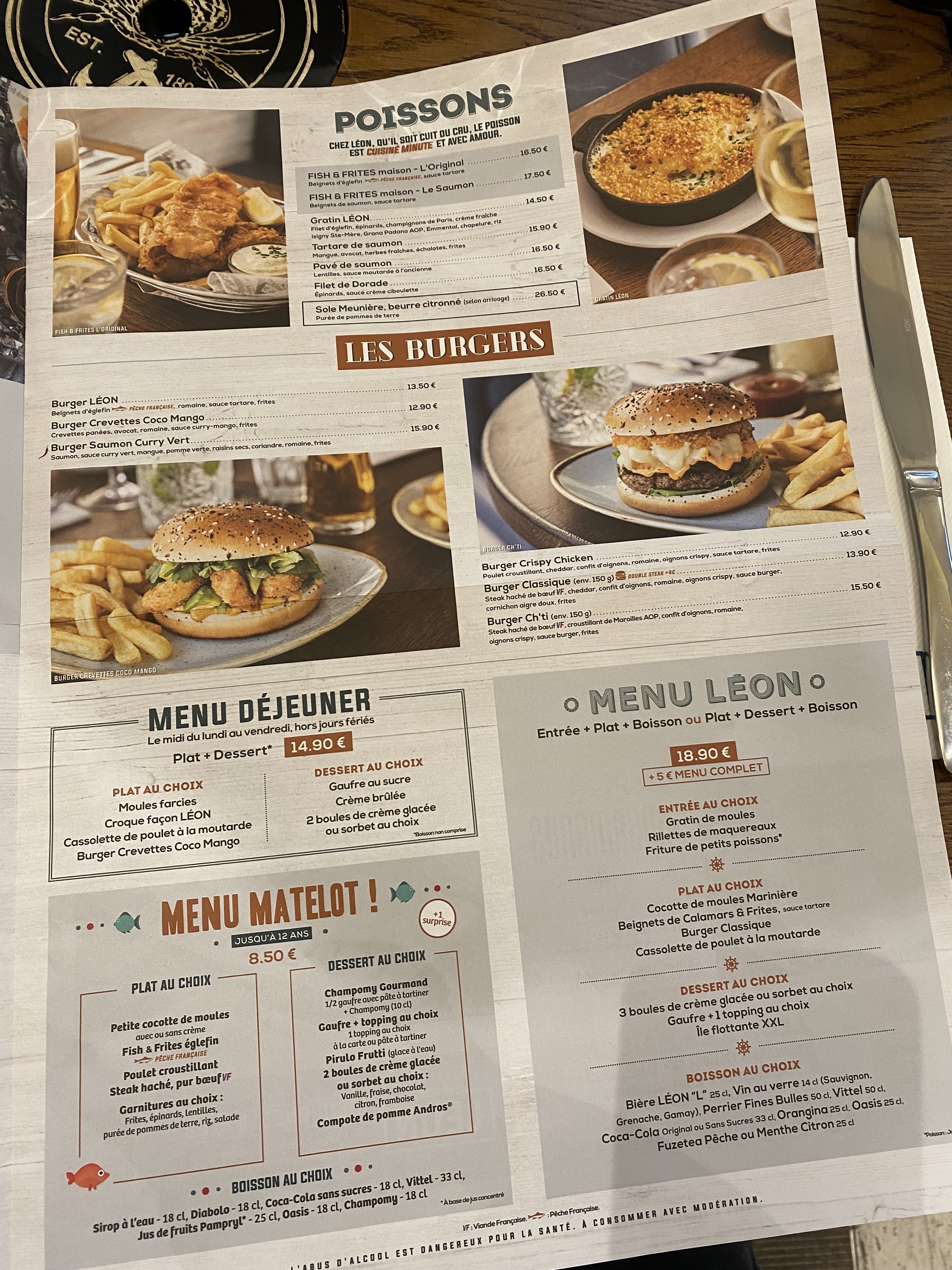 Ne recommande pas du tout, je viens juste de me remettre d'une gastro de fou, en souffrance+++ depuis ce matin. Tout ça pour des moules marinières... plus jamais Léon. Adieu
