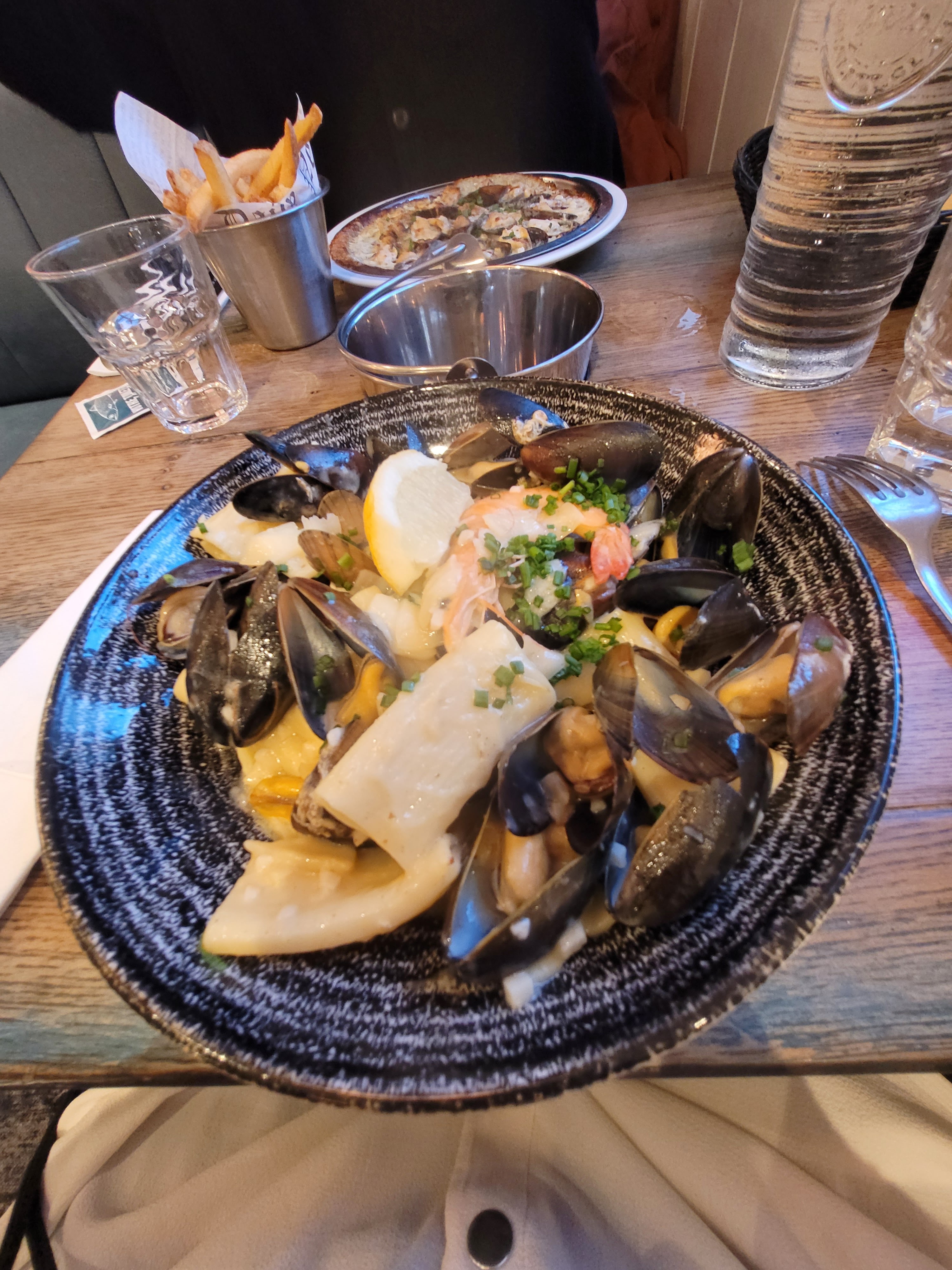 Quel changement ! Franchement super déco, directeur adorable et une carte surprenante : le gratin de moule est à tomber et les pâtes aussi, on a fait moitié moitié avec ma moitie. Bravo 🤩🦞