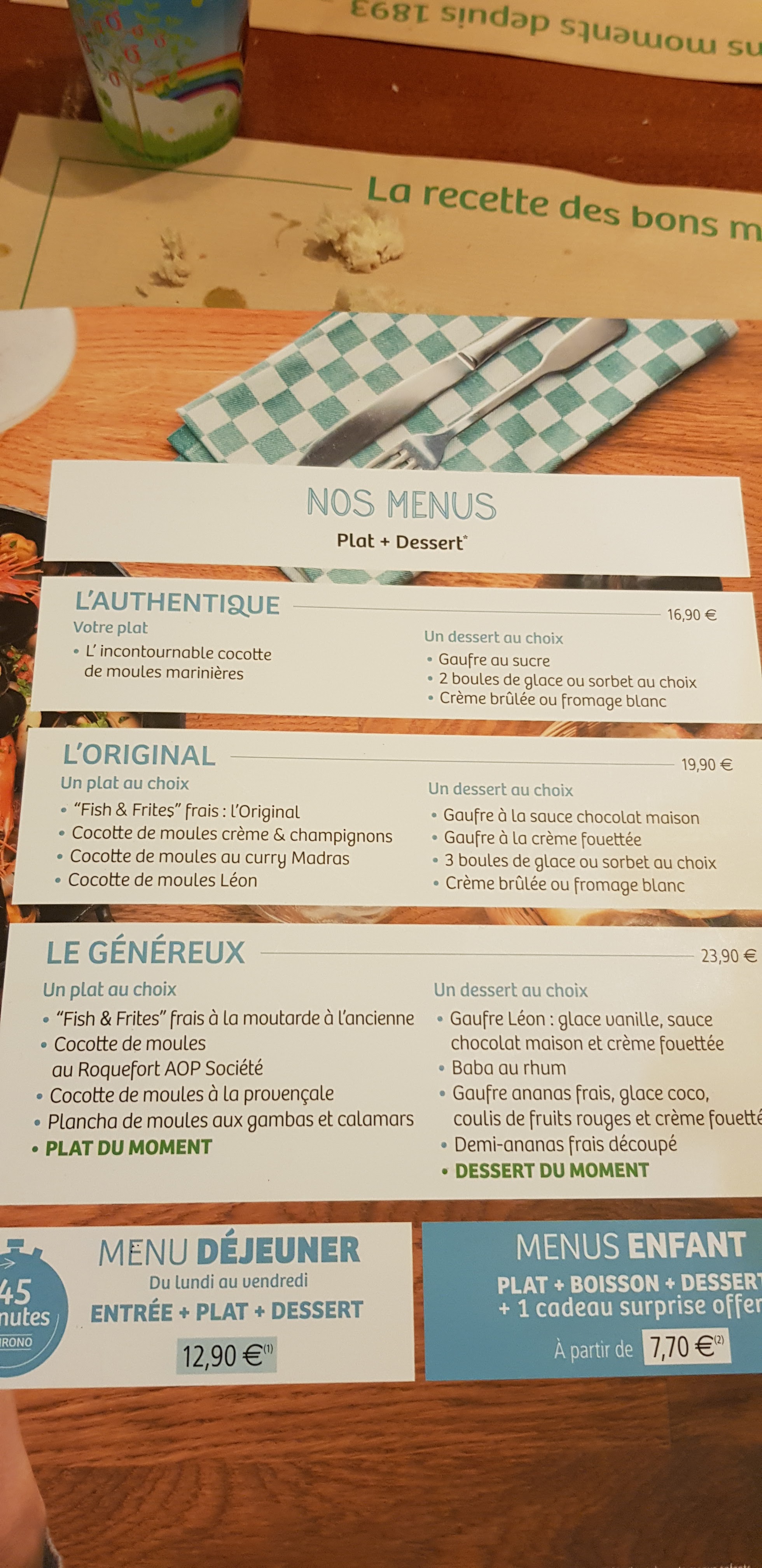 J'y suis allé un dimanche soir et ils font des moules et frites à volontés avec un dessert pour 18,50€. Un vrai régal ! Merci à vous 🙂