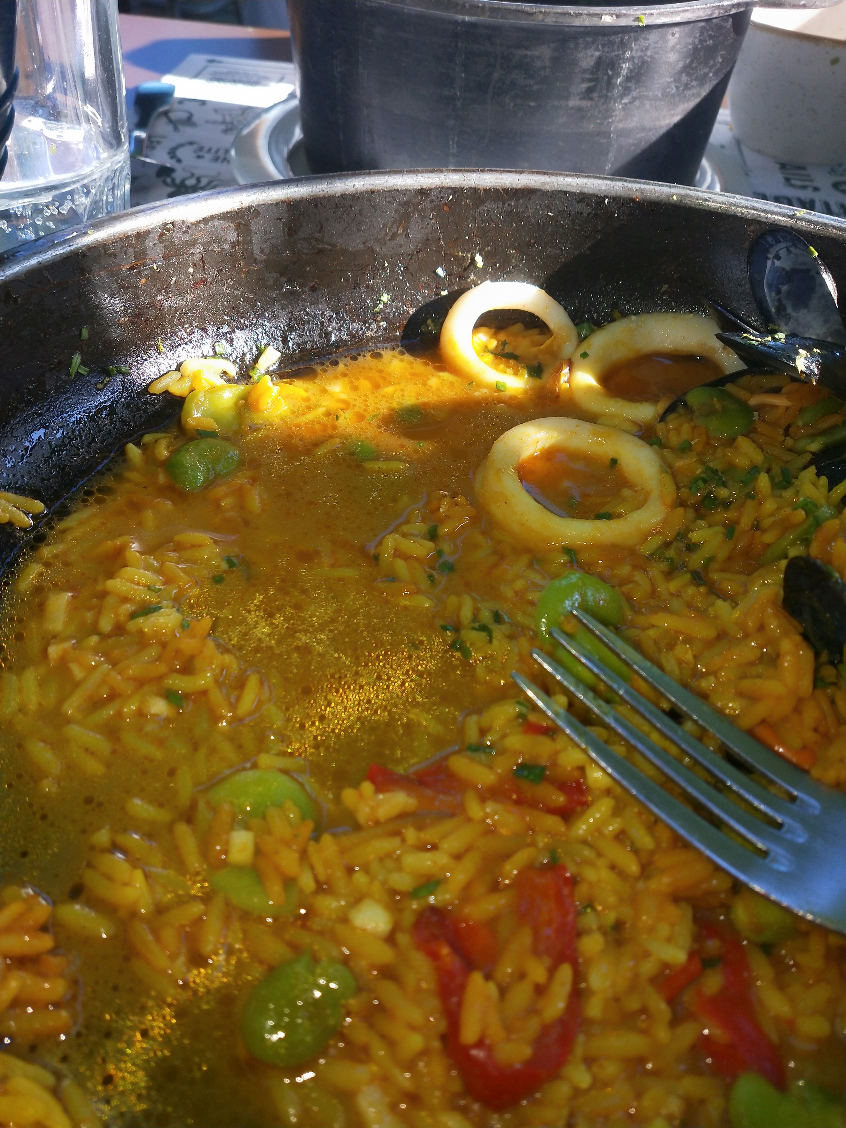 Ce n'est pourtant pas la première fois que j'y viens. Mais aujourd'hui mon choix c'est porté sur la paella. Quel n'a pas été ma surprise de voir arriver un plat à paella avec deux cuillères à soupe de riz qui nageaient dans du jus recouvertes de moules et de calamars. Quand j'en ai fait la remarque, la serveuse m'a répondu sèchement C'est du riz que vous voulez ! Et c'est contenté de me ramener un bol de riz safrané avec des fevettes sans aucune excuse. Grosse déception !