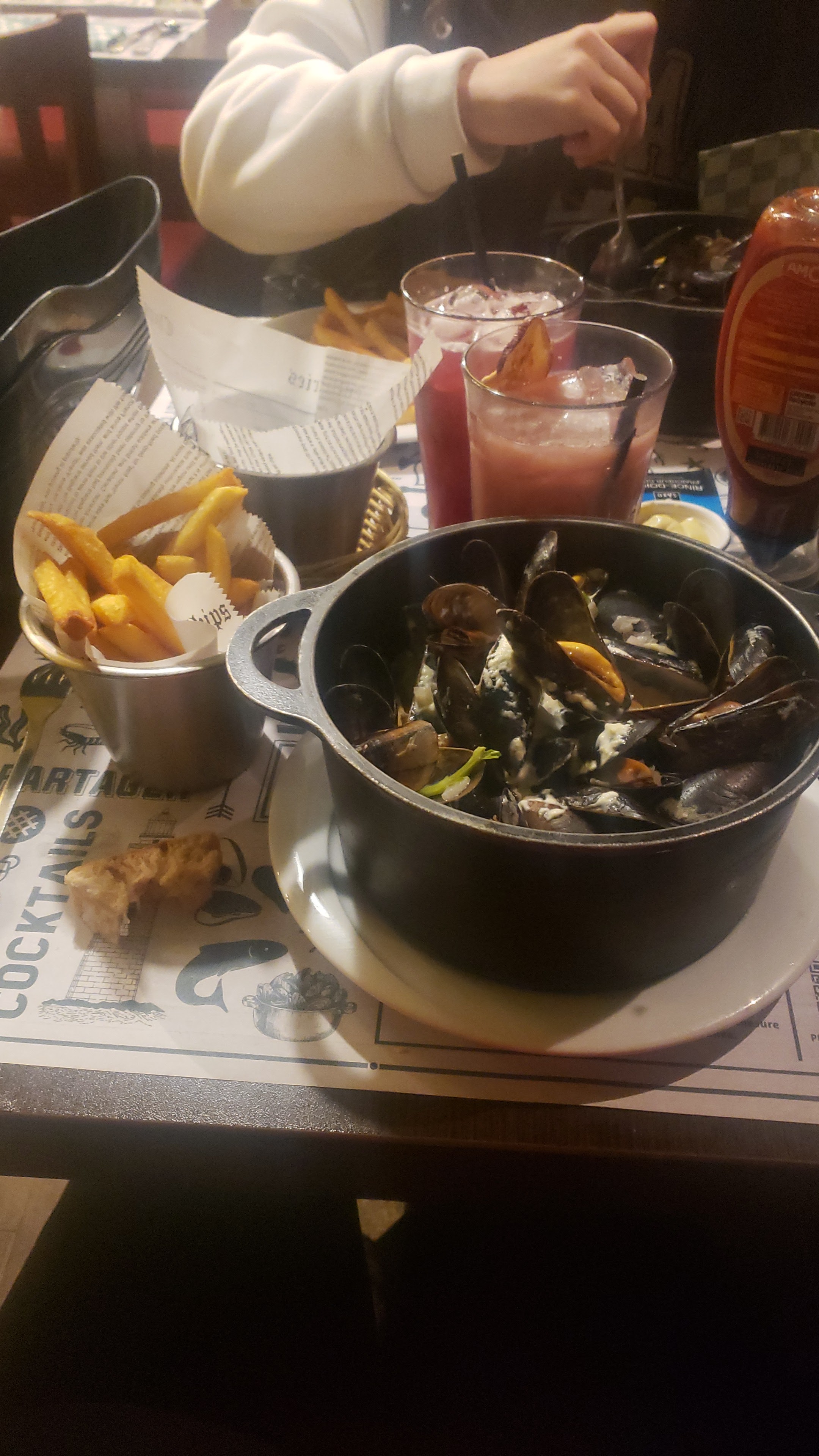 Je vais commencer par le service, super! Les serveuses sont très sympathiques et à notre service, elles savent également nous conseiller. Les moules sont excellentes, cette fois ci j'ai opté pour les moules sauces roquefort et ce n'est pas si fort que ce qu on pourrait croire et c'est très bon! Le fish and chips est très bon également, bien qu'il manque un peu de verdure pour enlever ce goût de gras en bouche. A tous les adeptes de moules, je recommande!