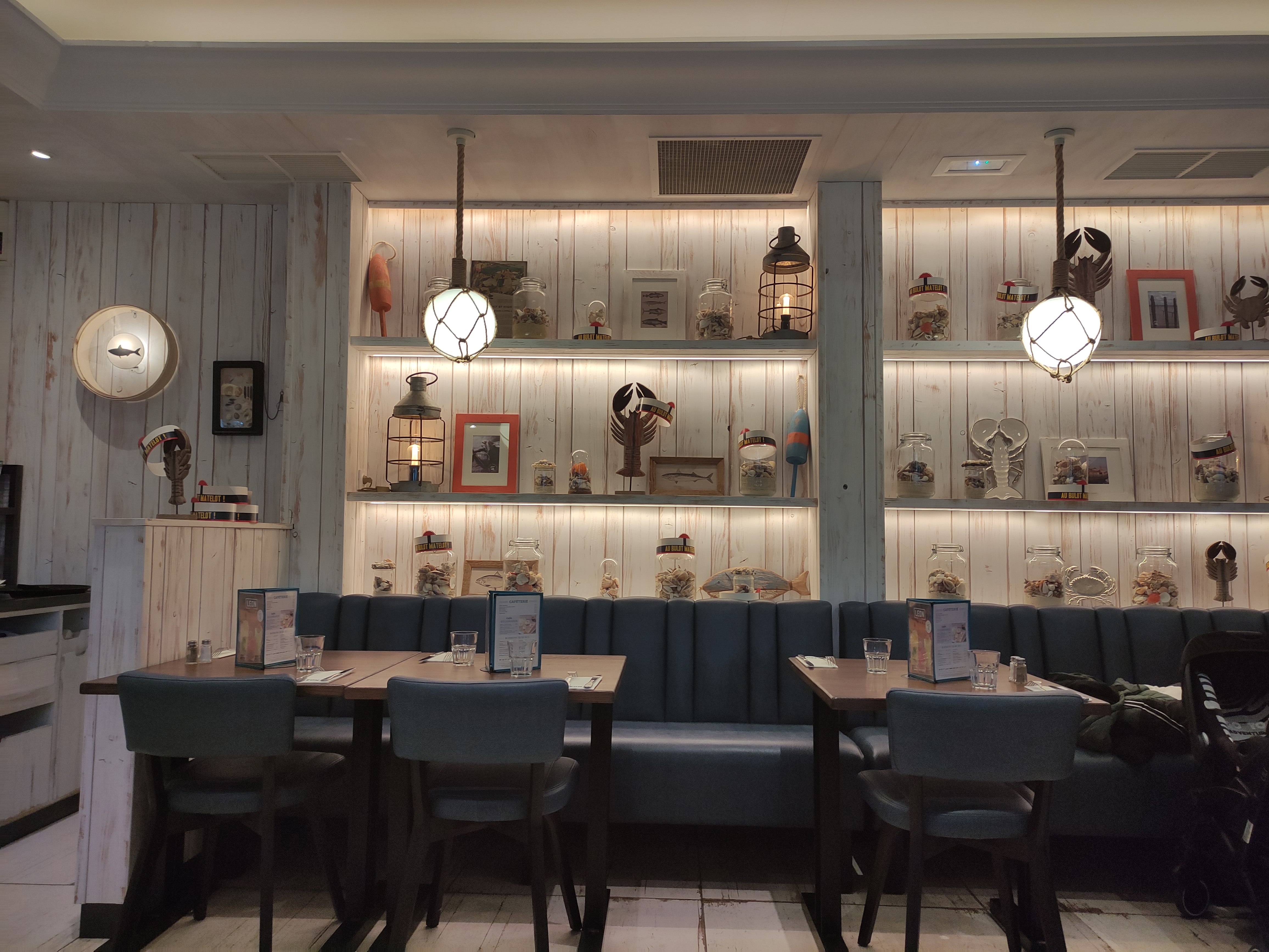 Décoration du restaurant moderne et dans le thème de la pêche. Serveurs très a l'écoute et aimable. Prix bon marché, nourriture excellente je recommande