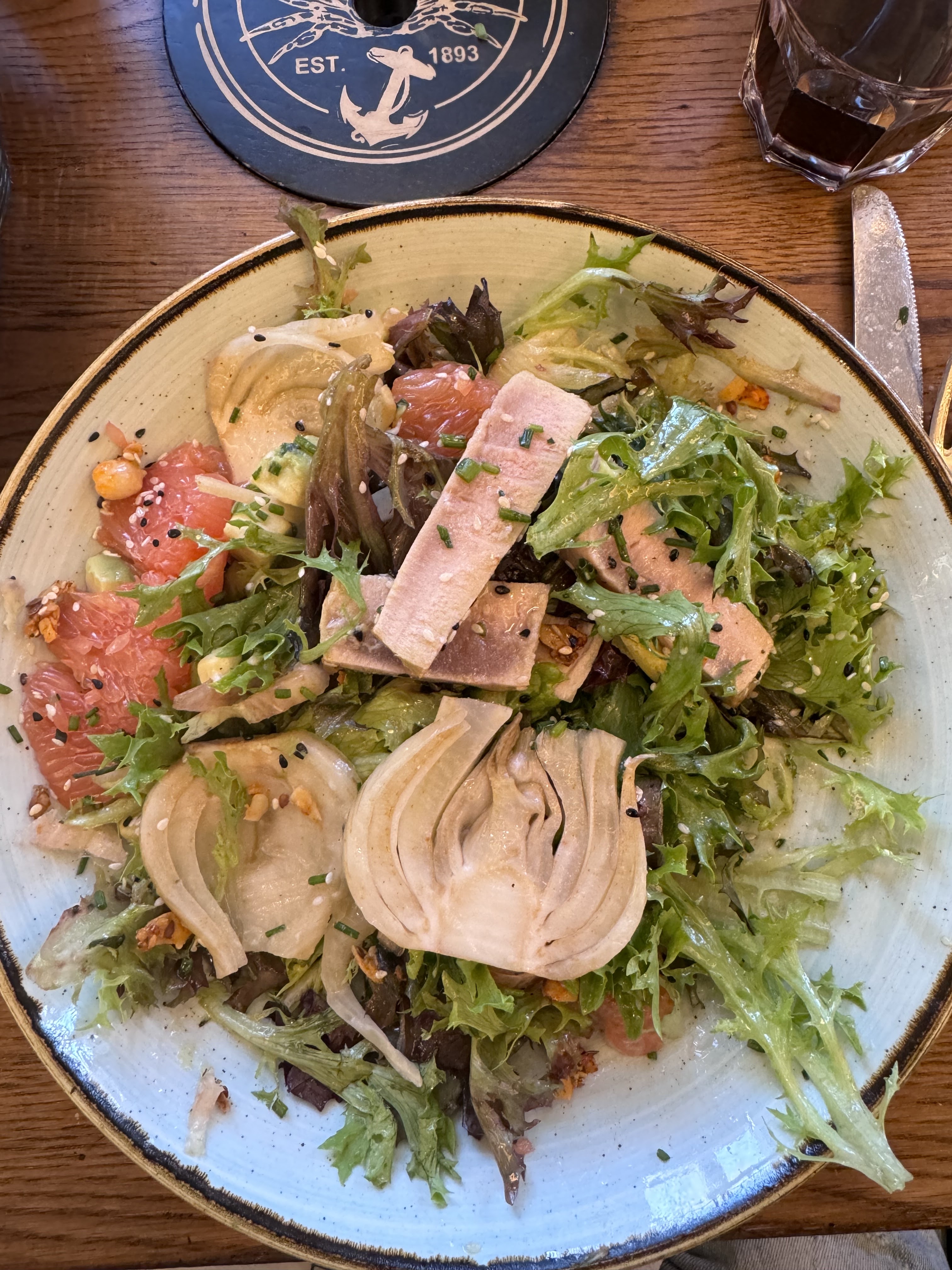 Je vous recommande ce restaurant. La décoration est très jolie, le thème est sur la mer avec des tons bleus et blancs. Des serveurs au top, agréables et professionnels. Nous avons pris des tapas à partager, du saumon qui était excellent et un petit dessert à partager à deux.