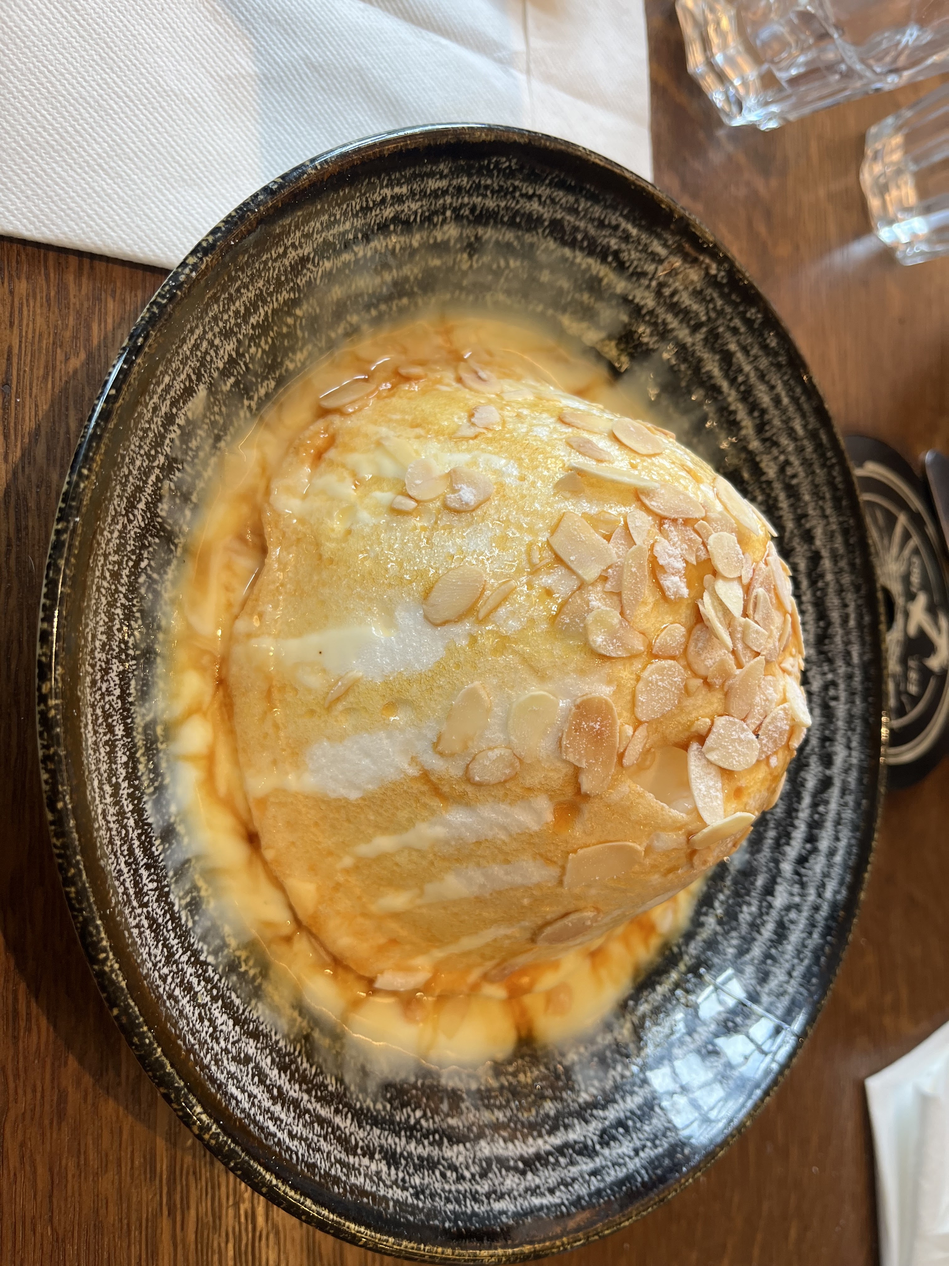 Le service non-stop du samedi est appréciable ! Nous avons pris les moules marinières de bouchots en terrasse vers 15h, elles étaient très bonnes et le service était rapide ( pas eu le temps de les prendre en photo désolé j’ai tout mangé :) ) petite gaufre légère caramel beurre salé en dessert parfait pour finir le repas !
