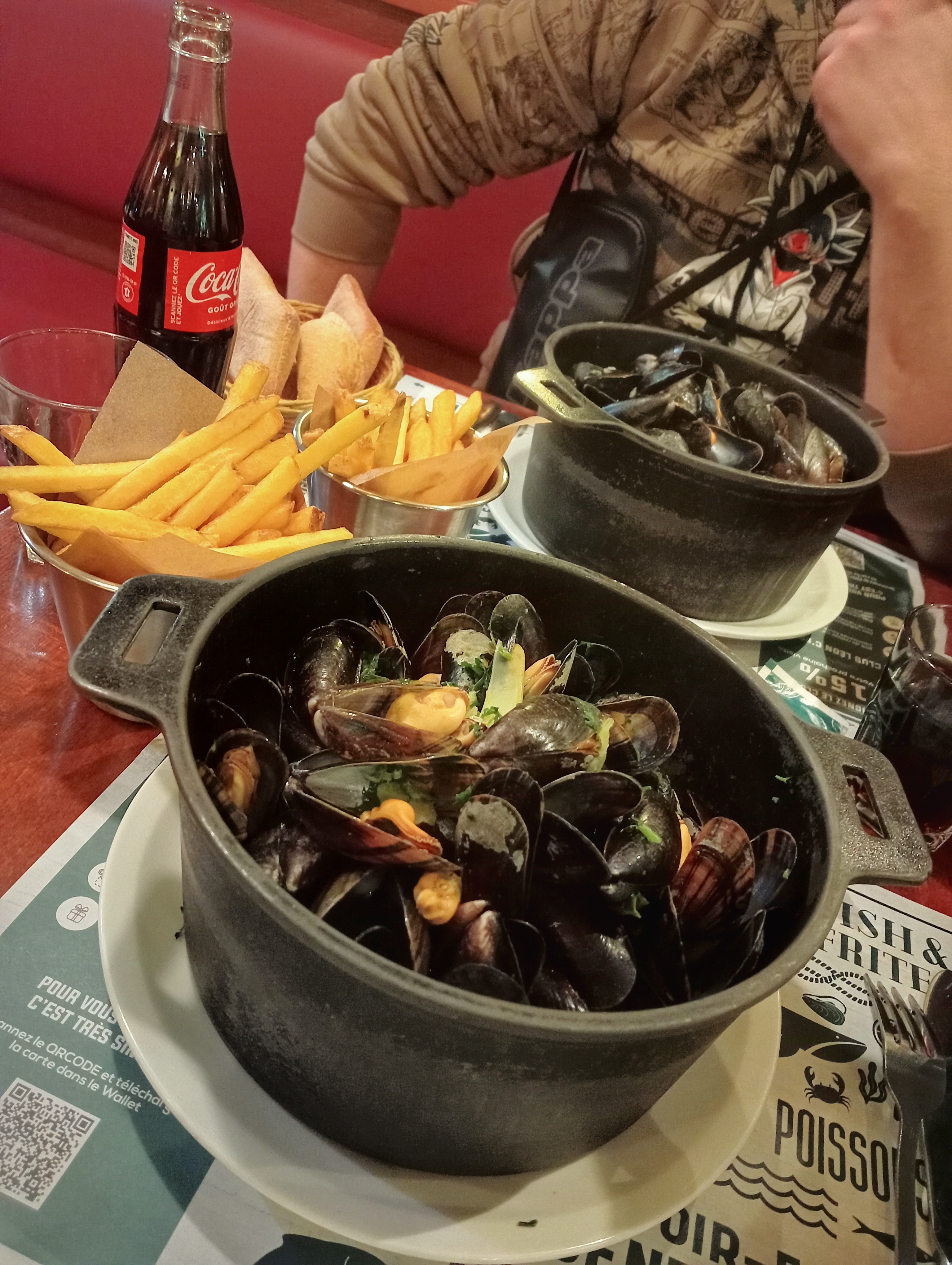 Restaurant correct, très propre, rapide, personnel sympathique mais pour le tarif quantités de moules et frites faibles pour le prix.... Pourtant je ne suis pas un gros mangeur ! Les desserts sont corrects, même XXL pour certains. Un restaurant sans pain par défaut, où il faut réclamer...Pas top Il devrait être proposé à la prise de la commande comme les sauces en accompagnement.... On a mais il faut toujours réclamer....