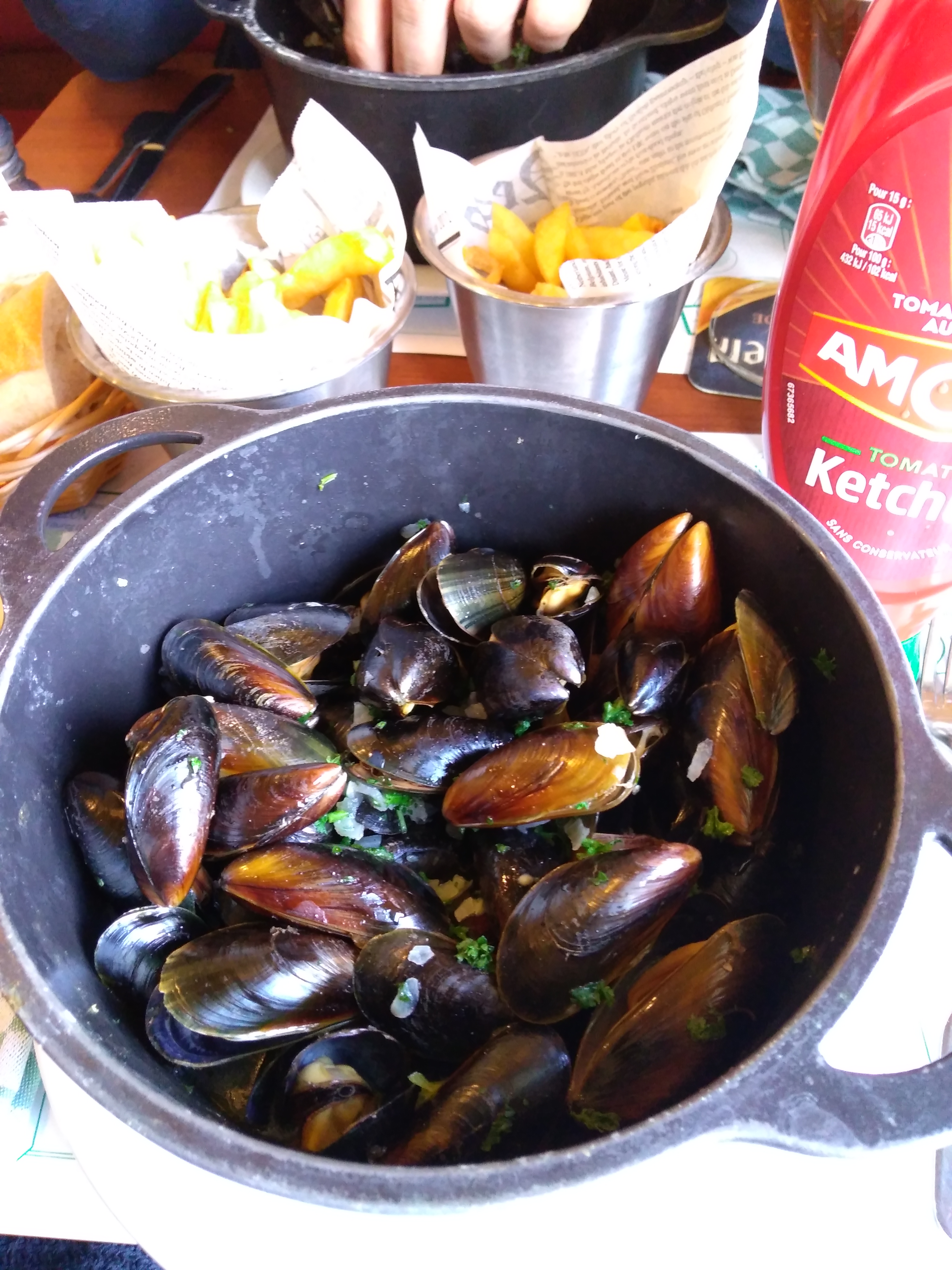 Nous nous sommes regalés,meme le petit qui est difficile.Les moules sont délicieuse. Le service impeccable, on nous laisse le temps de manger tranquillement sans nous sauter dessus a peine fini l'assiette.