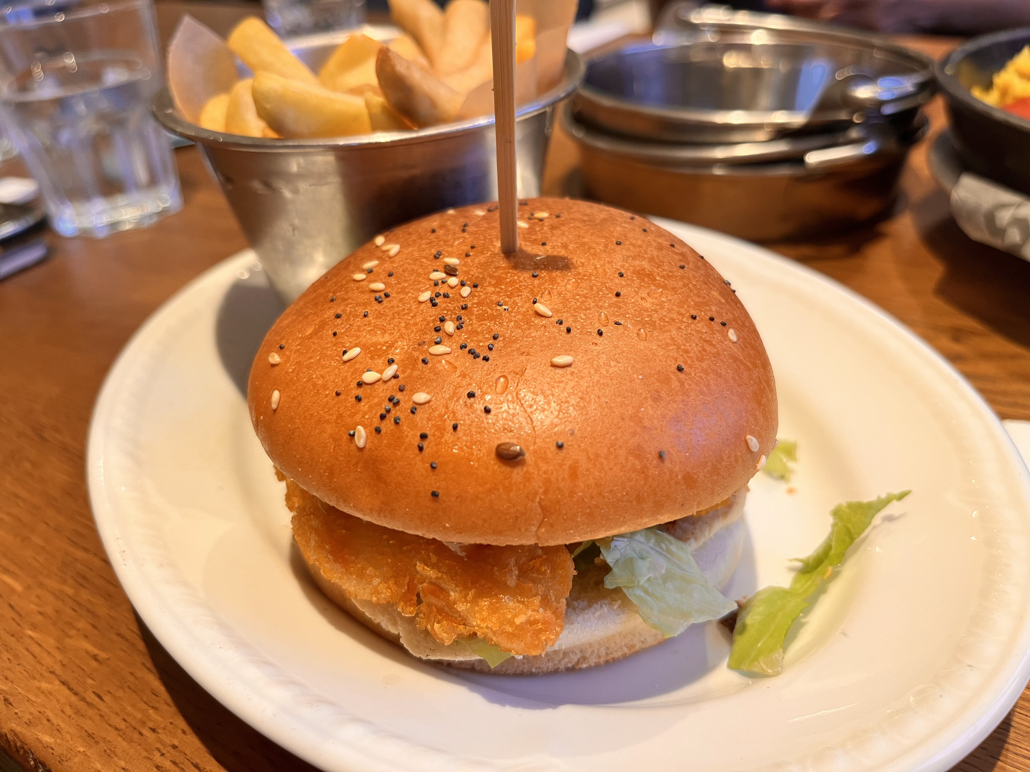J'ai eu le burger au poulet, la sauce était très délicieuse, les frites étaient chaudes et croustillantes. J'ai aussi eu les moules, elles étaient assez fraîches mais très maigres et de saveur fade. Le service était terriblement lent et mauvais. La paella ne ressemblait en rien aux photos du menu et sur Google, elle avait une sauce très aqueuse. Ne recommande pas.
