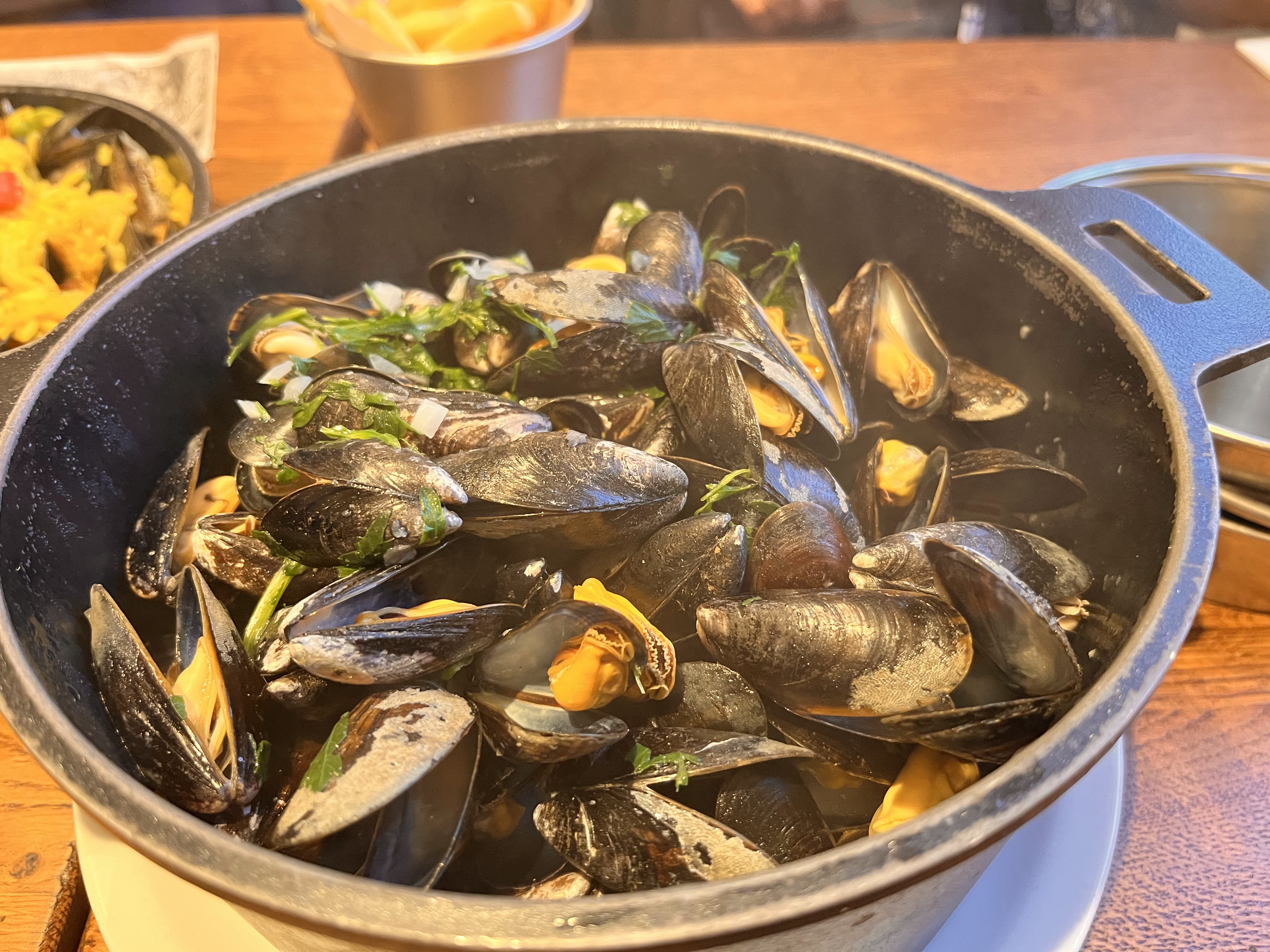 Les moules sont toujours une valeur sûre, par contre déçu par la paella, trop salée (probablement surgelée), et goût/texture indigne de la culture espagnole. Plat déconseillé. Service à l'écoute, pas trop d'attente malgré un restaurant presque plein.
