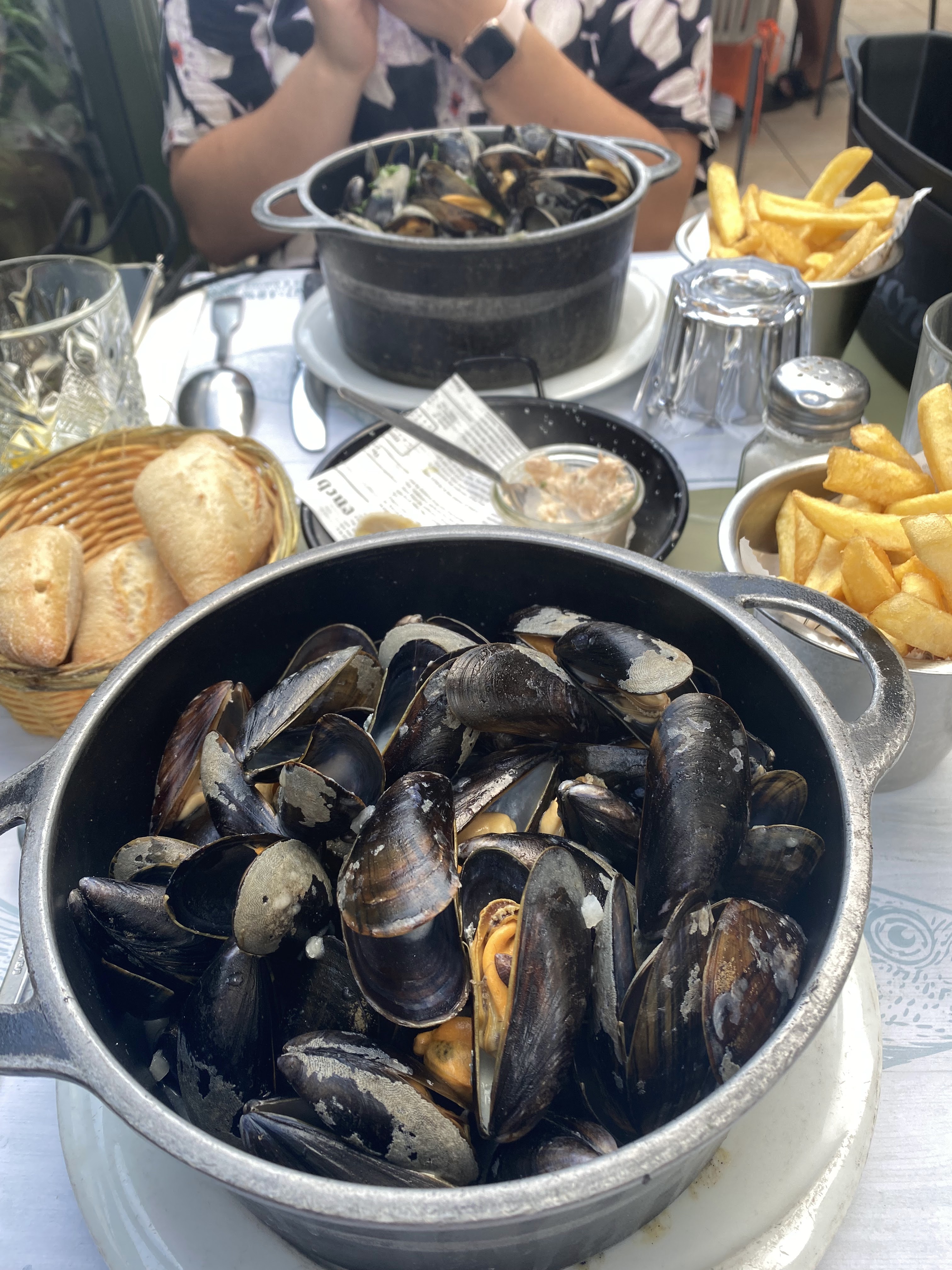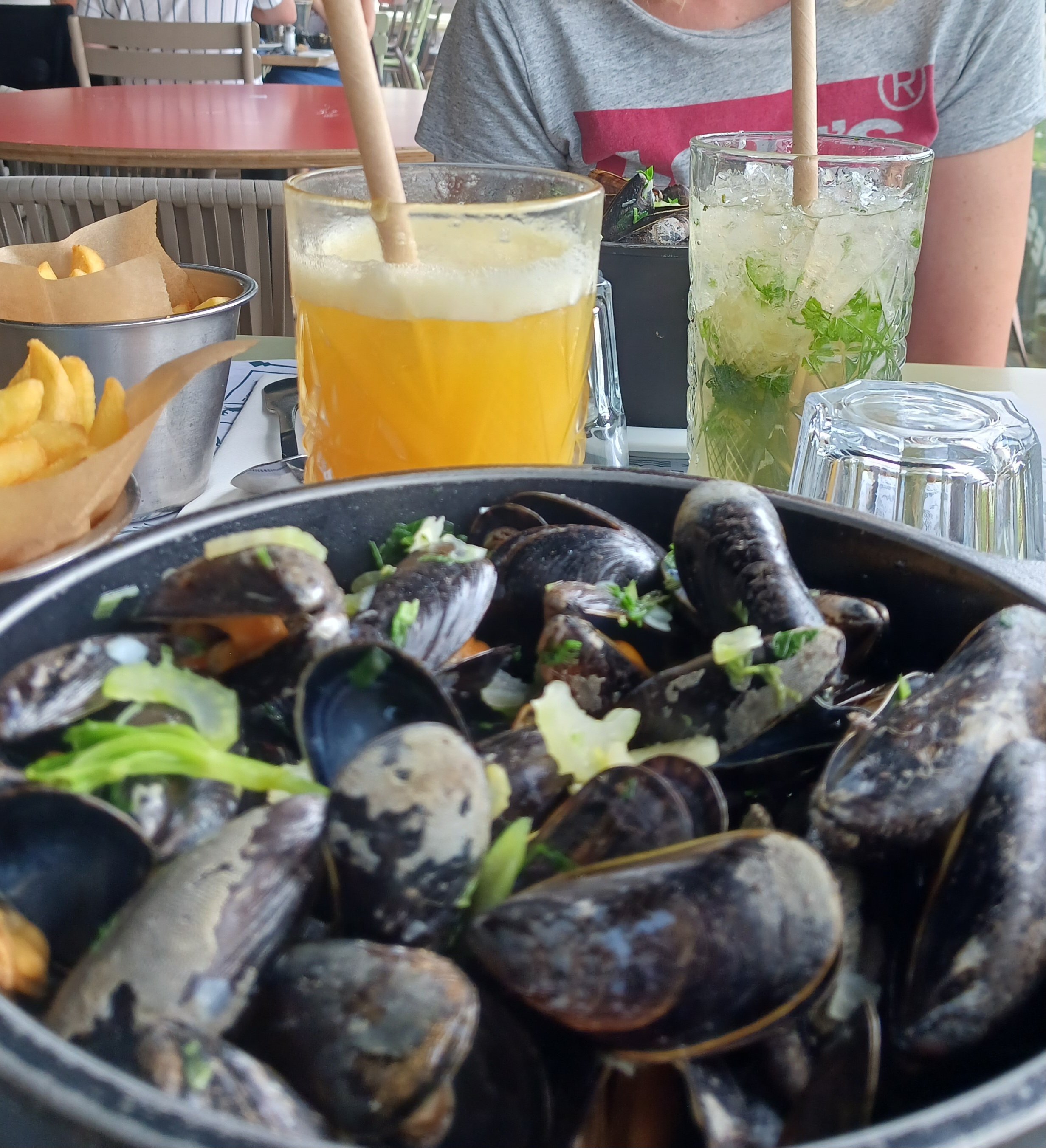 Arrivées vers 19h le restaurant était vide, nous sommes installées en terrasse, à peine installées nous n’avons presque pas le temps de choisir qu’un serveur nous demande ce qu’on commande, nous prenons donc un apéritif, 5 minutes après nous demande notre repas, il prend notre commande et revient avec notre repas alors que nous n’avons pas finit notre apéritif, nous nous retrouvons donc avec les moules et l’apéritif ! Une fois le repas terminé et plus de personnes en terrasse nous avons attendues 40 minutes avant qu’on prenne notre dessert. Serveur très mal organisé, trop intrusif (écoute notre conversation, on se sentait très observé). Malgré tout les moules étaient bonnes.