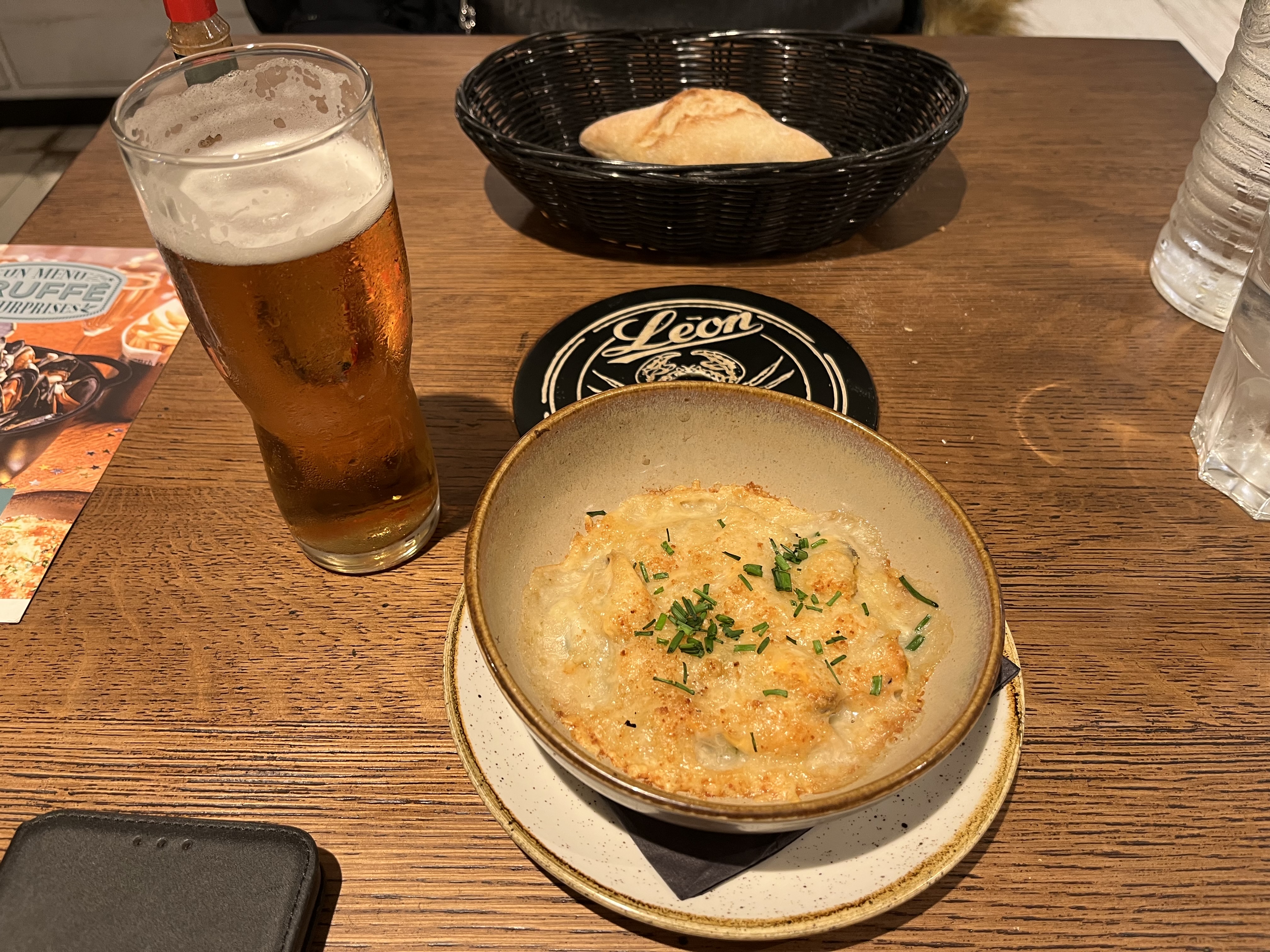 Bon repas comme toujours chez Léon Cocotte de moules crème champignons : moules bien charnues, bon mélange des saveurs pour la sauce et bien crémeuse… Personnel et clientèle sympathique et sans prise de tête …