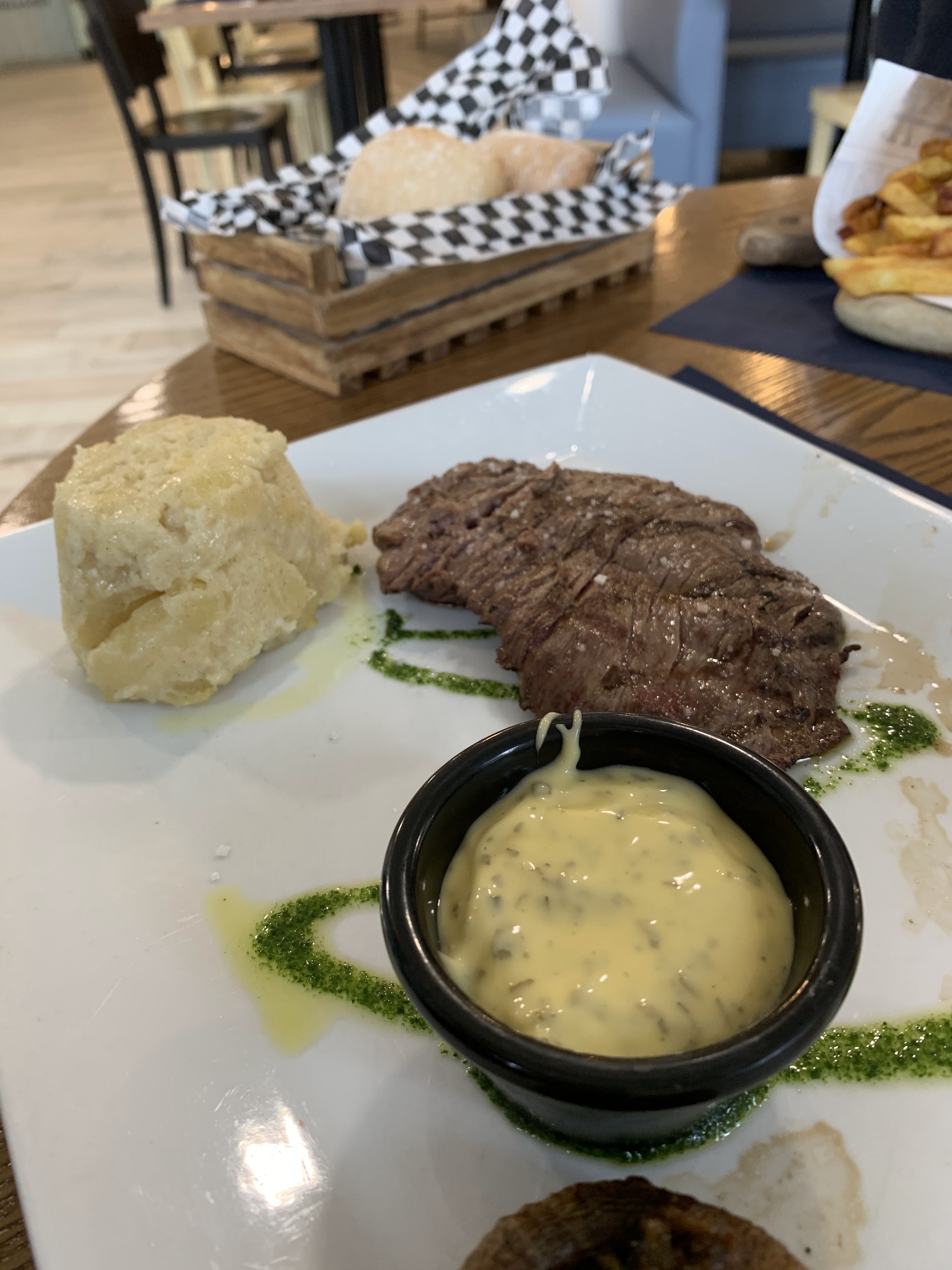 Steak saignant à l'intérieur et trop cuit sur le dessus, purée gout chaussure,demandez une glace goût lait de chèvre et vous aurez une glace citron, potatoes pas cuite à recommandé à personne