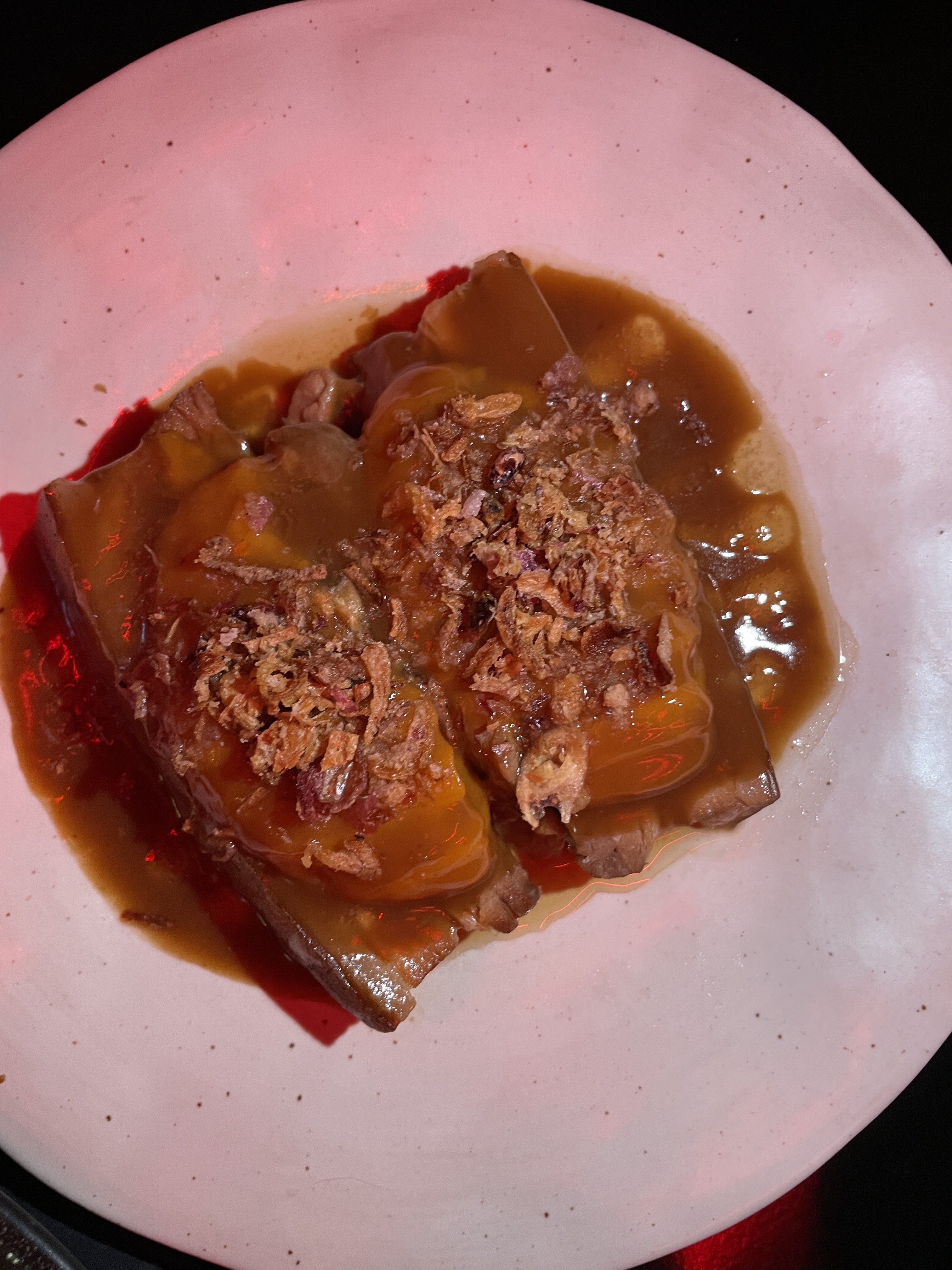 L’ambiance est top, on est plongé dès le début dans un univers de néon rouge, la playlist est géniale et très hétéroclite hahah. Les plats sont donc à l’image de tout cela, atypique, des mélanges qu’on a pas l’habitude de tester ! Les ravioles xu mai étaient délicieuses, de même pour le dessert. Pas totalement convaincue par les moules (c’est perso) mais on ne peut qu’encourager ce type de plats qui sortent de l’ordinaire ! Mention aussi pour le personnel qui est super sympa. Je reviendrai avec plaisir :) Hâte de voir l’évolution future du restau, félicitations au chef