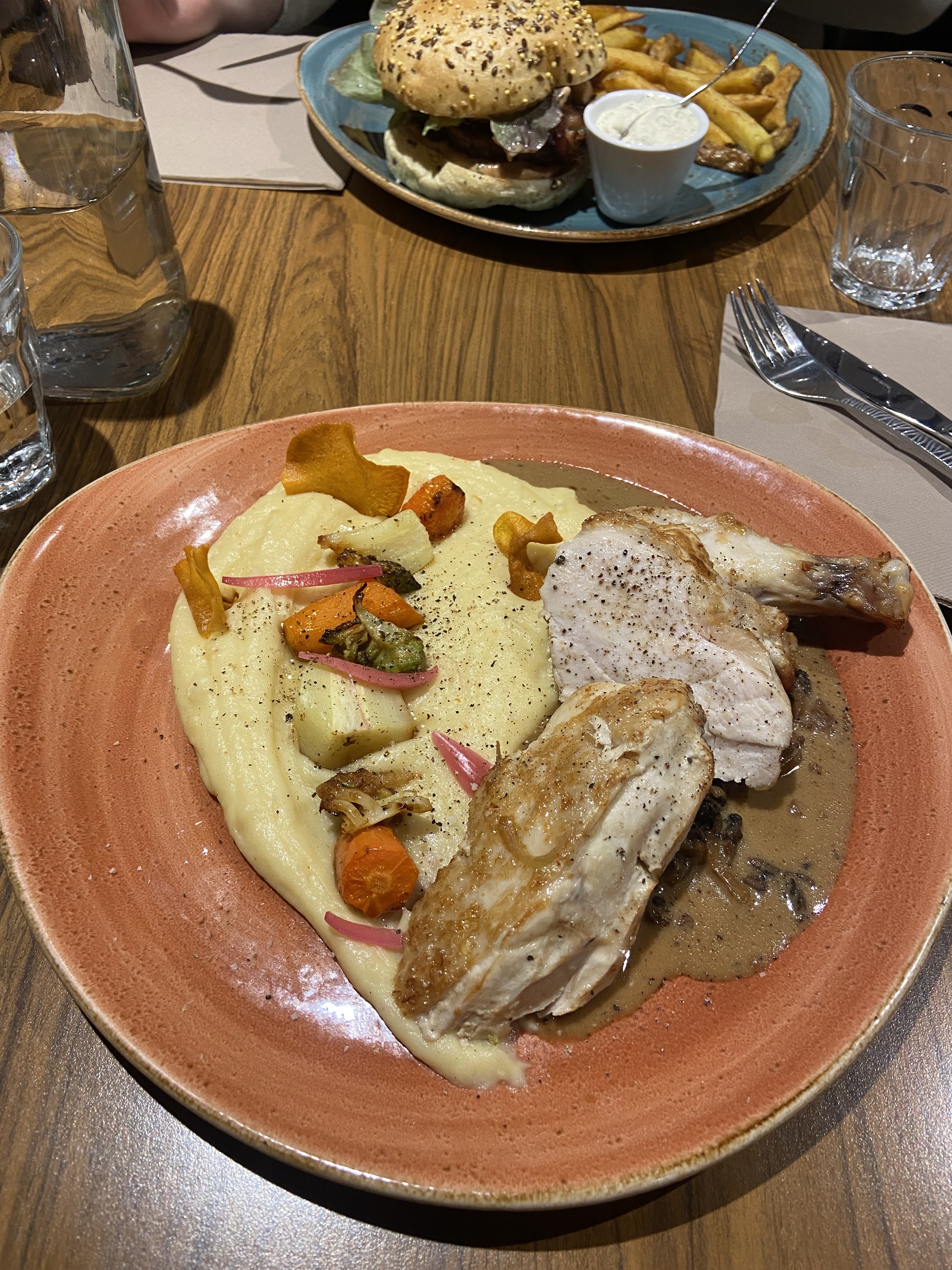 Quel repas ! Le risotto de crozets aux légumes, un régal et un hamburger pour enfant. Parfait, avec le sourire en plus.