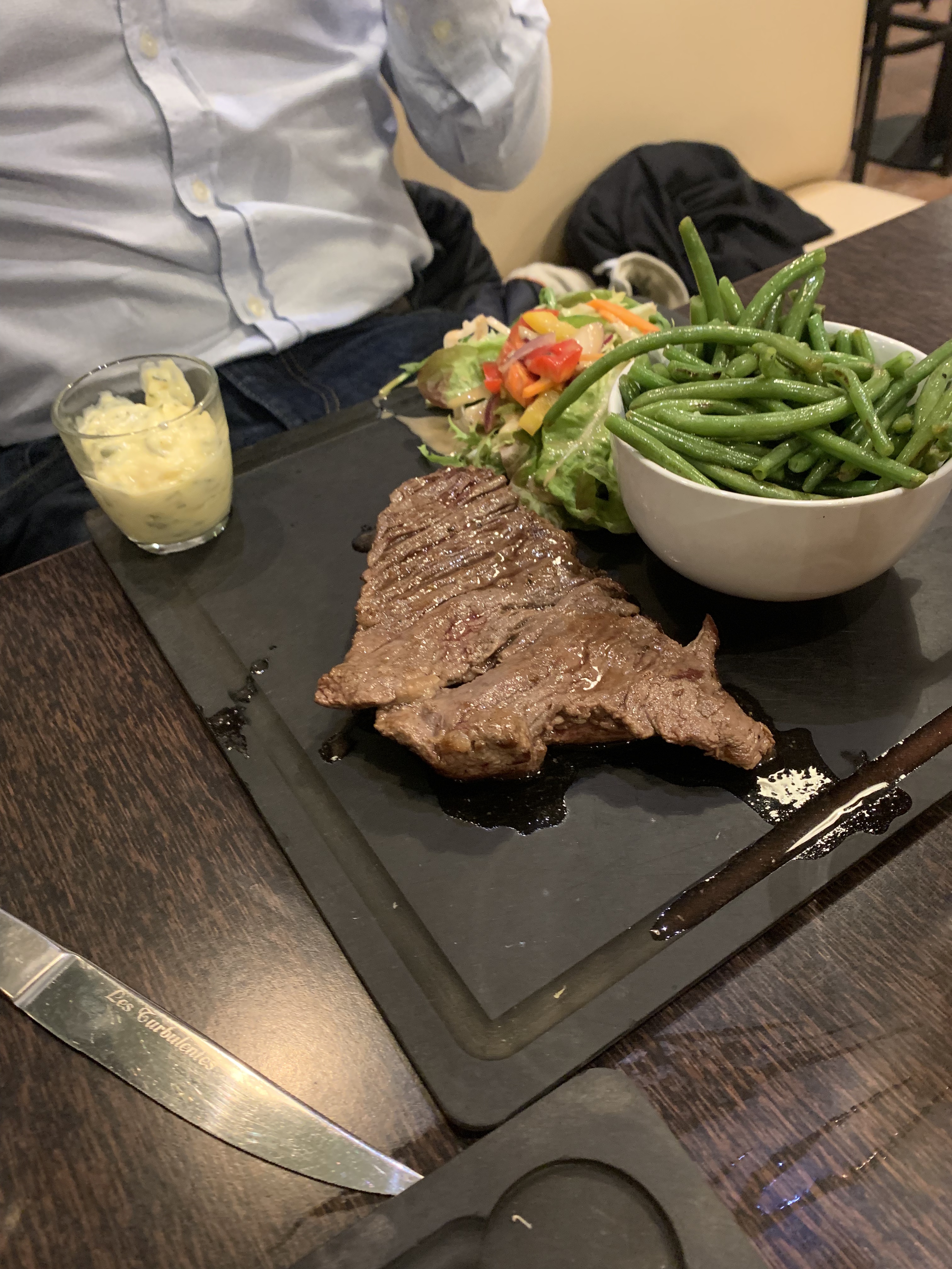 18 juillet.terriblement déçus.des frites archi rechauffees,grises,qui devaient sûrement venir de restes d'autres tables.cote de bœuf passable Les desserts inintéressants mon fils s'est rabattu sur un café gourmand à 11euros Qui en principe auraient du être servi avec entremets,mais non, biscuit Madeleine très bouratif après un repas. Mon fils n'a pas voulu que je me manifeste ,et je regrette. Faites GAFFE à la concurrence !!!!!et pour moins cher et accueil plus agréable . Nous ne reviendrons plus