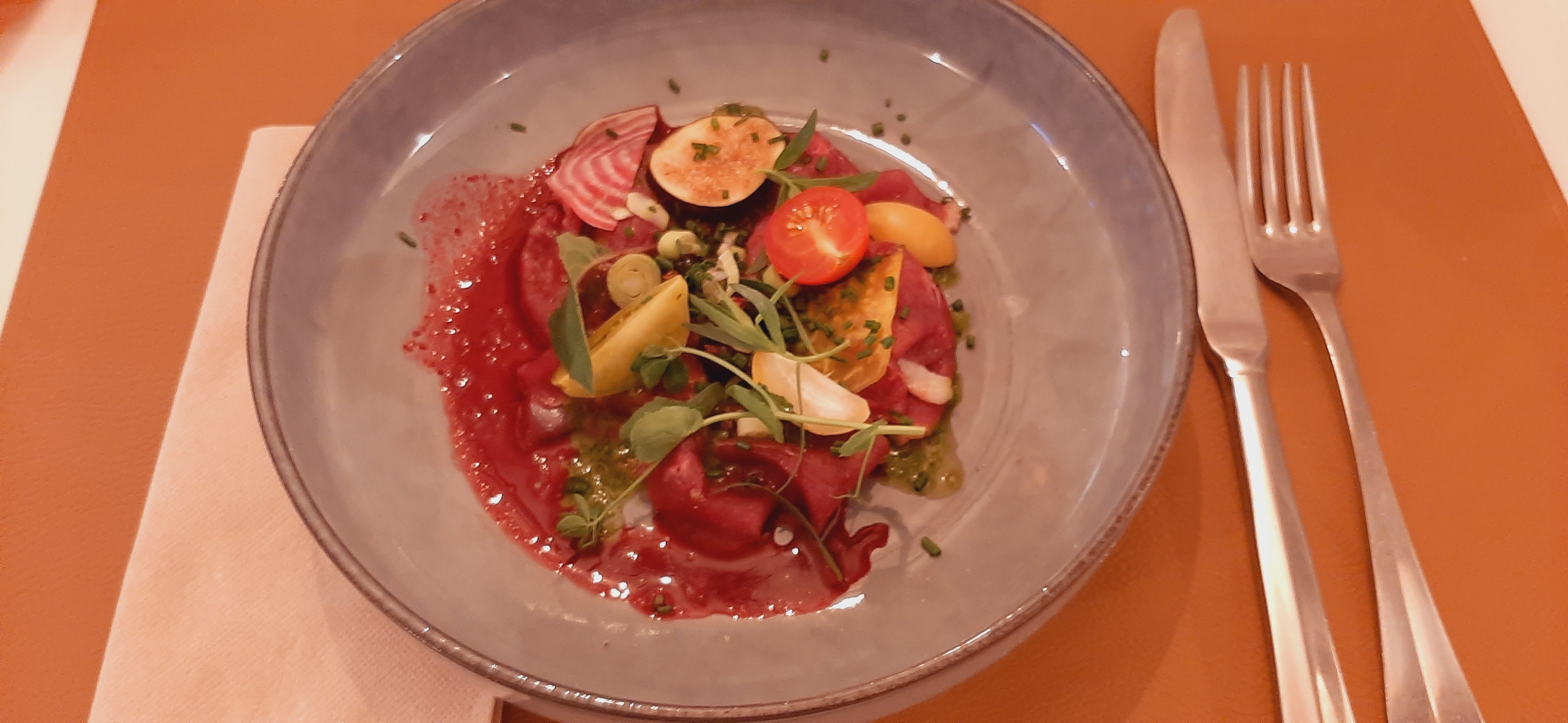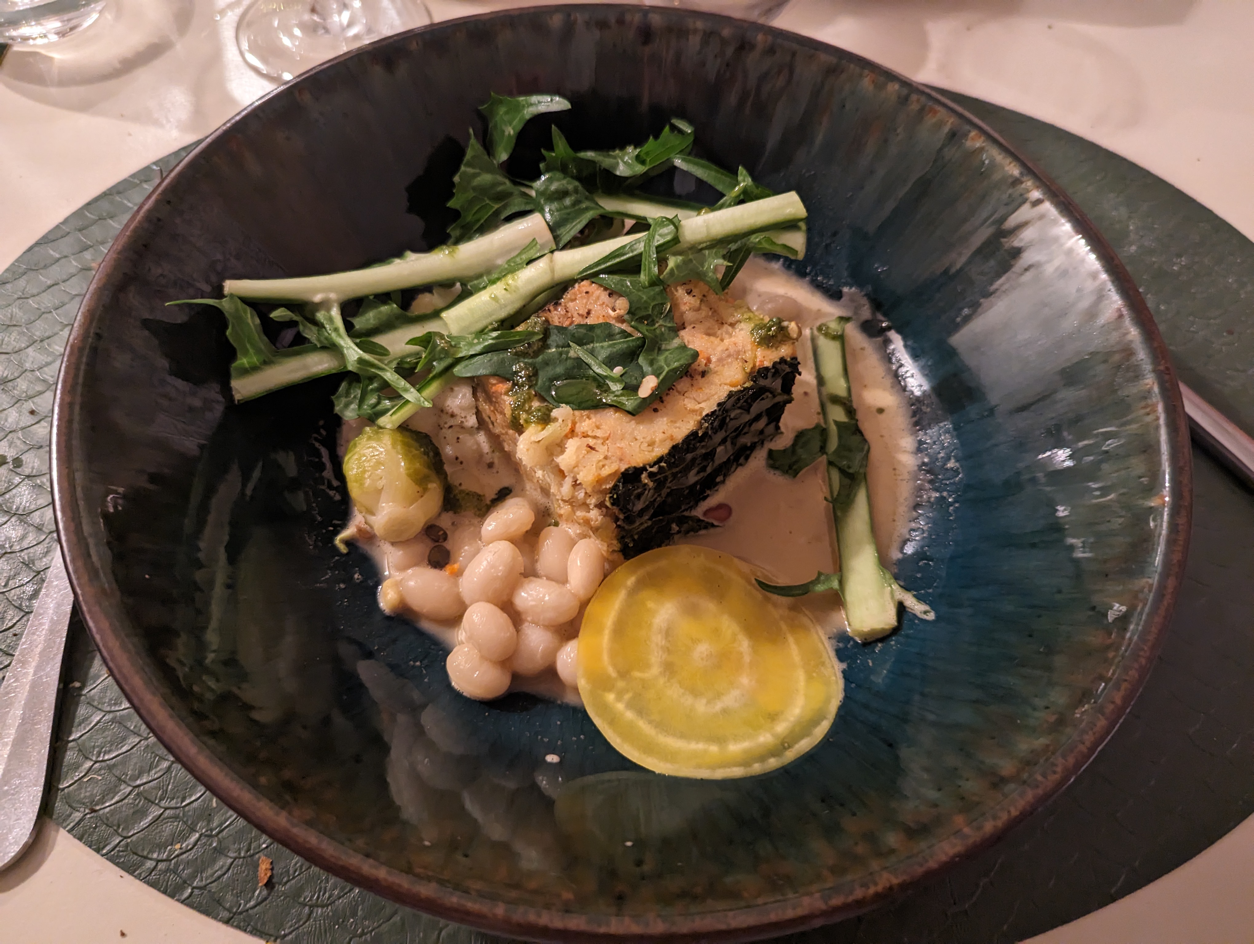 Parenthèse très agréable: mets très frais avec l'accent mis sur les légumes anciens, des assiettes soignées et une déco d'intérieur stylée. A recommander.