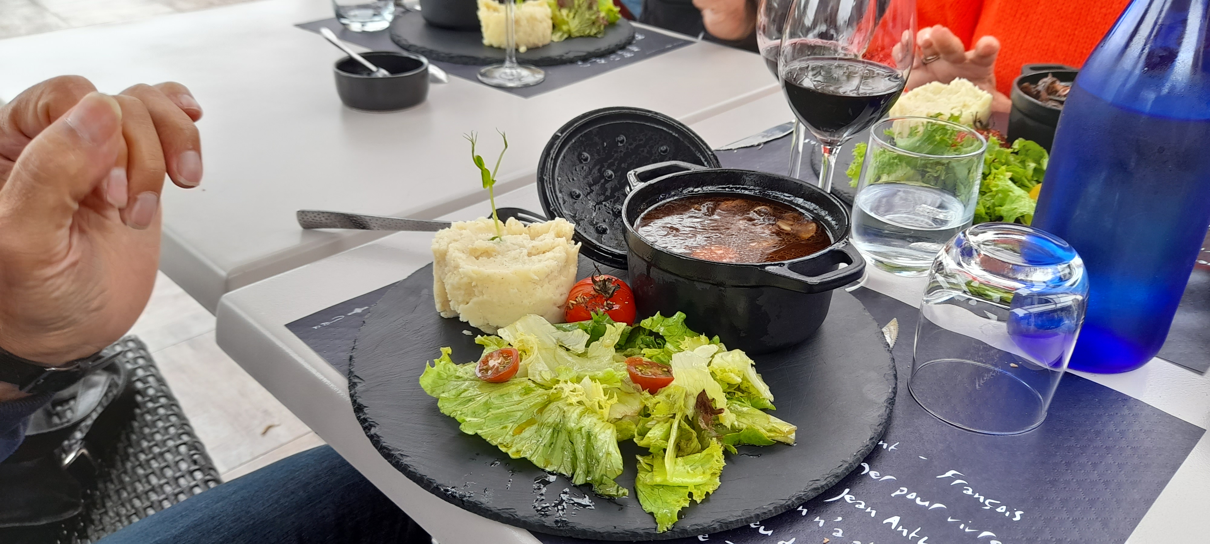 Après 8h de route, nous avons fait un arrêt pour manger aux 3 cocottes trouvées grâce aux avis sur internet. Nous n'avons pas été déçus. Très belle endroit, une qualité de viande excellente et de très bon dessert