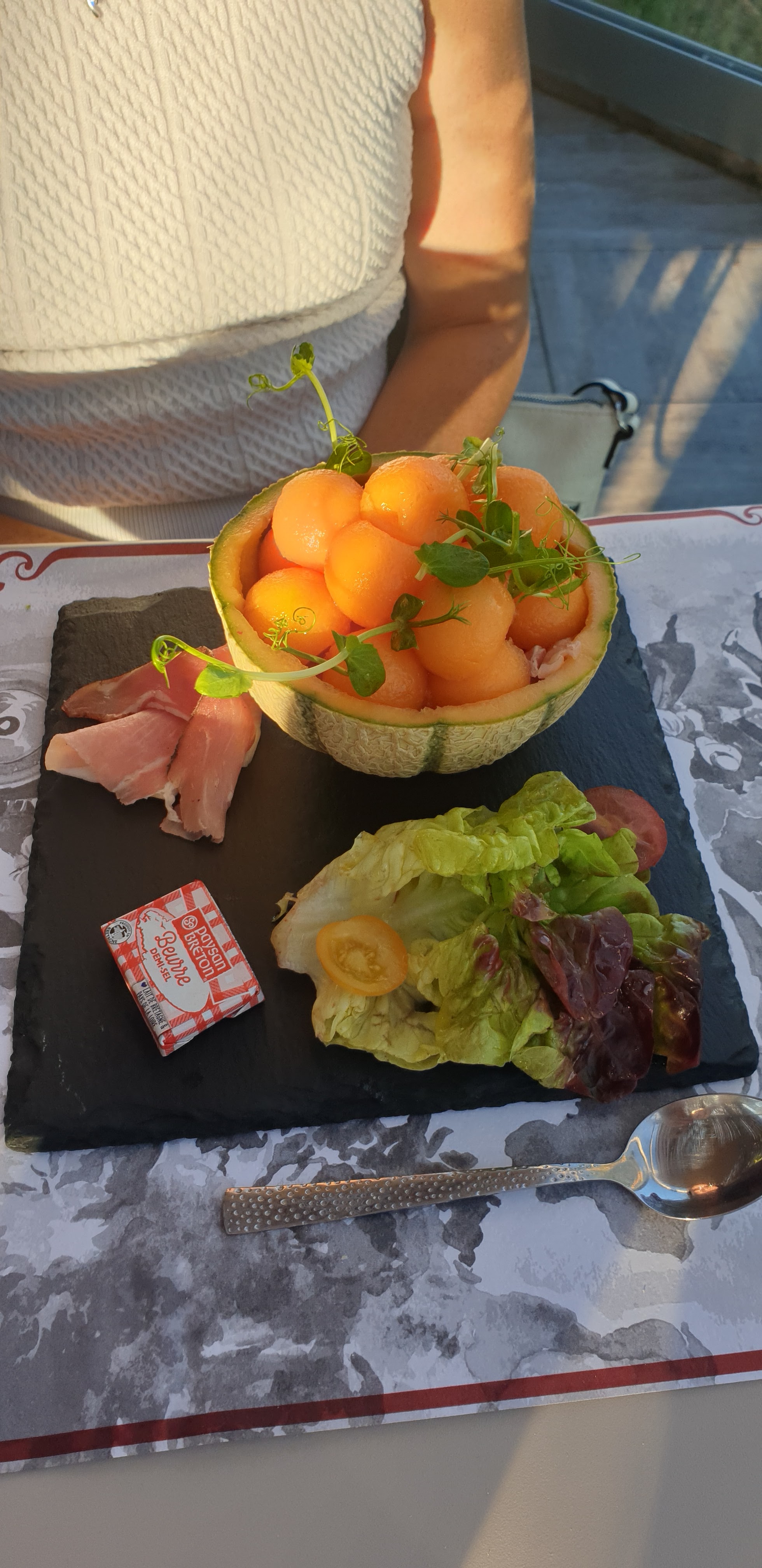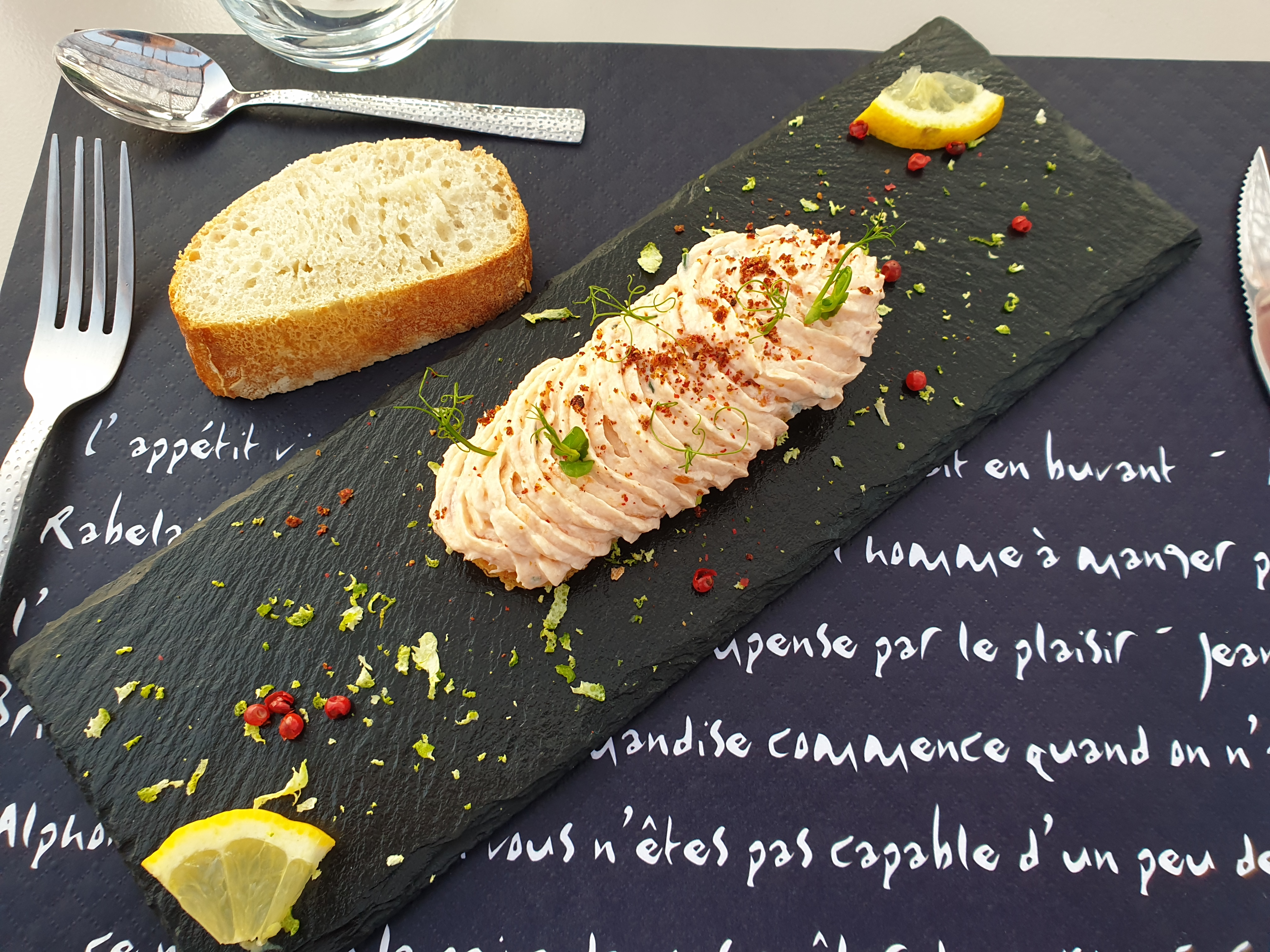 Tout était correct et plutôt bon, par contre les prix sont excessifs, pas de formule, tout à la carte. Je ne vois pas comment l'excuse du local peut fonctionner pour une assiette avec deux bouts de jambon de Vendée et quelques tranches de melon à 9 euros ou un merlu risotto à 19 euros. Chacun pense ce qu'il veut mais pour moi des affiches antivaccins n'ont rien à faire dans un restaurant.