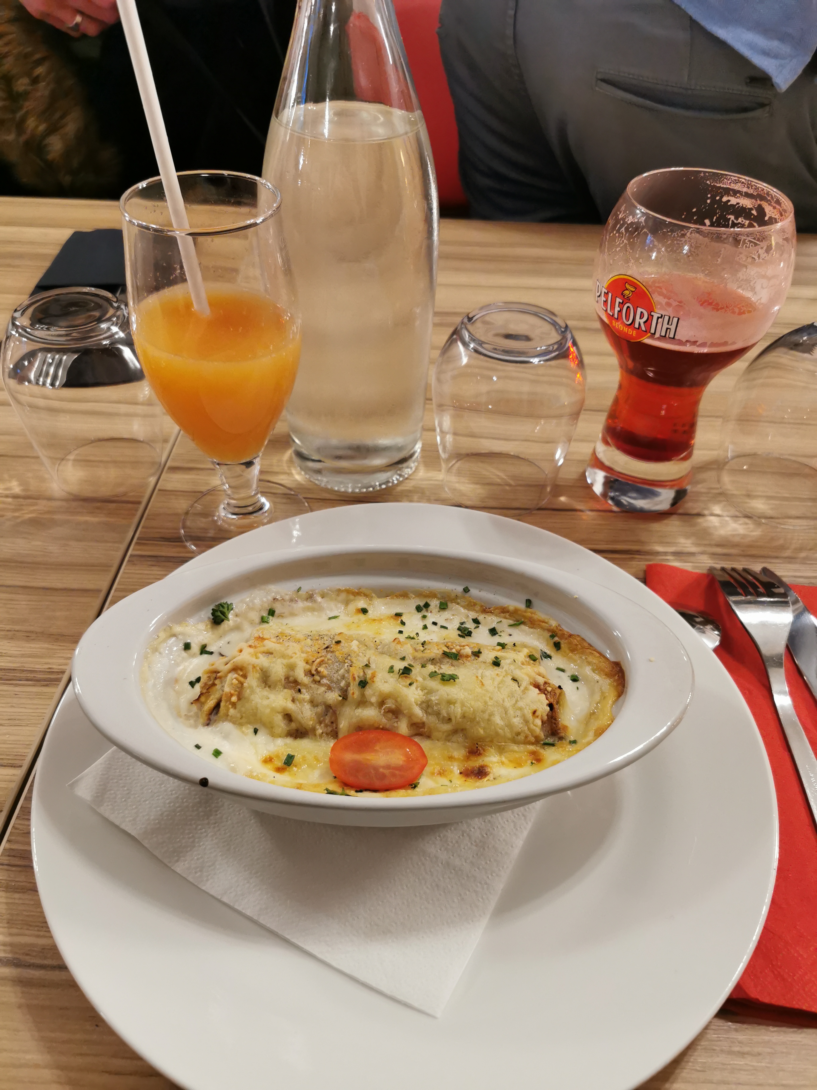 Un des rares restaurant de la ville avec des entrée faits maison mais repas chaud j'ai bien ressenti le coter industriel sinon déco sympas et personnel corret