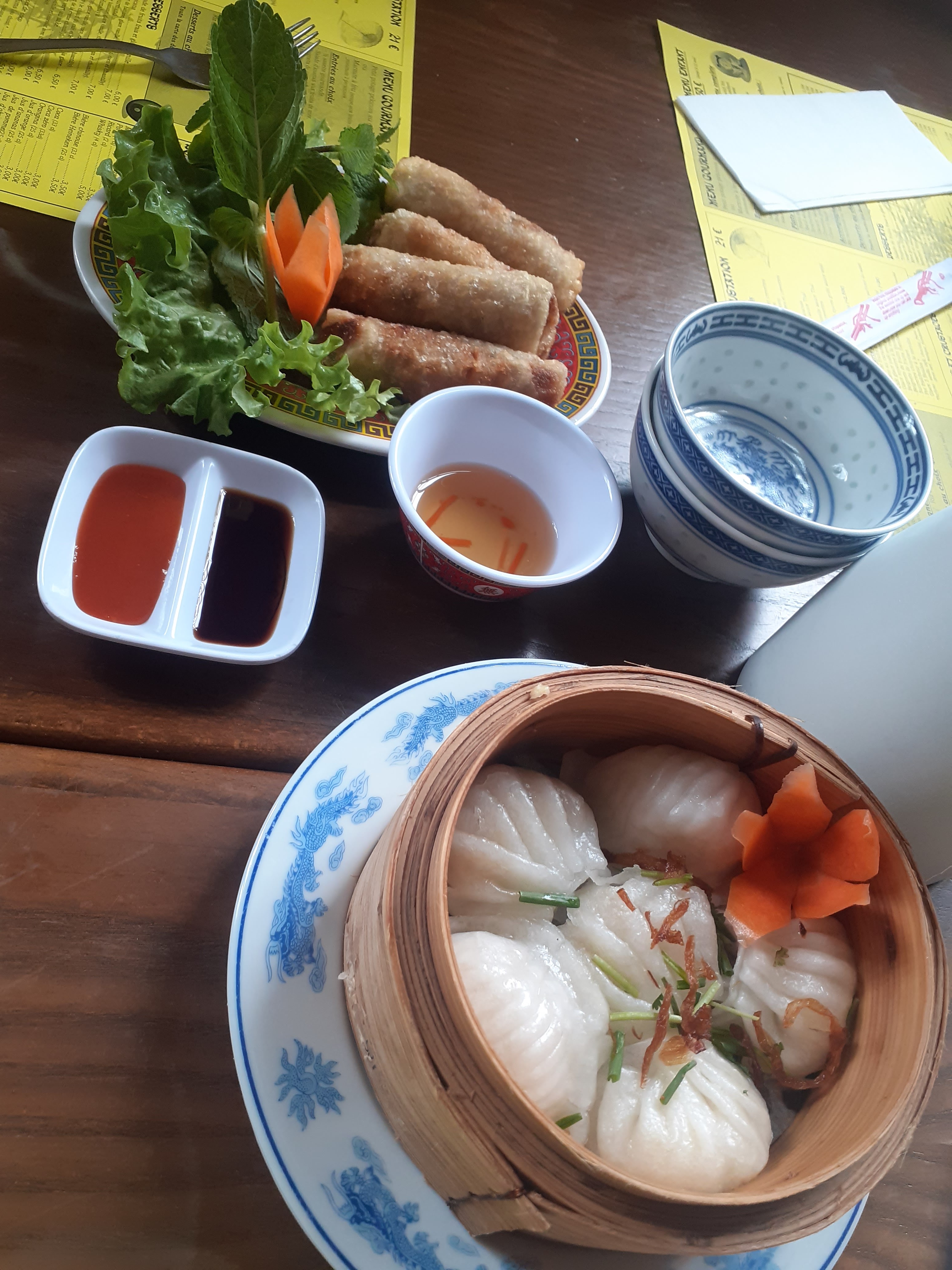 Très déçu, je m'attendais à mieux vu le nombre d'étoiles, un seul choix de nem... Au porc ou au porc ! Au goût d'huile cramée, autant dire deg.......... Le plat principal (lamelles de poulet grille) vraiment pas exceptionnel... Quant au décor, nul et bas de gamme, ils pourraient quand même renouveler un peu, depuis le temps.
