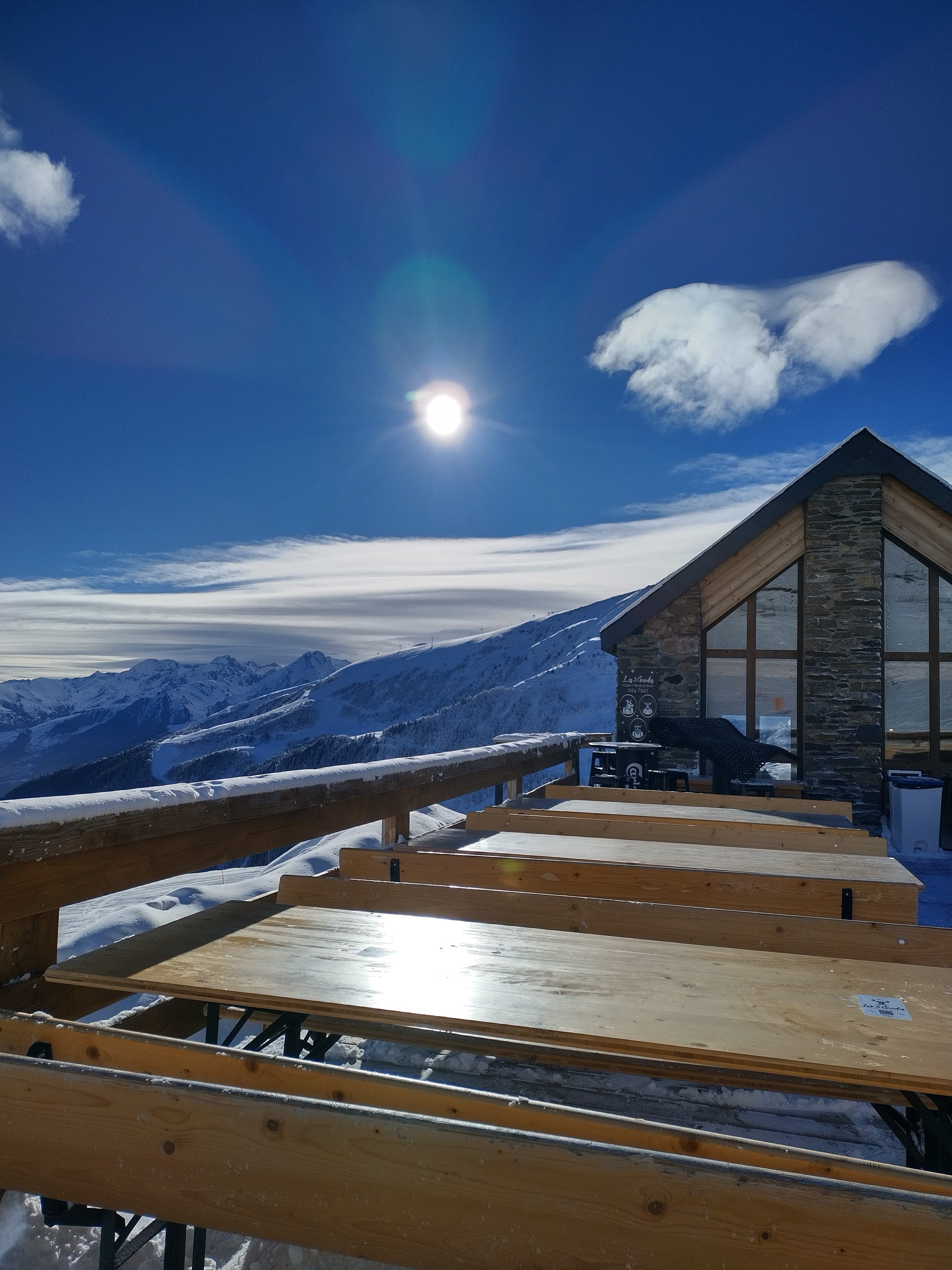 Une pause sur les pistes de ski de St Lary Espiaube très agréable dans un endroit extérieur ou intérieur, ambiance garantie