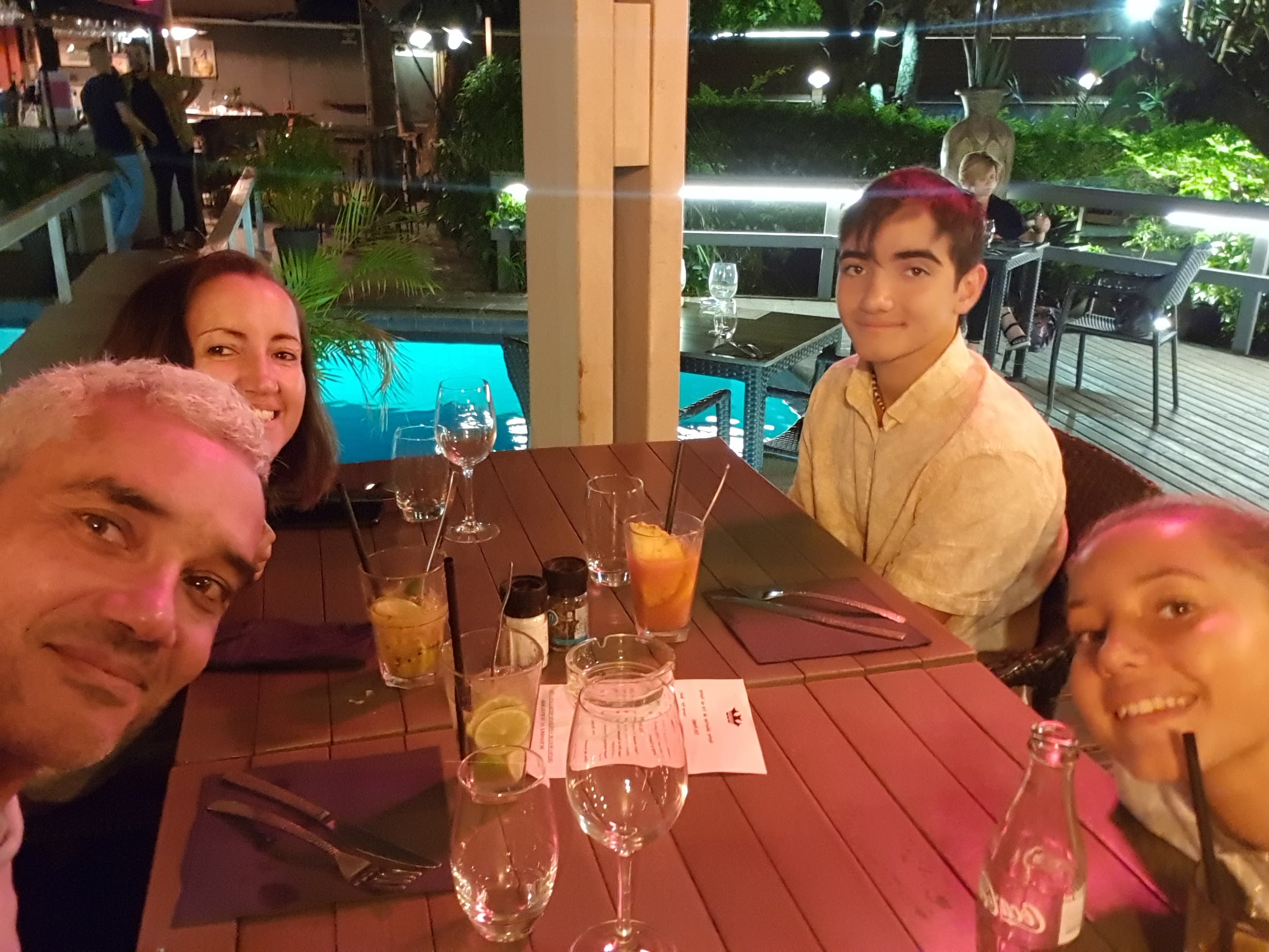 Excellent lieu. Tres bien décoré et repas tout aussi bon (le chef sait cuire le poosson) . Les cocktails eux aussi étaient excellents. Nous y sommes allé avec nos deux enfants. Parfait. Attention a la piscine pour les touts petits.