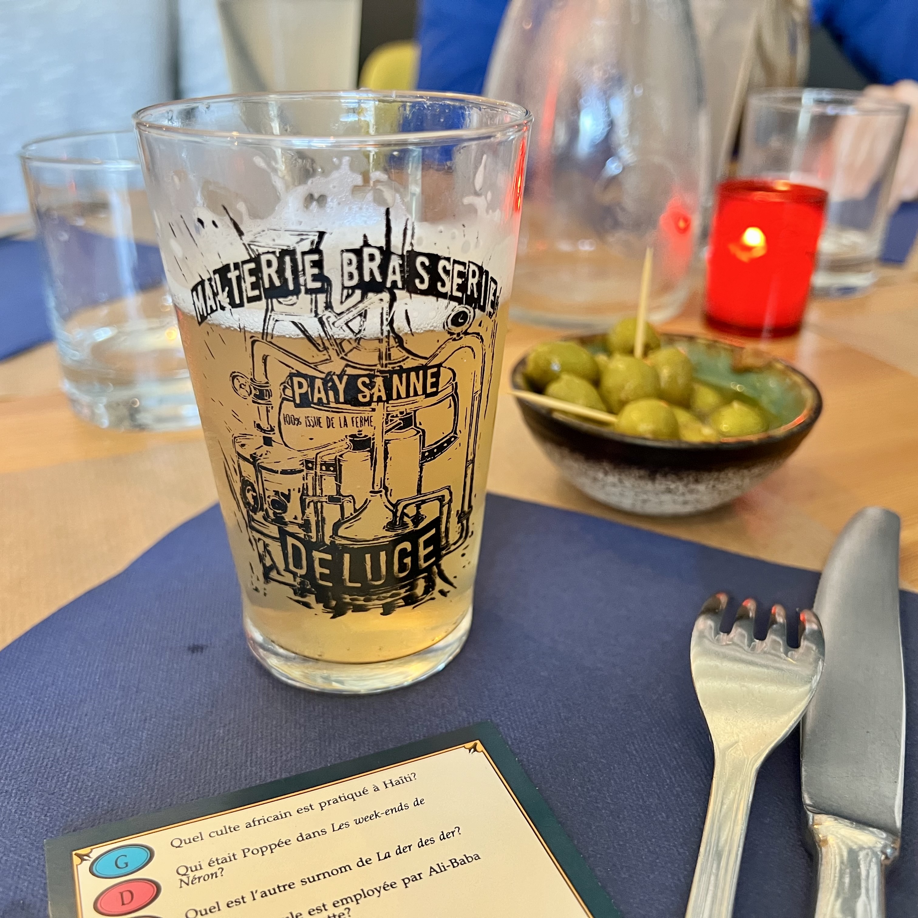 Repas dans une bonne ambiance, serveur très gentil. Les plats sont savoureux. Très bonne alternative végétarienne. L'idée du jeu avec les cartes pour patienter est très bonne. Endroit chaleureux qui accepte les chiens. Merci pour ce repas !