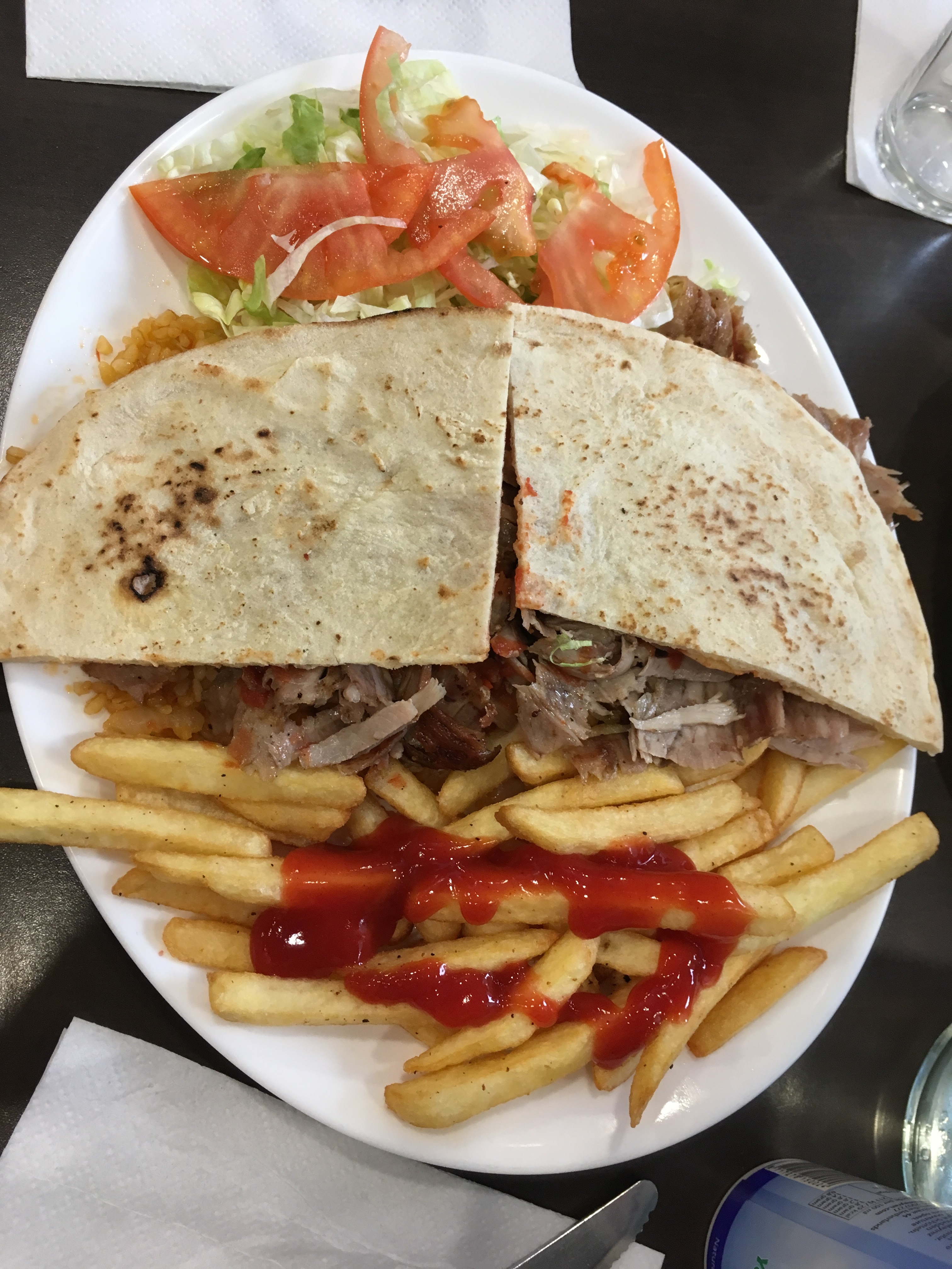 Un de mes meilleurs Kébab. Décor et mobilier simplistes mais l'essentiel est sur le plateau repas. La viande n'était pas grasse, croustillante et cuite à point; accompagnée de tomates, salade, oignons et d'un soupçon de menthe... La portion de frites était séparée du sandwich contrairement à d'autres Kébab ce qui, au final, donne un duo plutôt complet. Merci également pour l'accueil chaleureux (repas pris à 12h00) et qui à cette heure-ci permet de ne pas être bousculé et de ne pas attendre notre plateau.