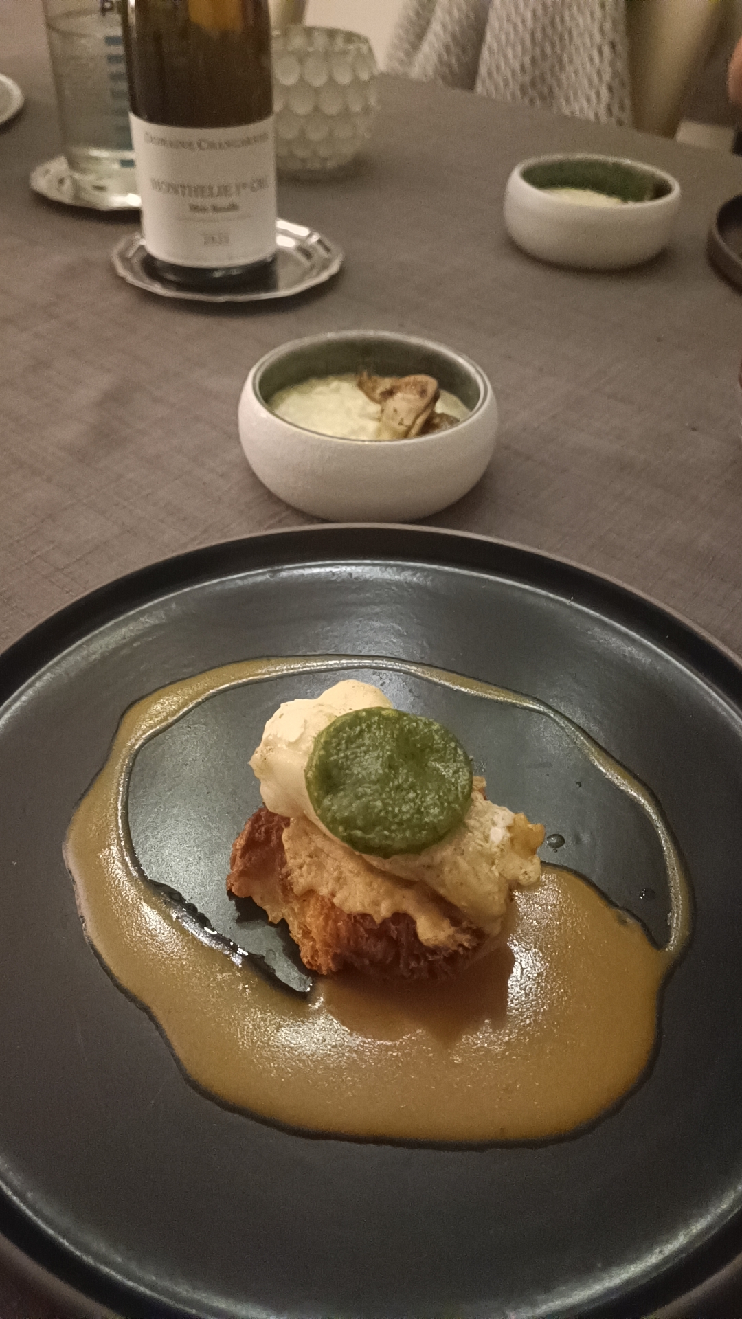 Menu homard avec de la recherche culinaire. Moment agréable. Bourgogne blanc Saint Romain top.