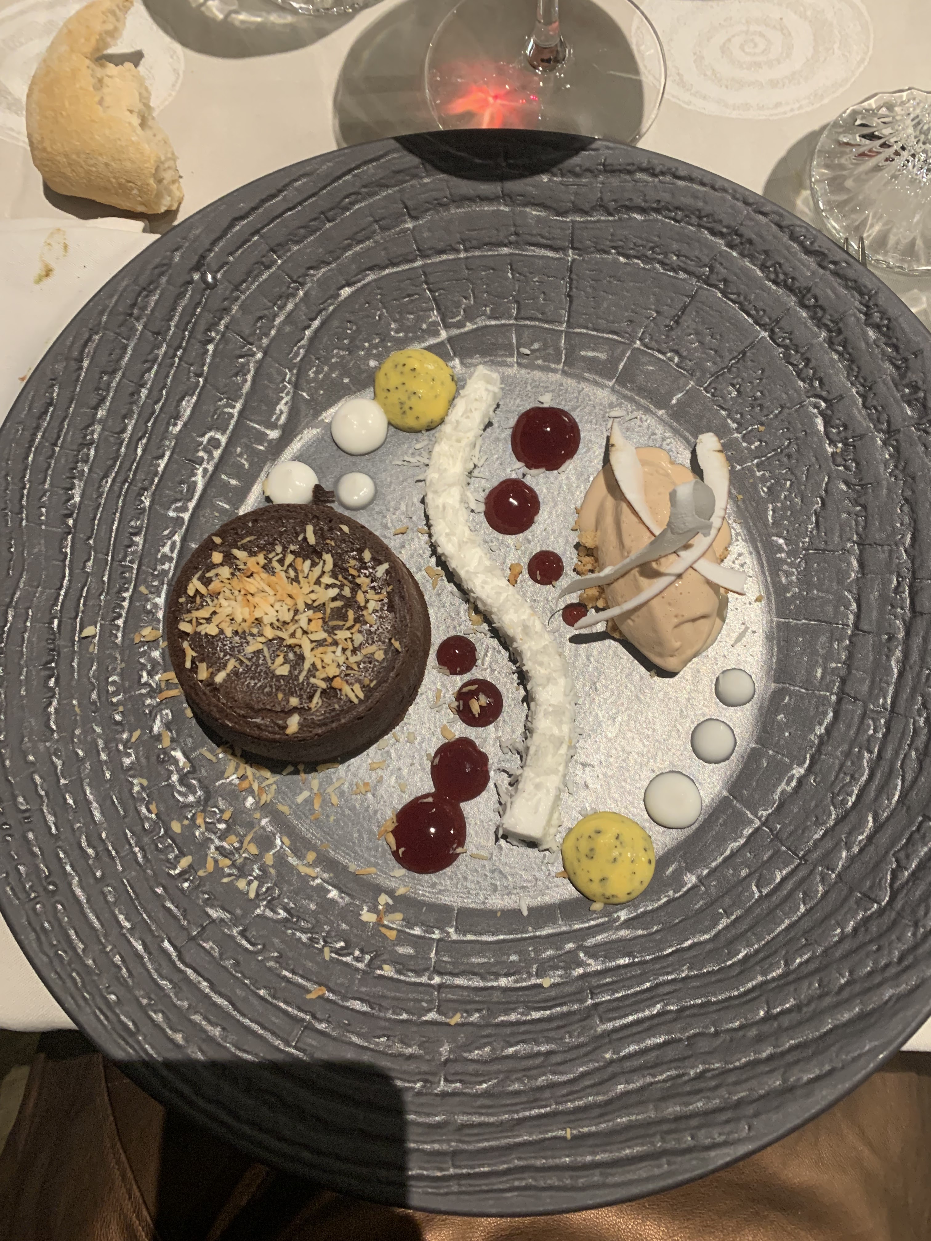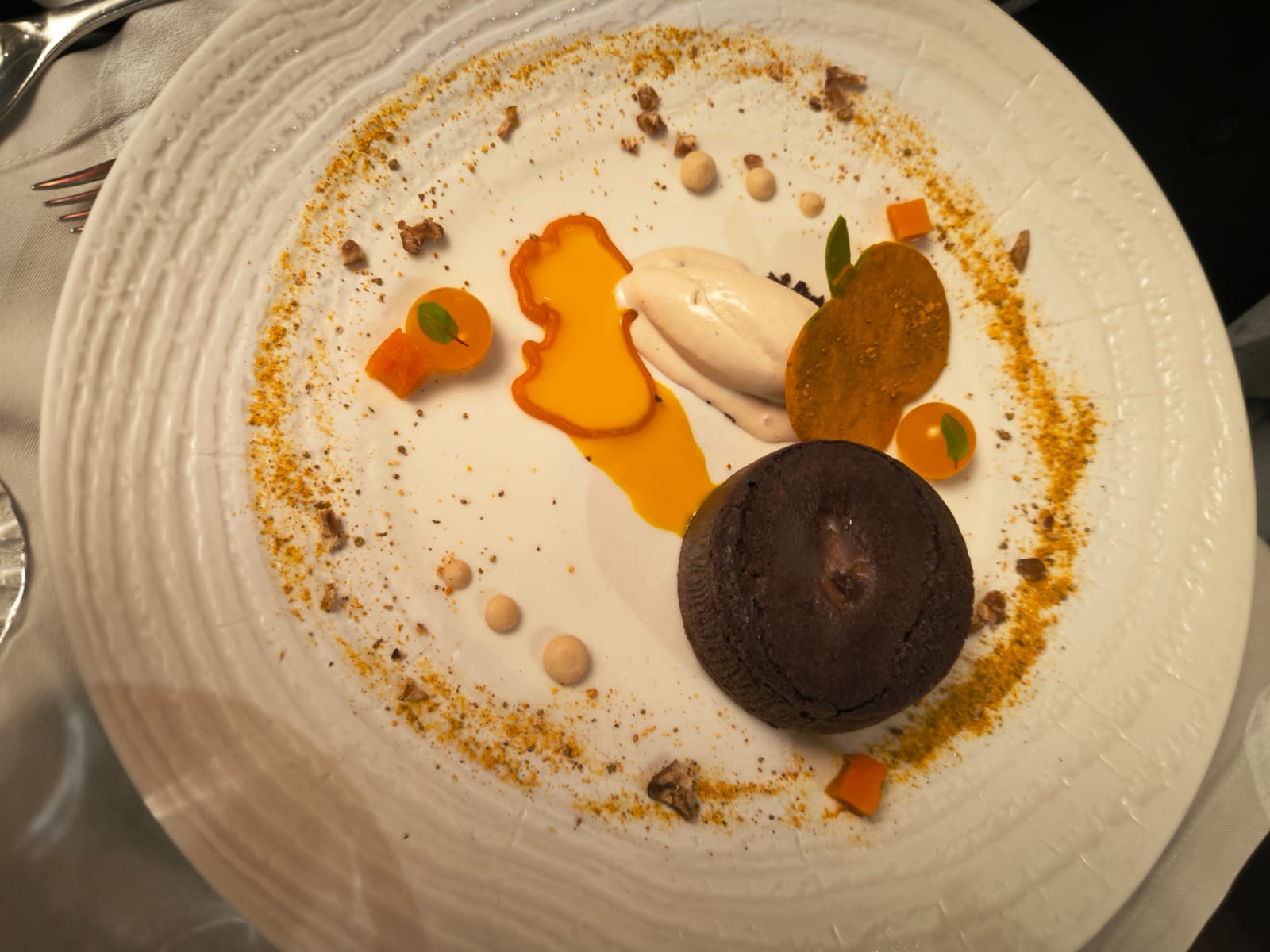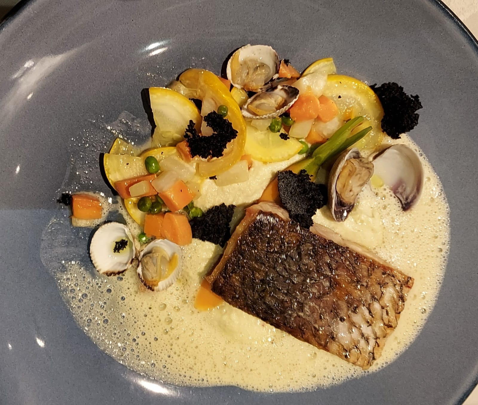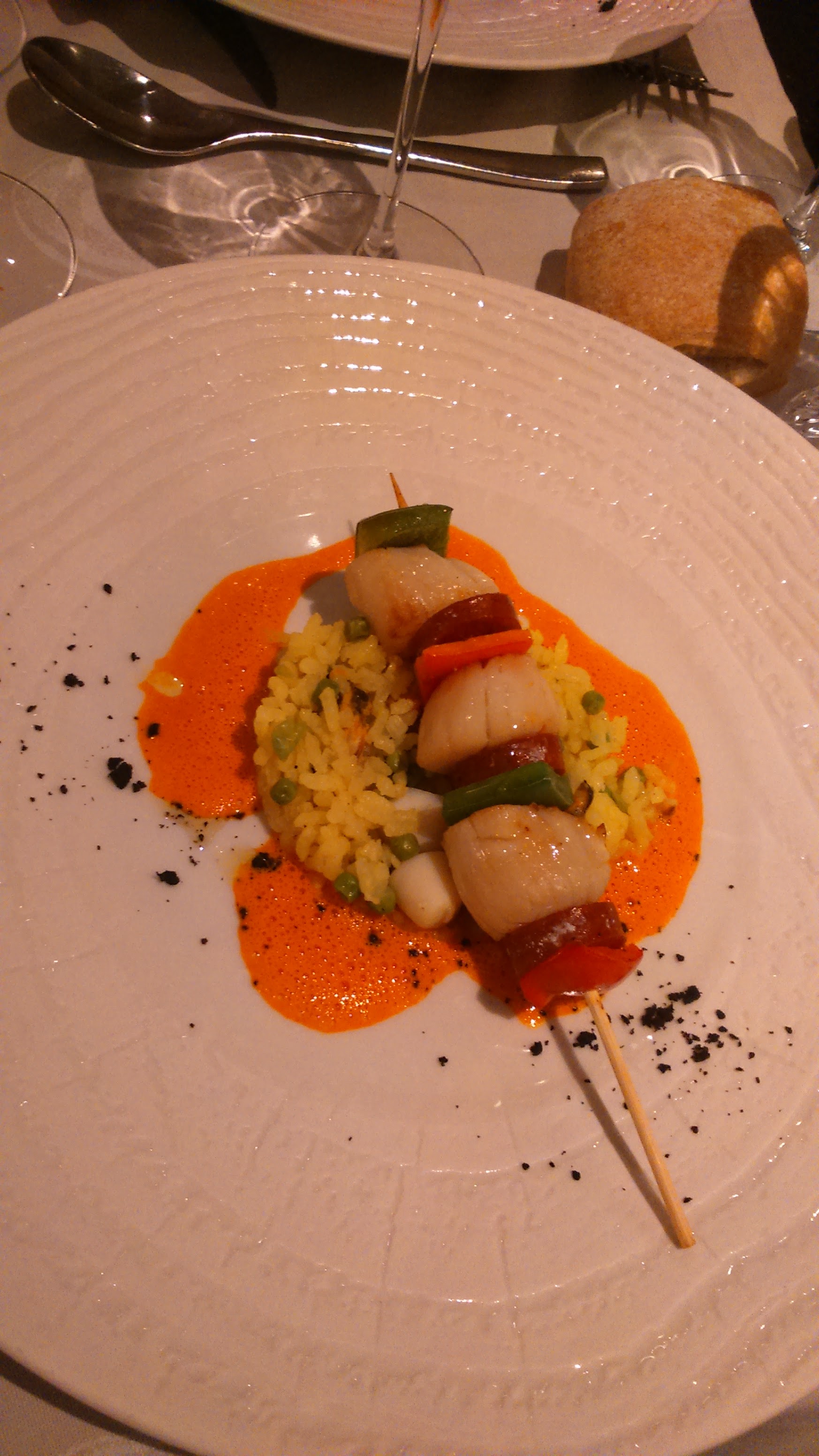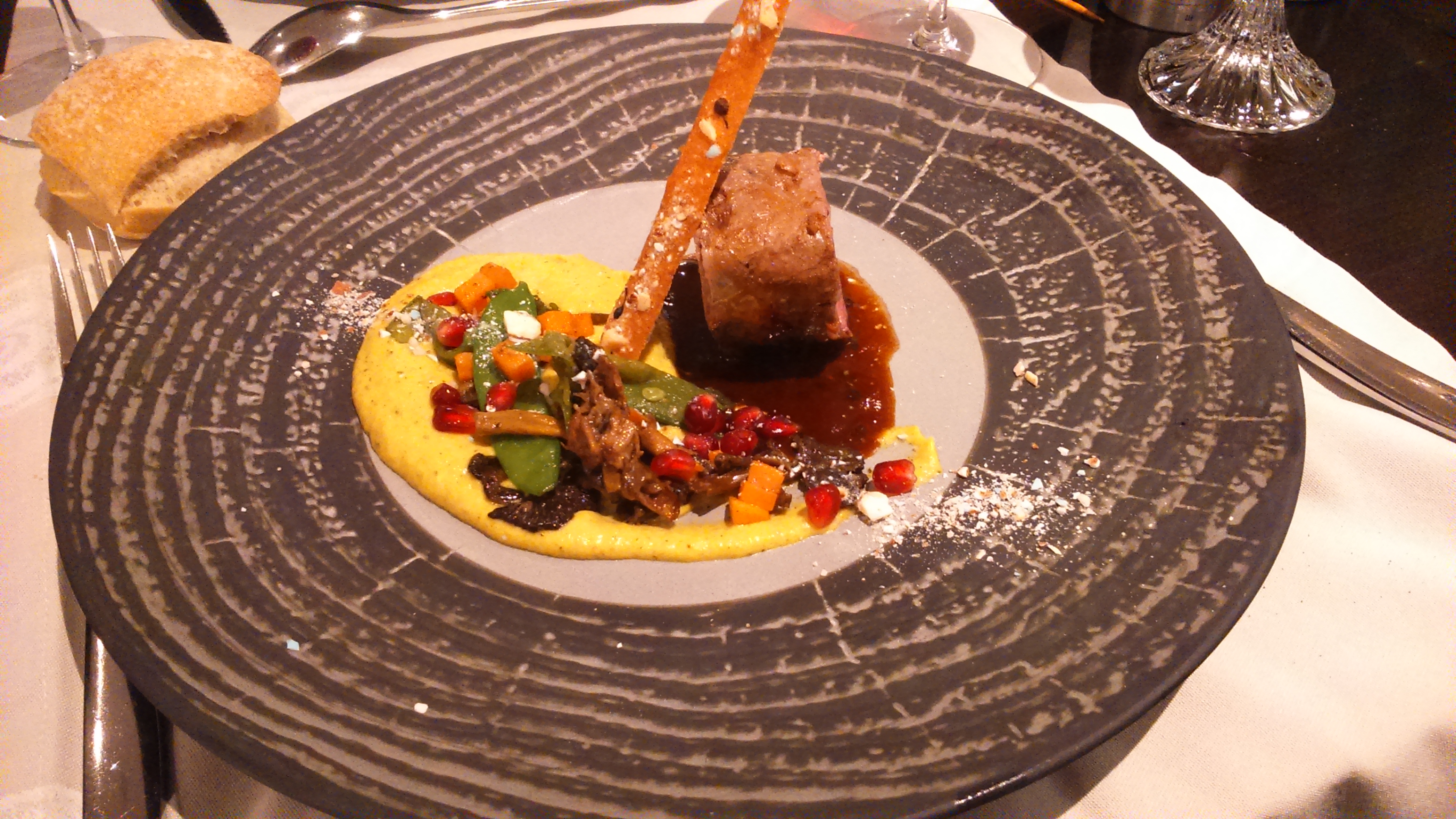 Une véritable expérience par les associations inattendues des saveurs... qui touche ses limites sur le dessert, ou l'équilibre est rompu (prépondérance des légumes). Le plat aurait mérité un poisson plus noble que le haddock. Enfin, un énorme bémol sur le pain de standard restauration collective. En synthèse, un diner mitigé et decrescendo de l'entrée au dessert.
