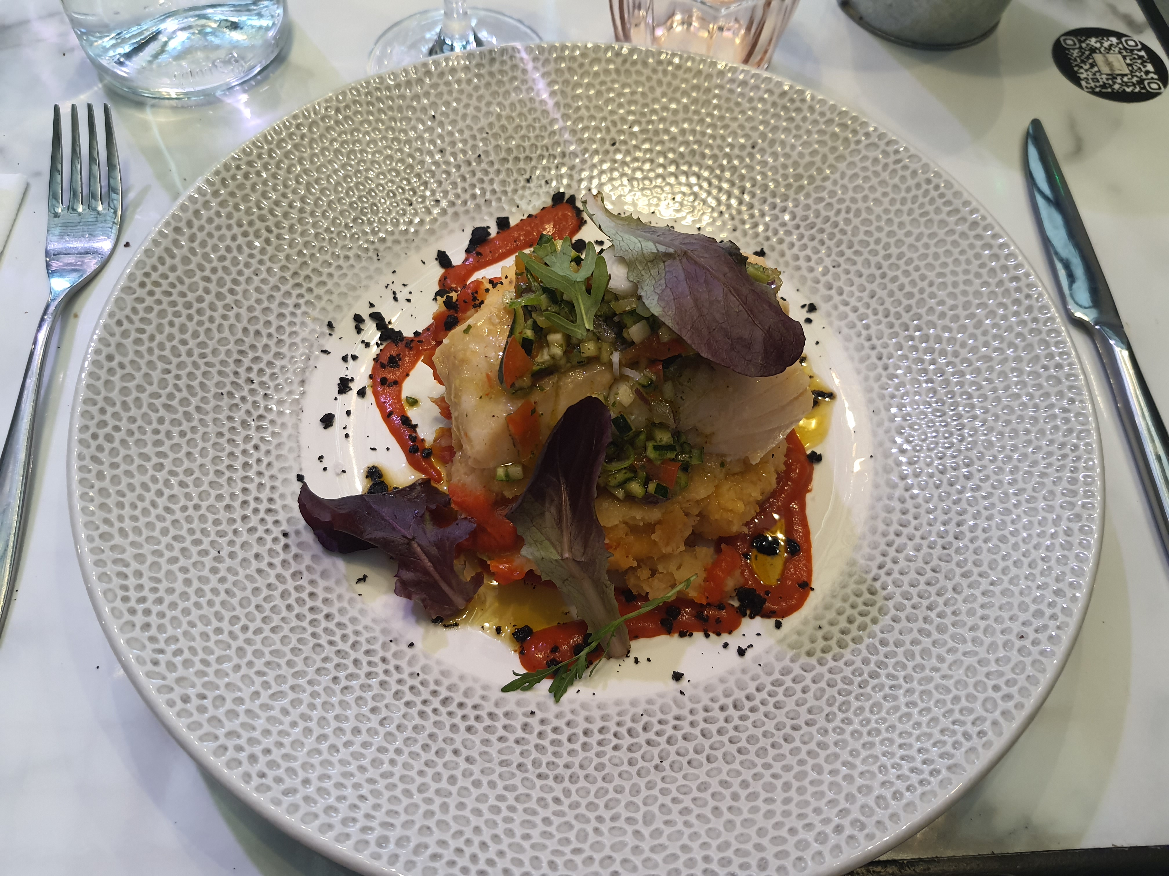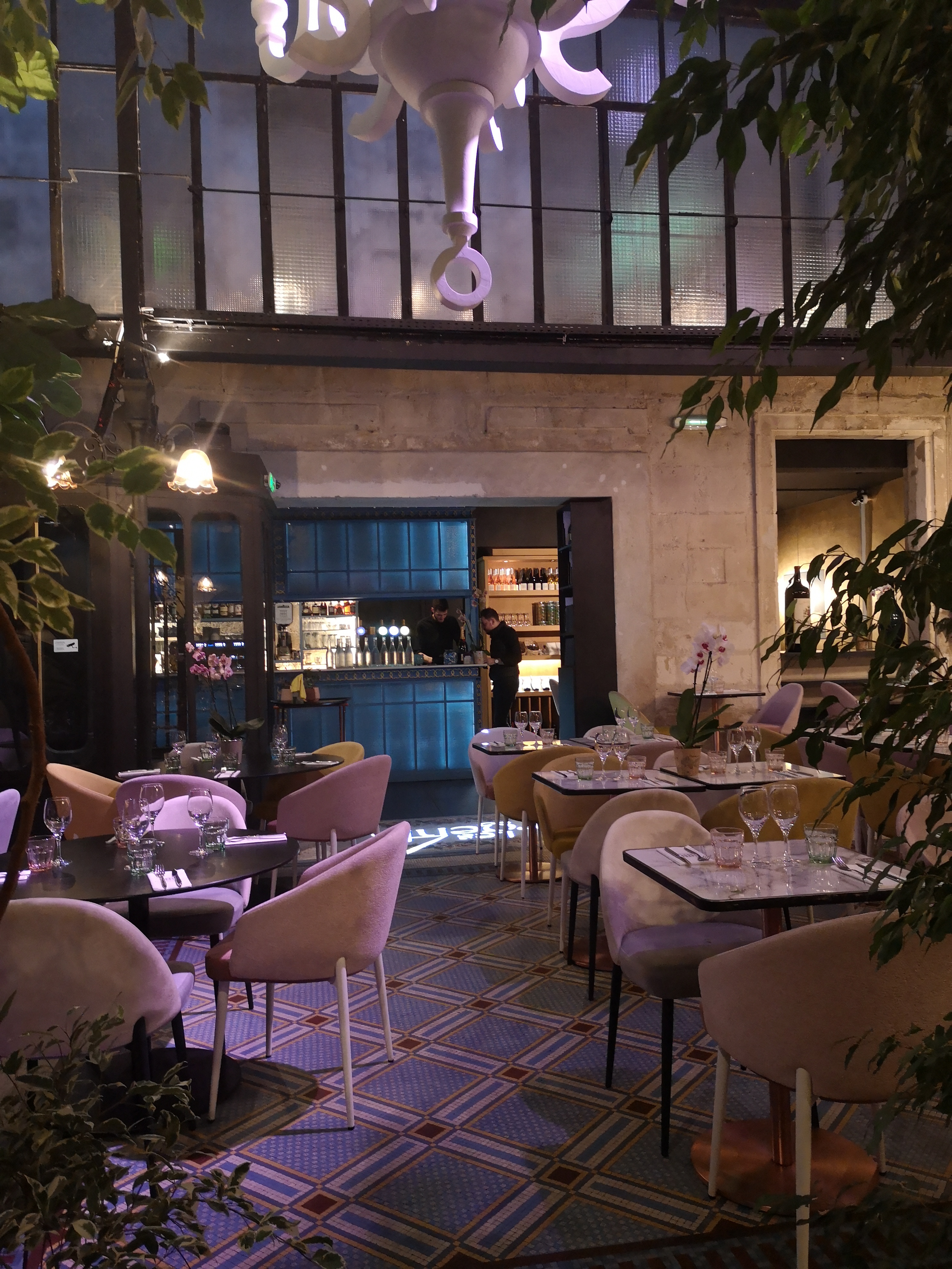 Cadre assez exceptionnel avec les verrières et un mobilier soigné et coloré. Pour un déjeuner à 2 un jeudi midi, nous avons pris de la dorade et c'était une des meilleures préparations de poissons que j'ai mangé en restaurant, dans mon top 3, c'était très bon ! Le service était au top avec de bons conseils d'accord mets-vins (on voit que le barman s'y connaît). Comme on était en semaine en fin de service le contexte était assez calme donc propice pour discuter au calme. Je reviendrai !