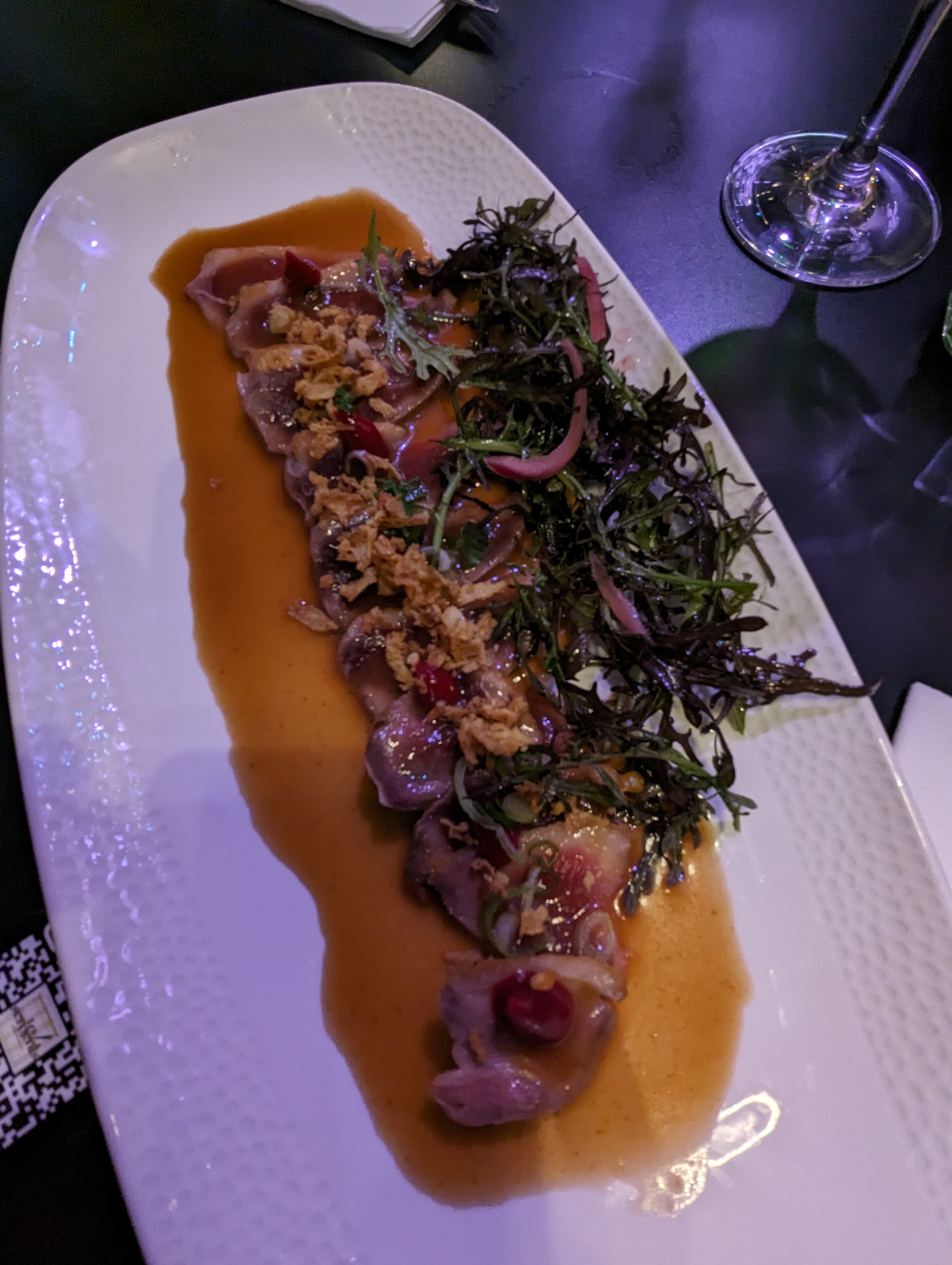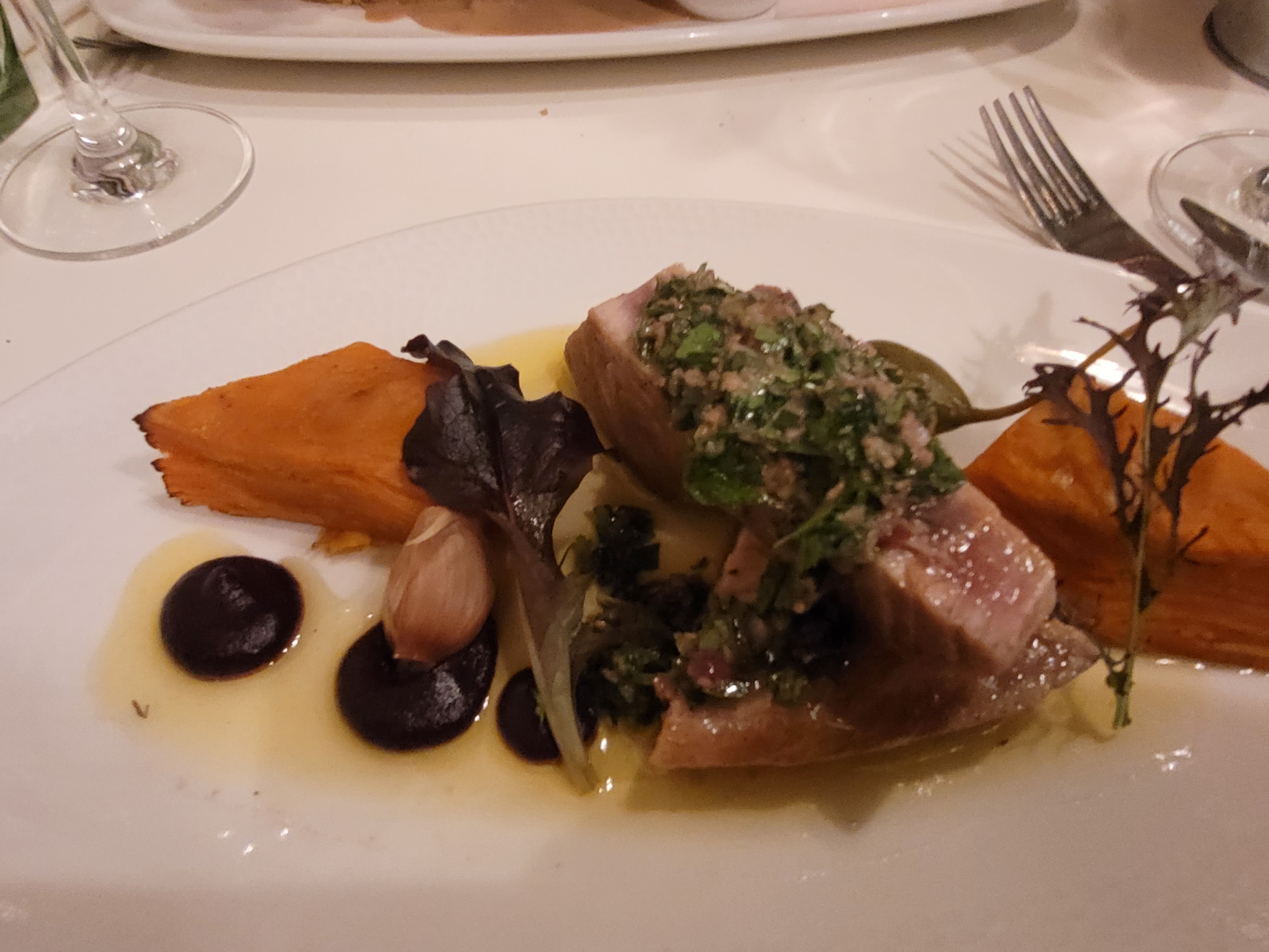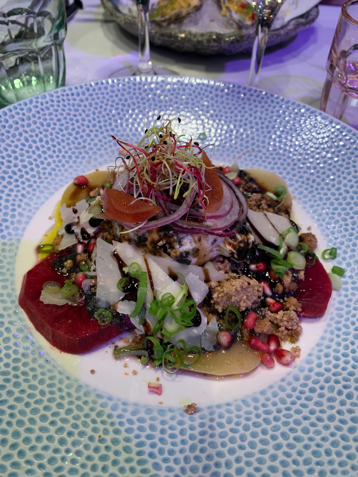 Ce fut une agréable expérience culinaire dans un cadre magnifique. Le menu est diversifié. Les produits ont l’air de qualité. Les plats sont succulents. Petits bémols : les oignons frits ajoutés à plusieurs plats sans valeur ajoutée à mon goût, ainsi que la musique trop forte selon moi durant le second service (et les stroboscopes qui aveugles quelques peu selon où l’on se situe dans la salle).